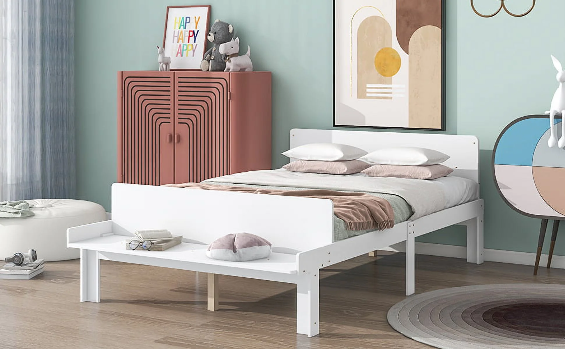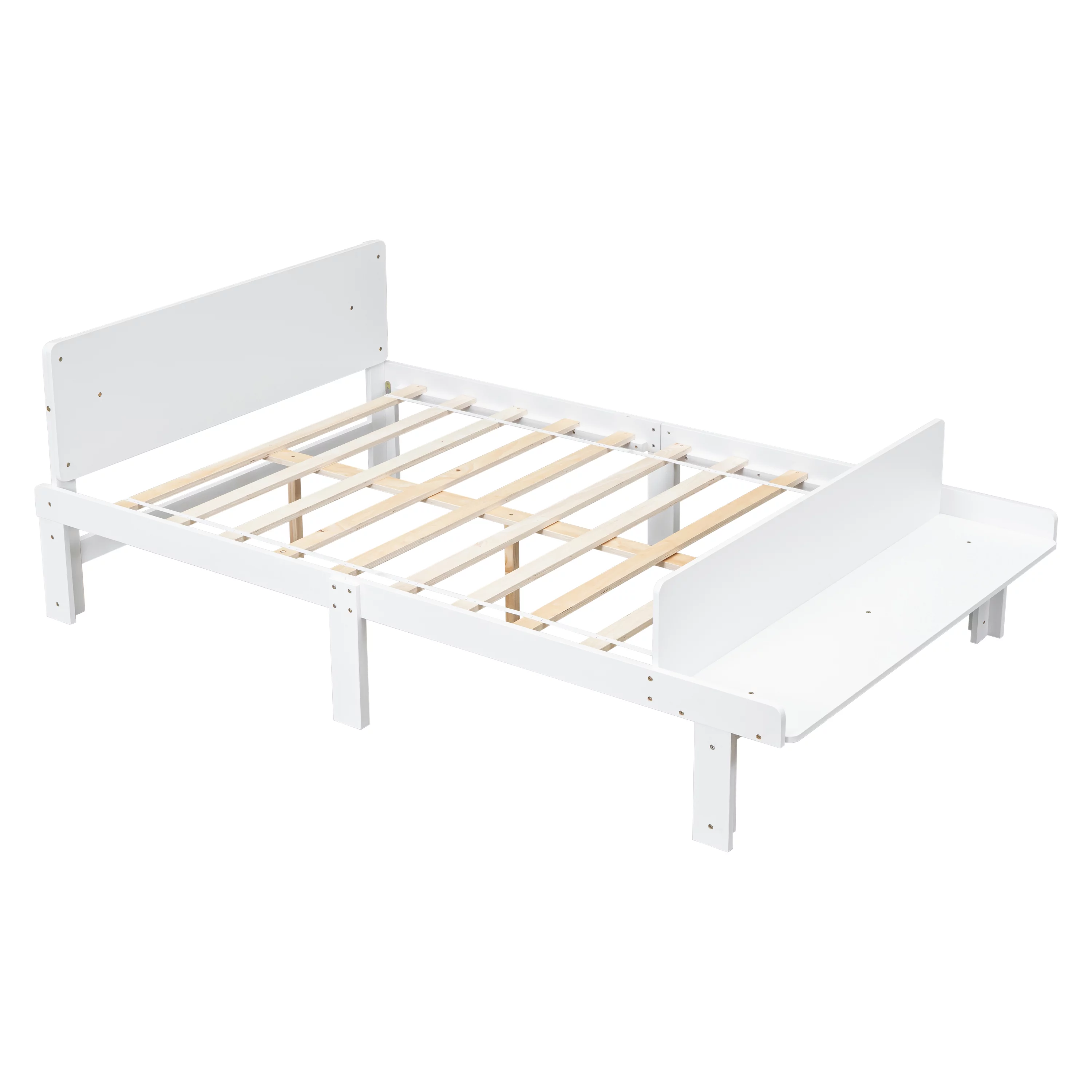 Full Size Bed Frame with Footboard Bench - Stylish Bed Frame with Headboard, Functional Bedroom Furniture-White