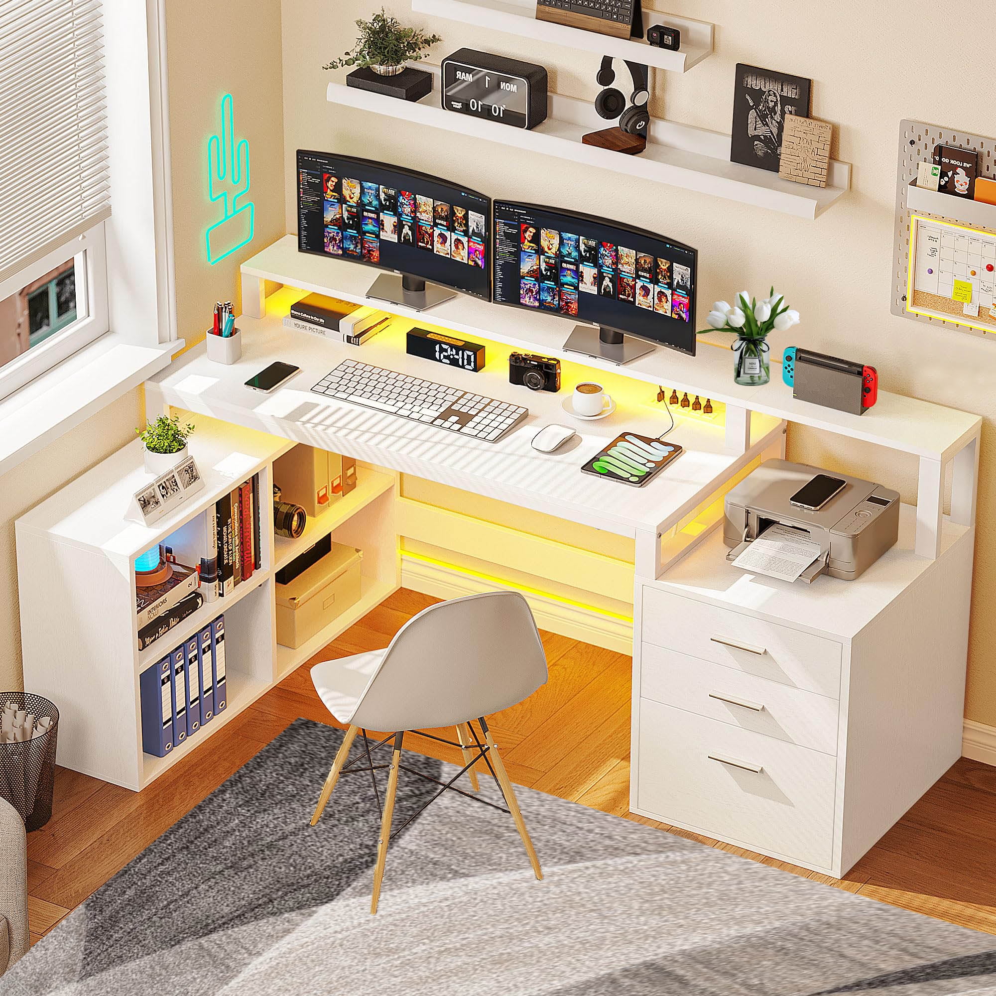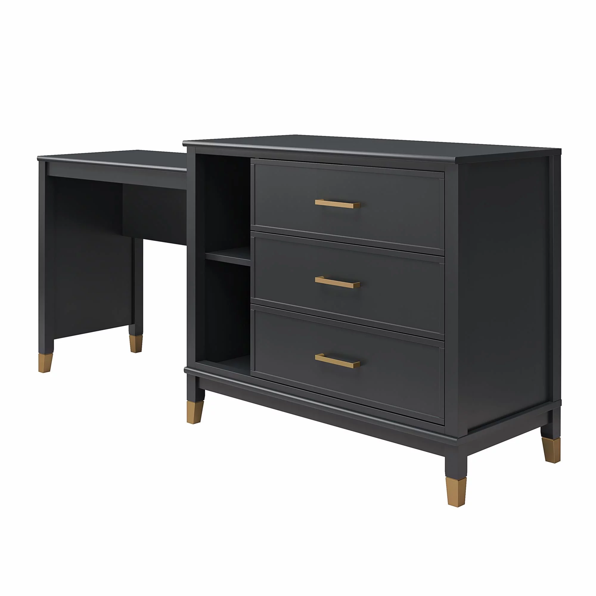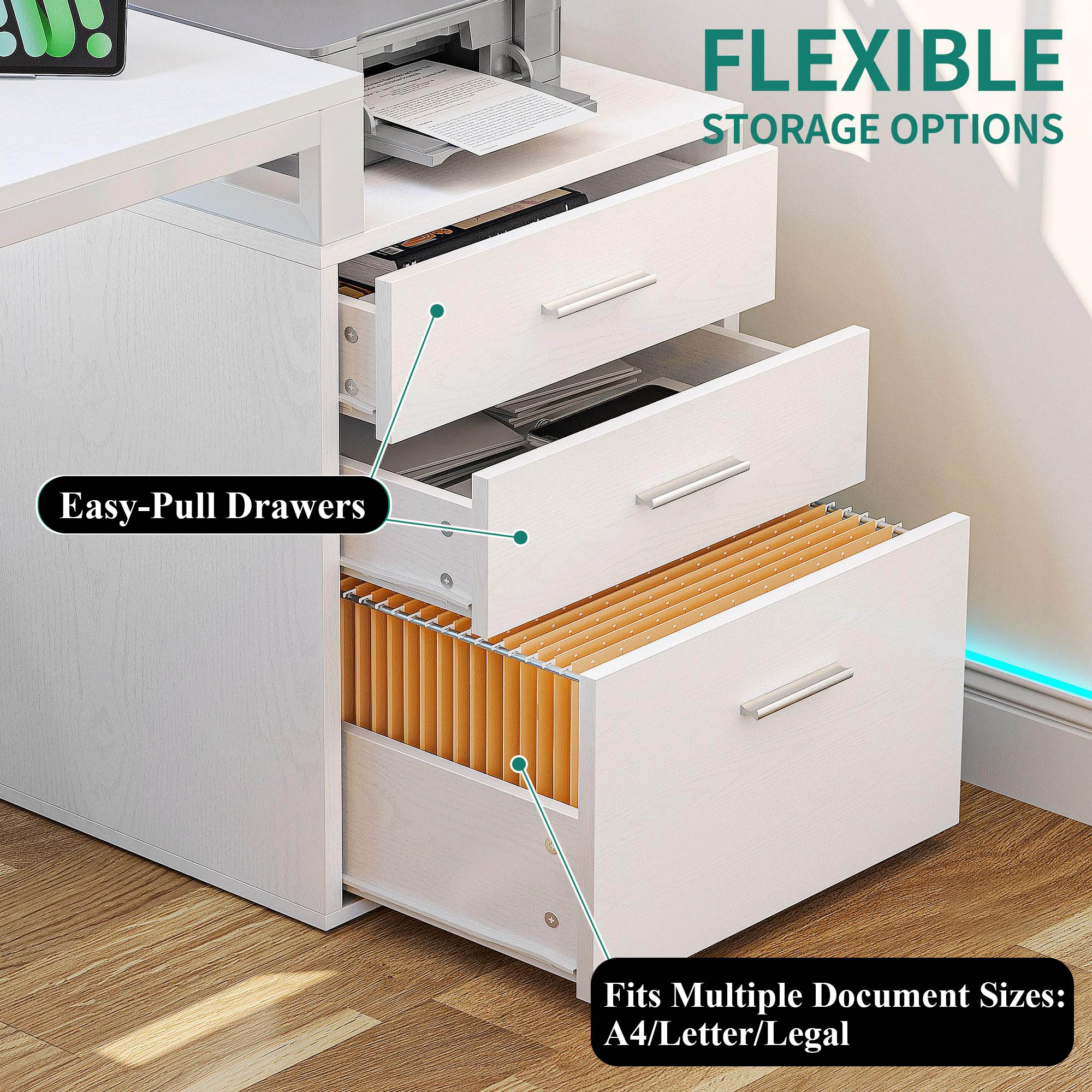 Home Square 3-Piece Set with Computer Desk Base Storage Stand & Filing Cabinet