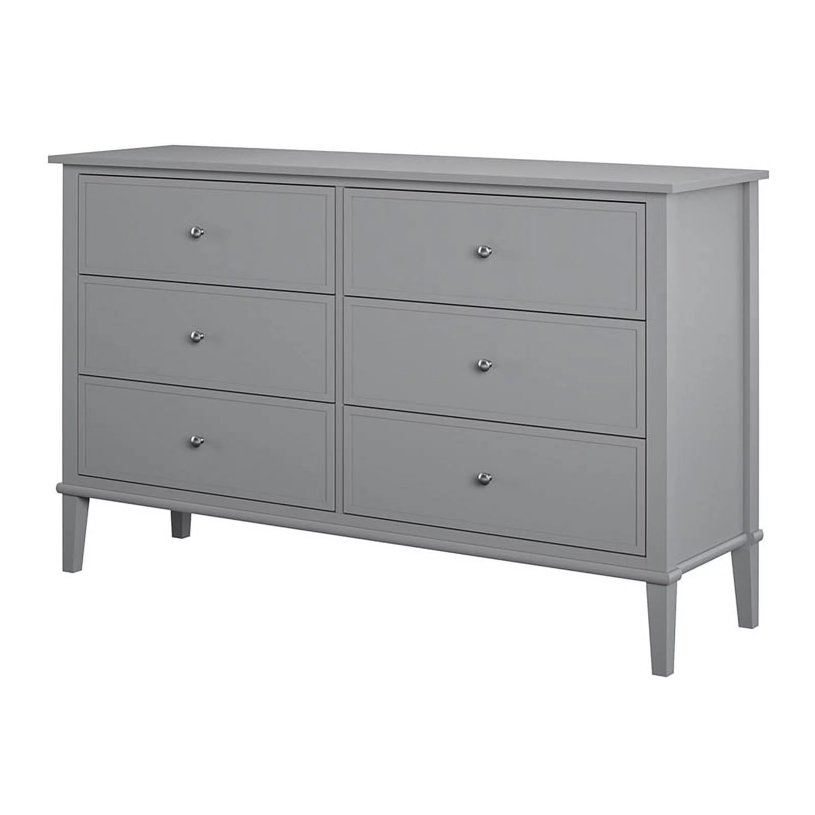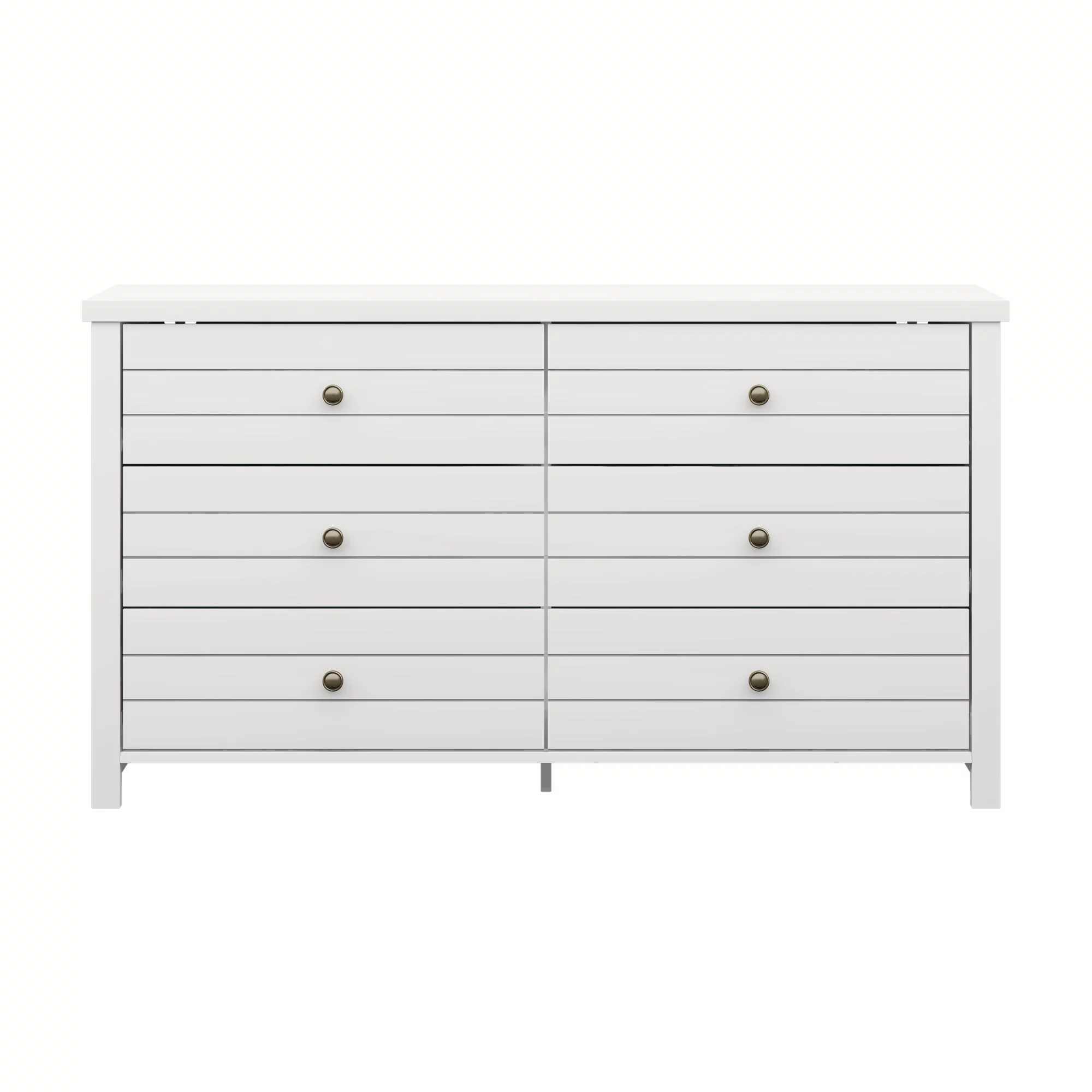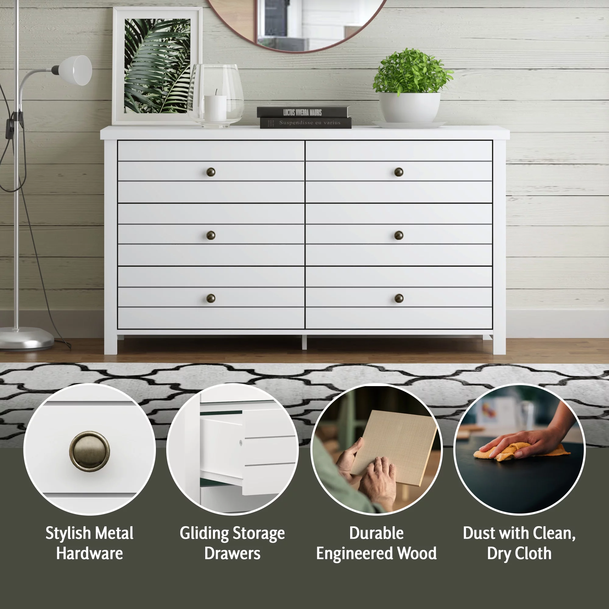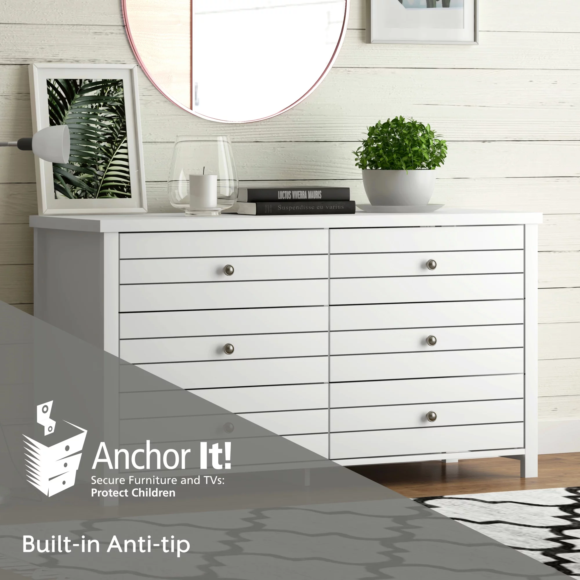 Ameriwood Home Bristol Classic Study 6 Drawer Double Bedroom Dresser in White with Handles