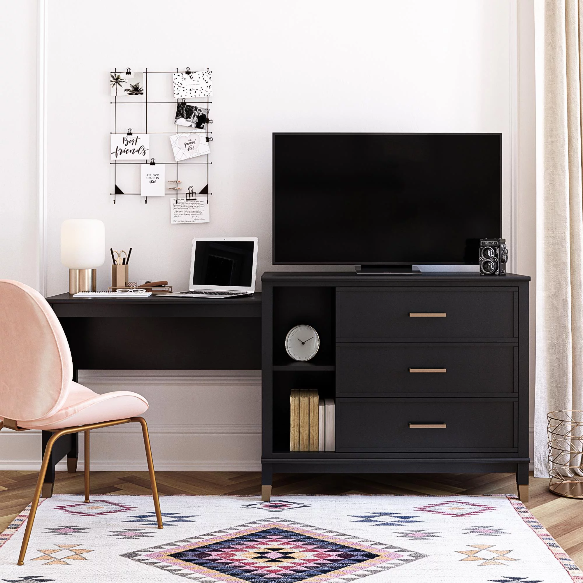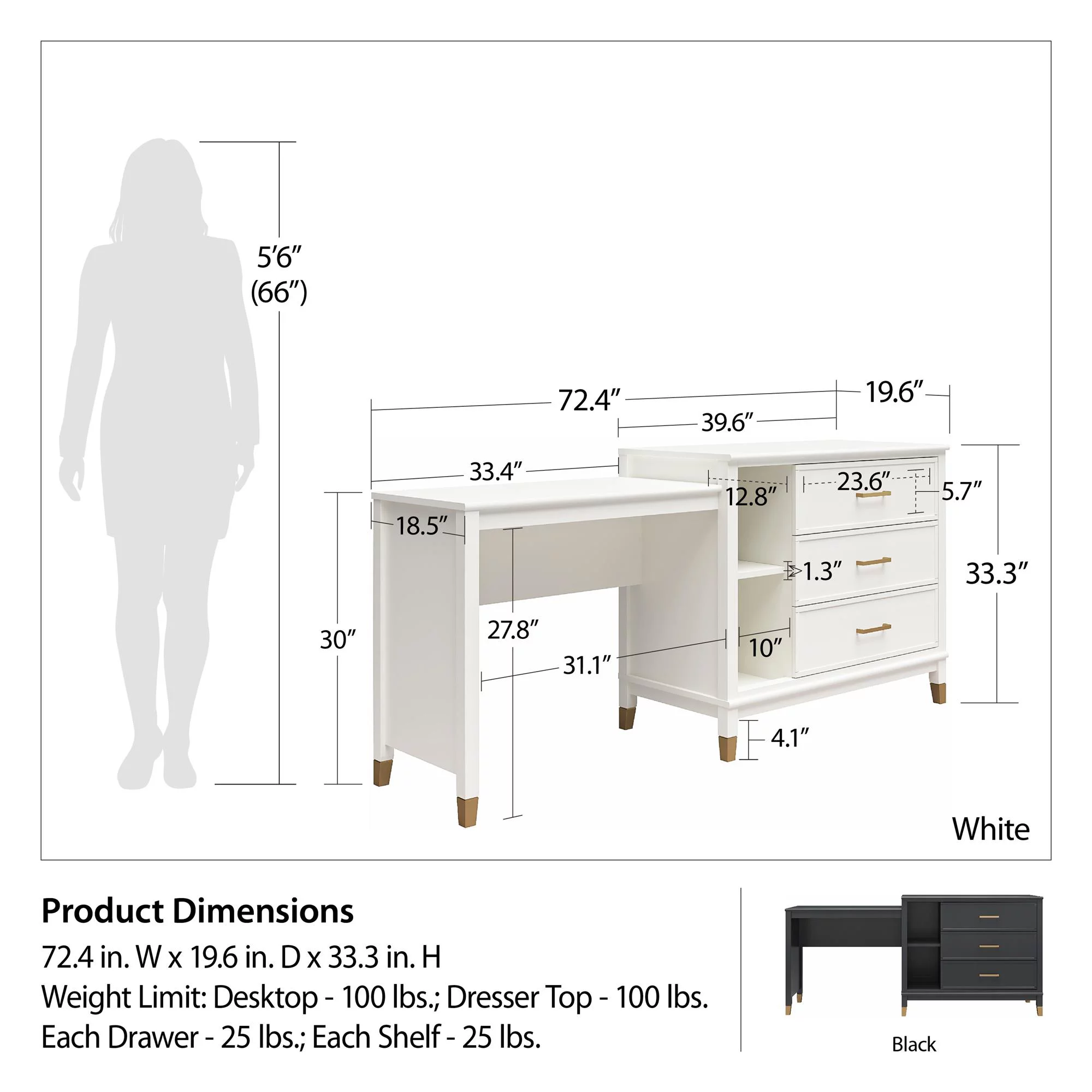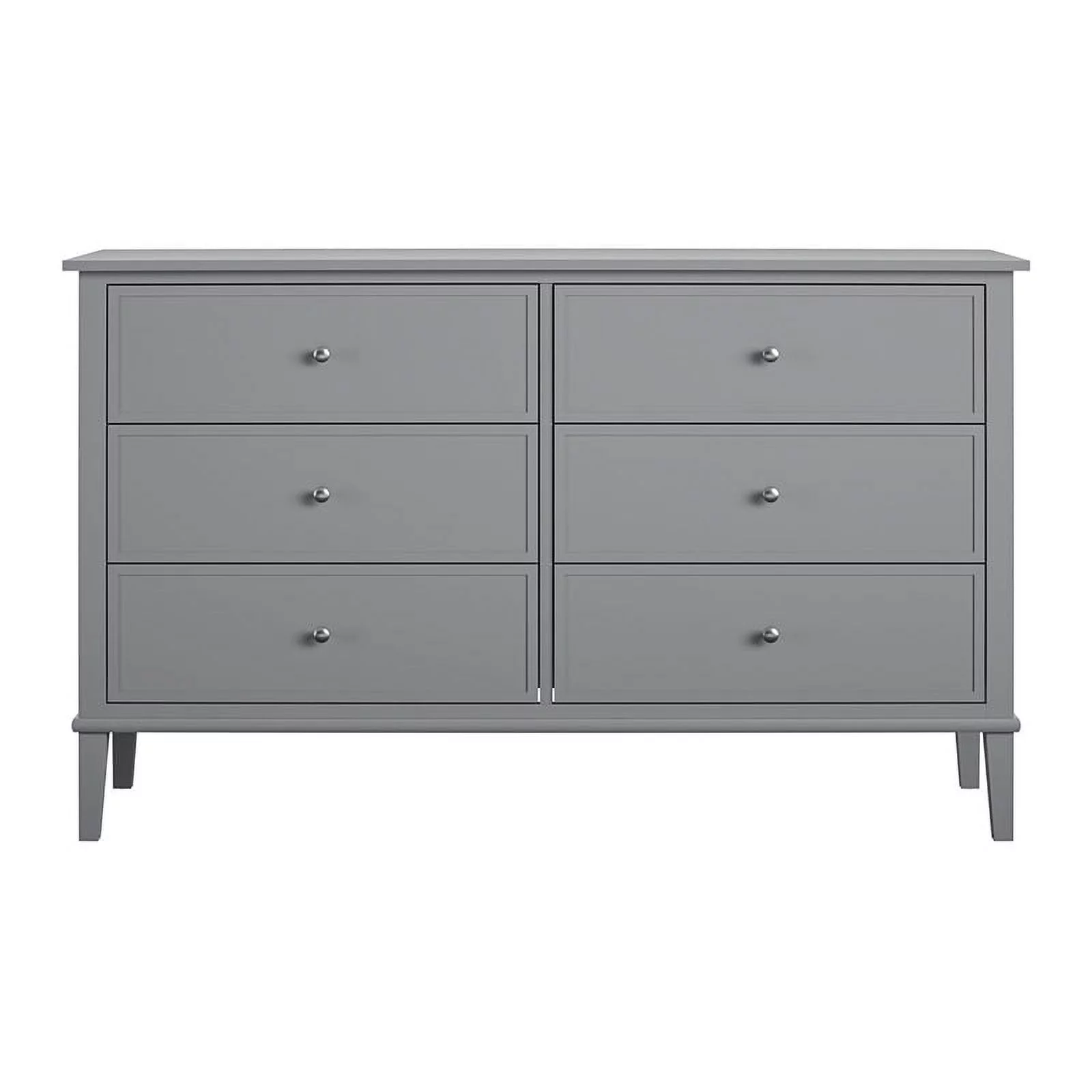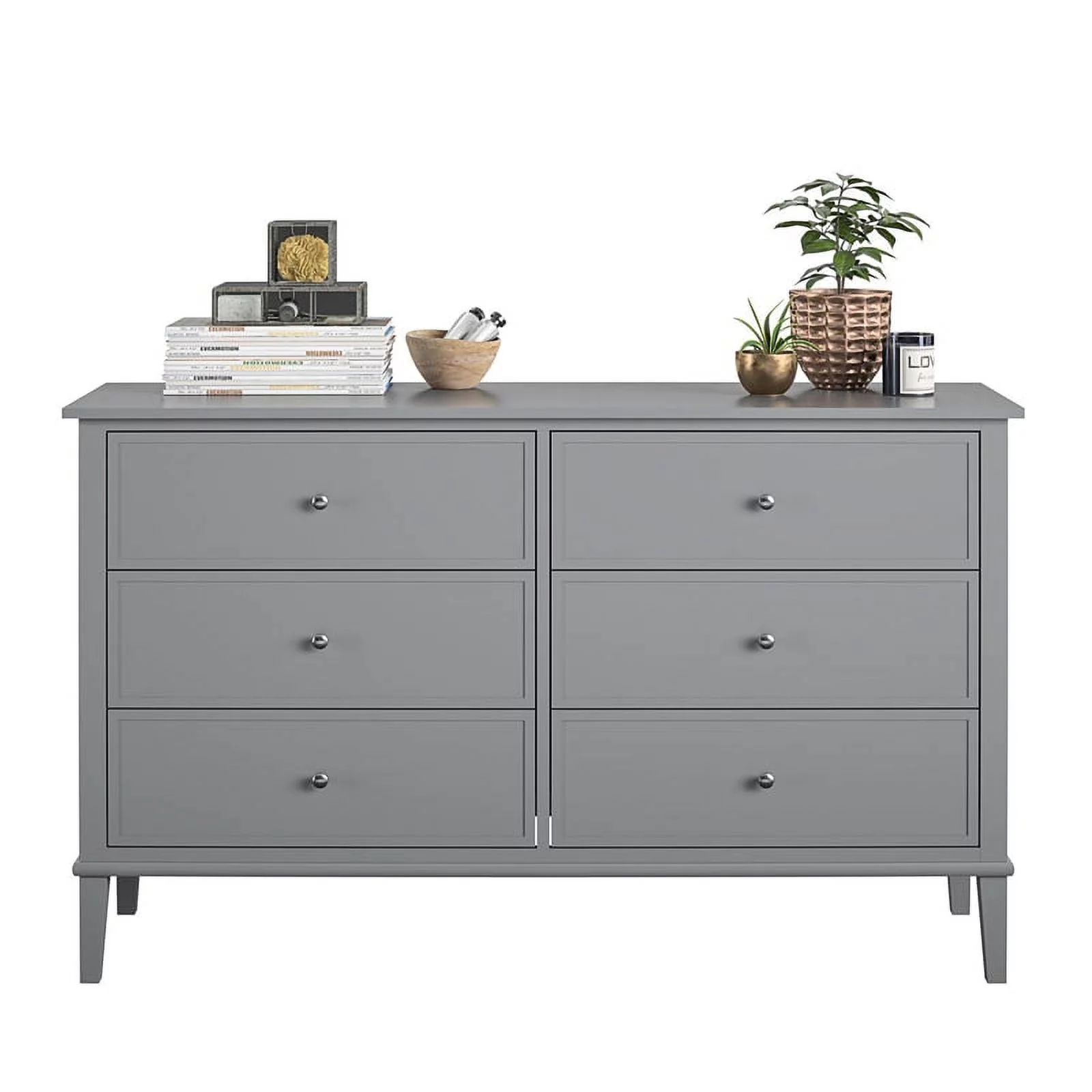 Ameriwood Home Bristol Classic Study 6 Drawer Double Bedroom Dresser in White with Handles