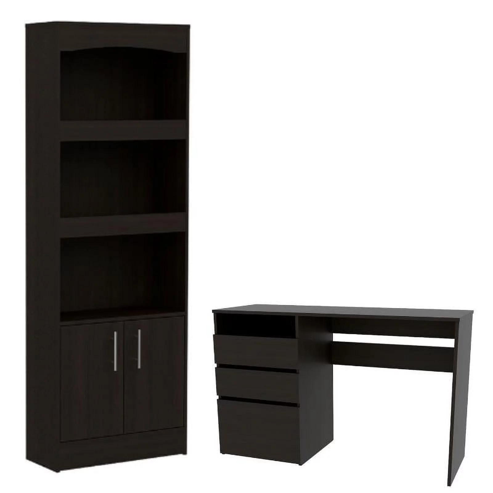 Home Square 2-Piece Set with Cabinet Bookcase and Three Drawer Computer Desk