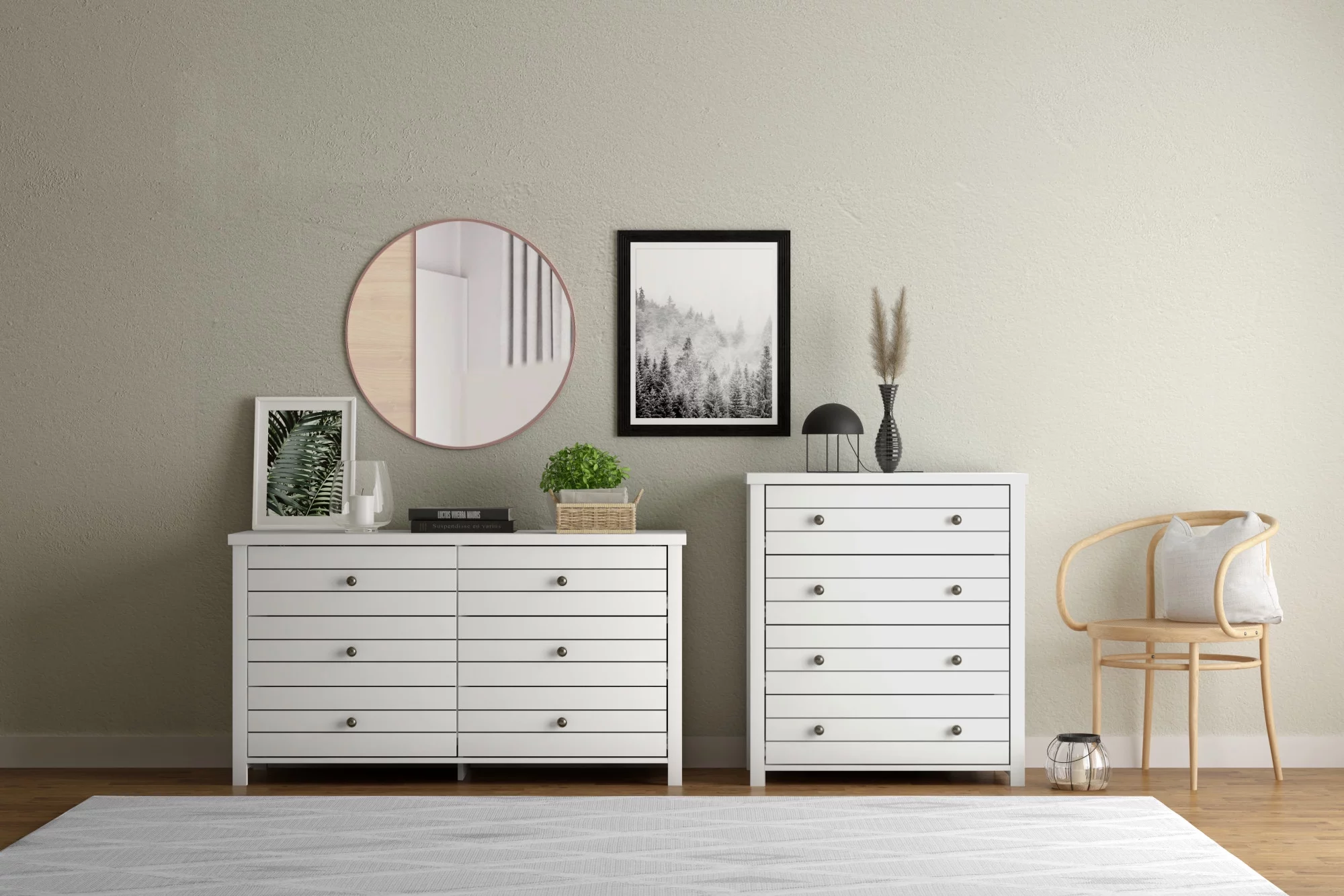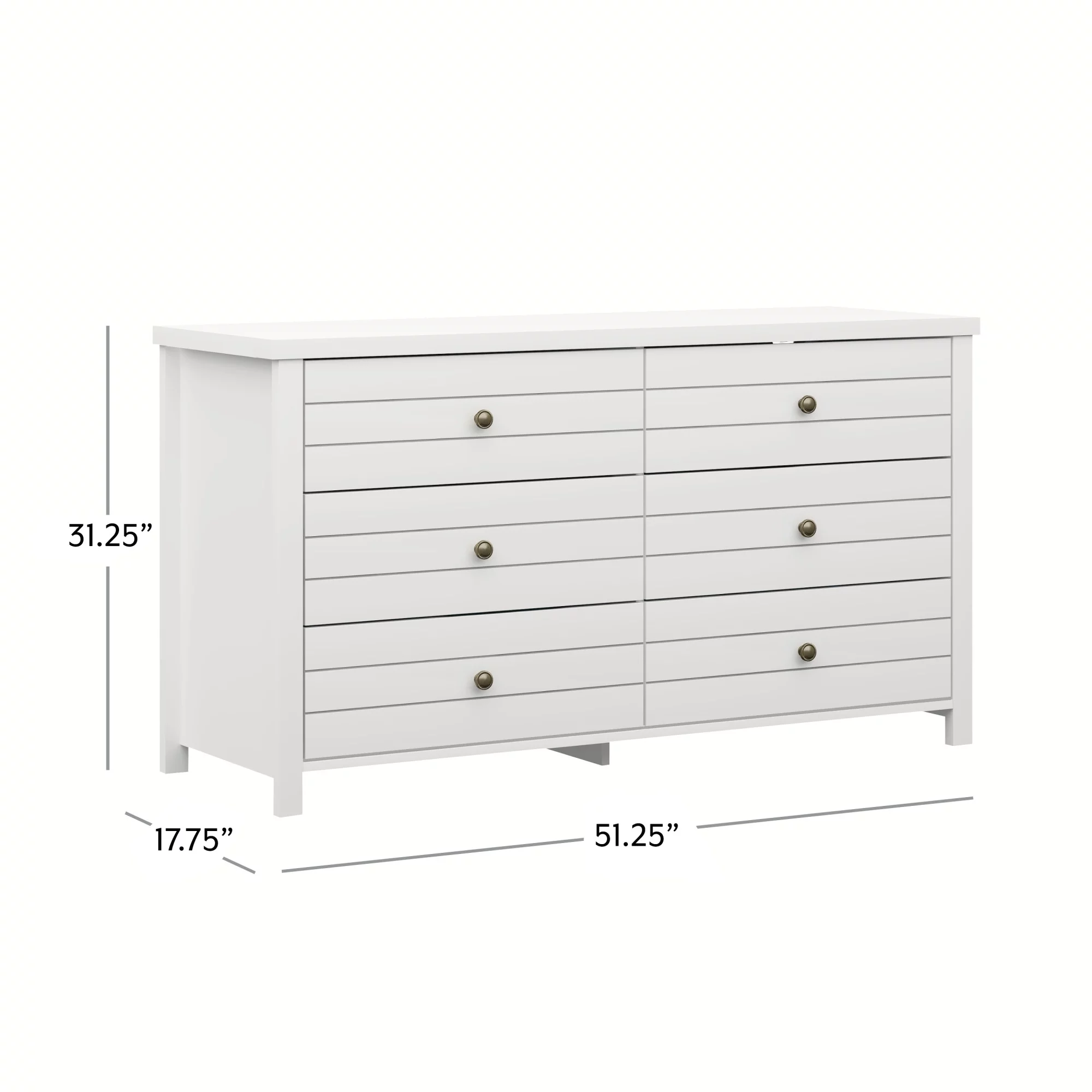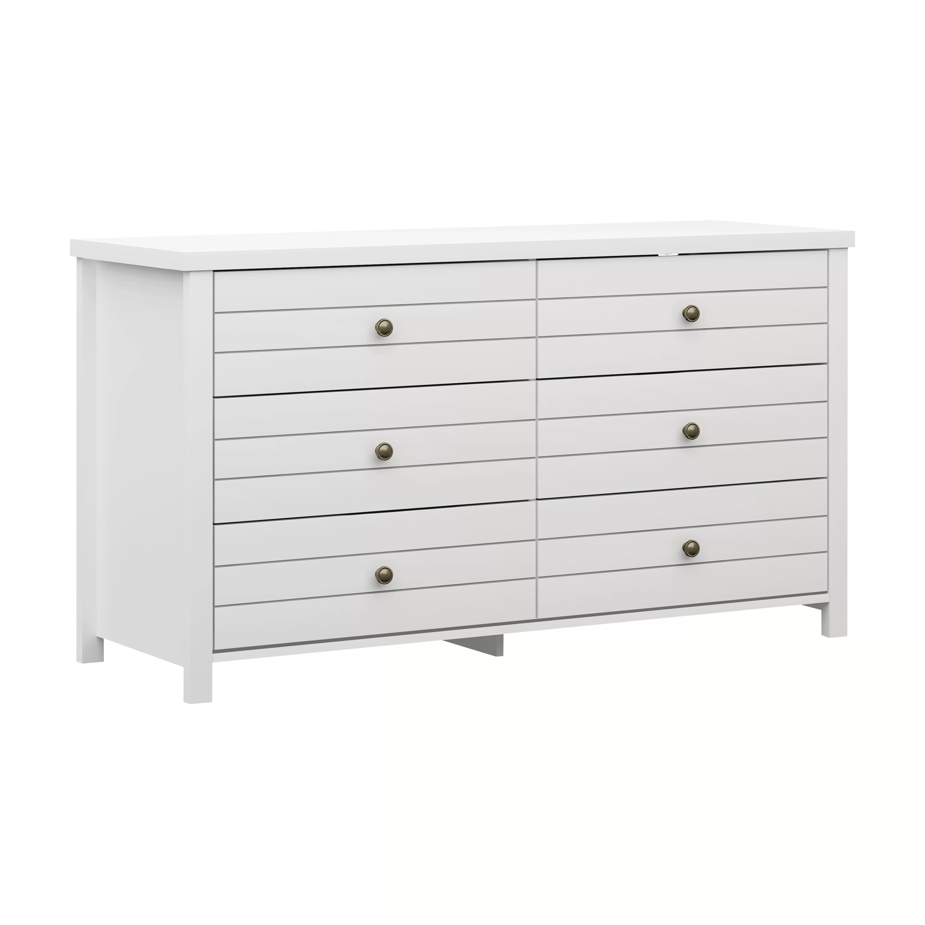 Living Essentials by Hillsdale Harmony Wood 6 Drawer Dresser, Matte White