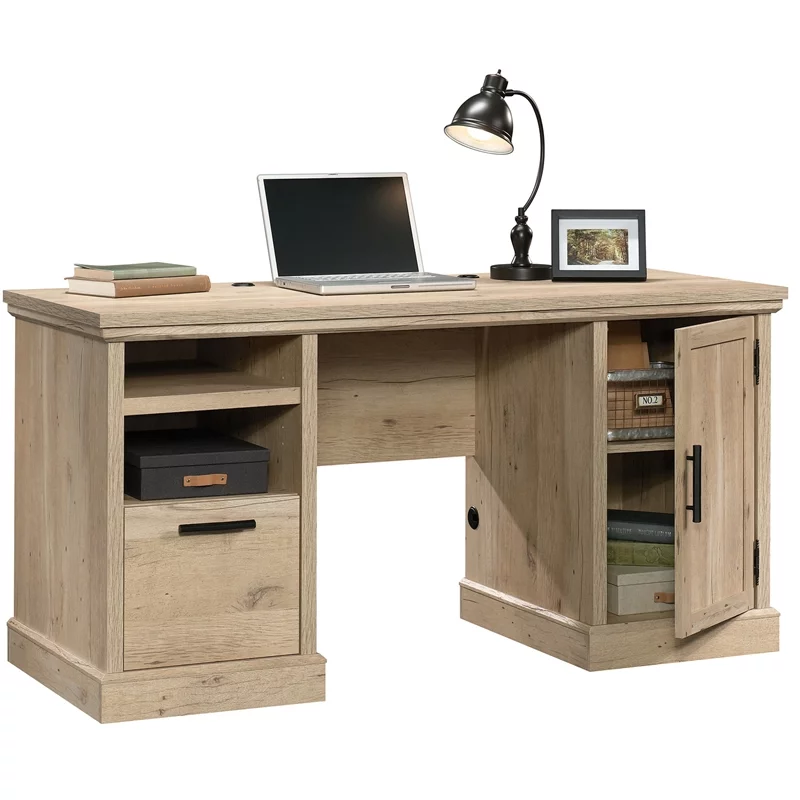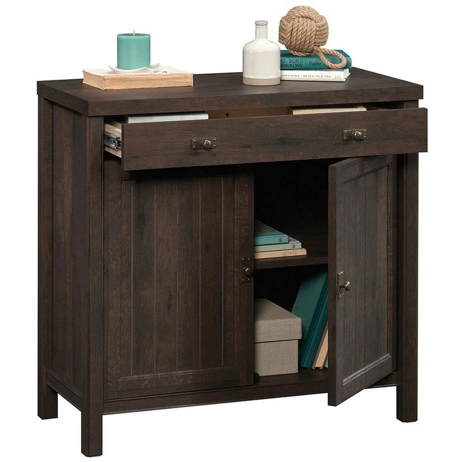 Sauder Affirm 72" Bowfront Desk and 3-Drawer Mobile File Cabinet in Cherry