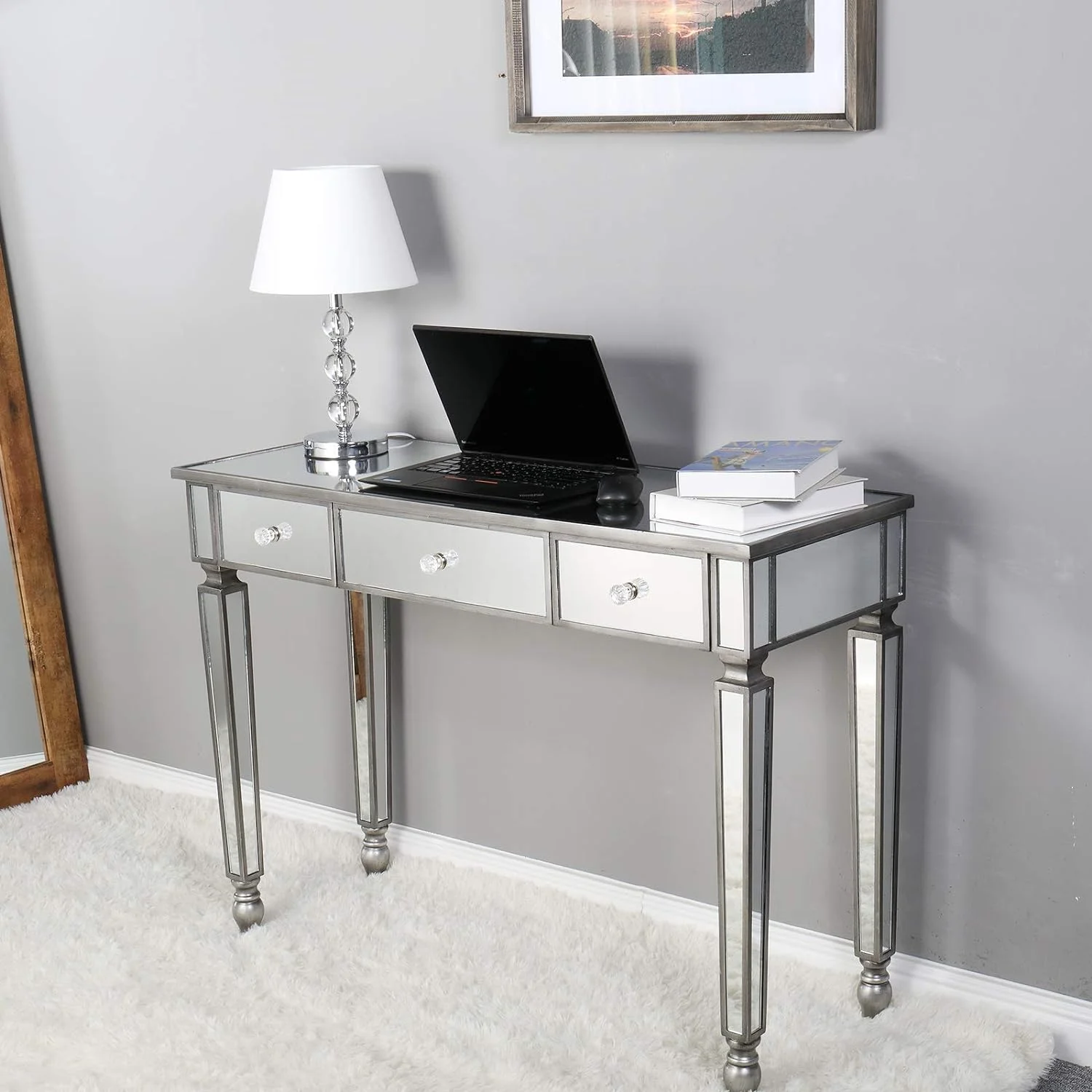 Crestview Bengal Manor Acacia Wood White Wash 3 Drawer Desk CVFNR514
