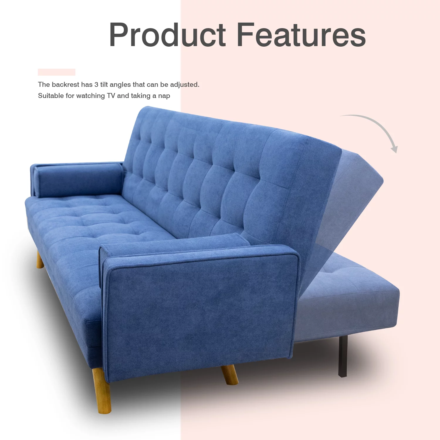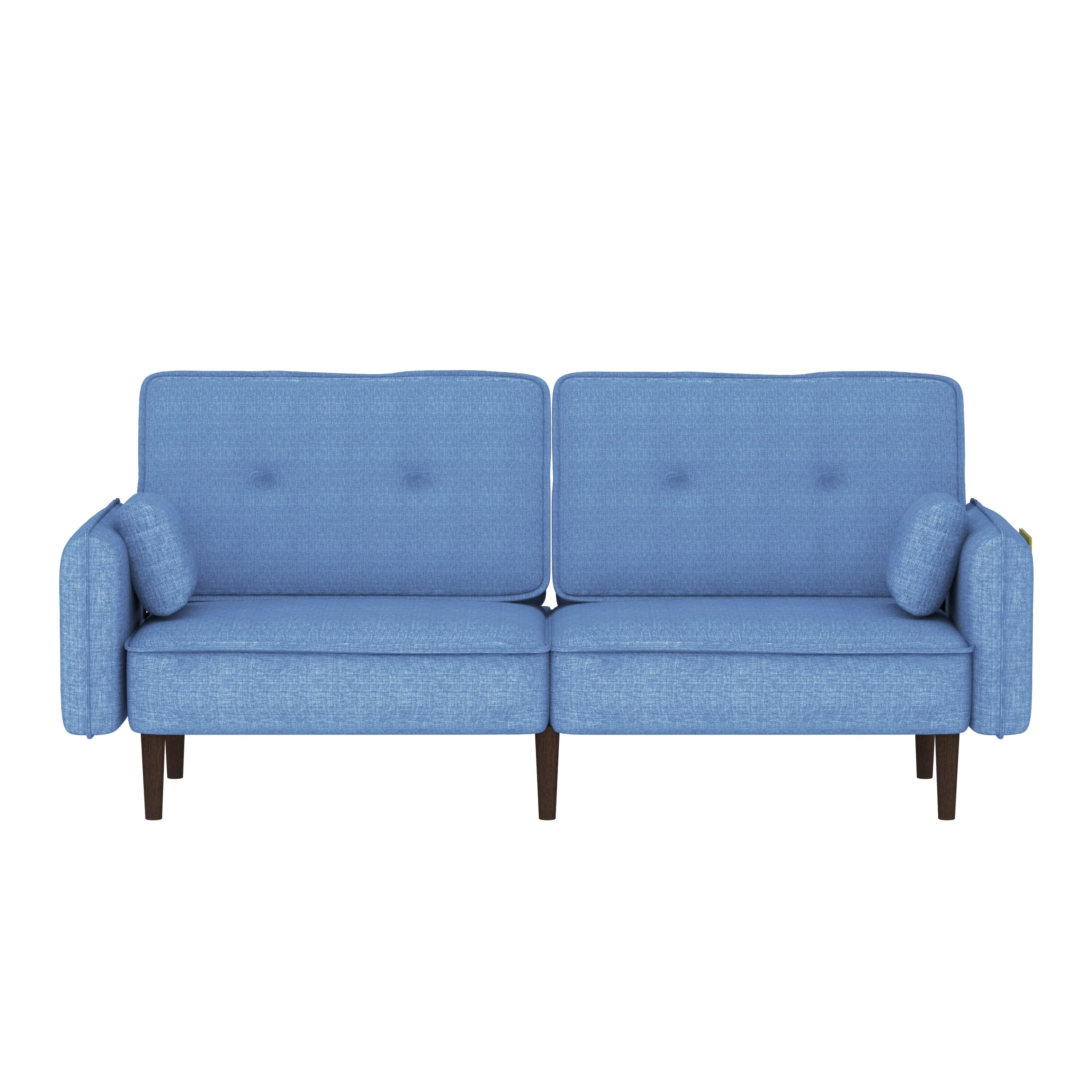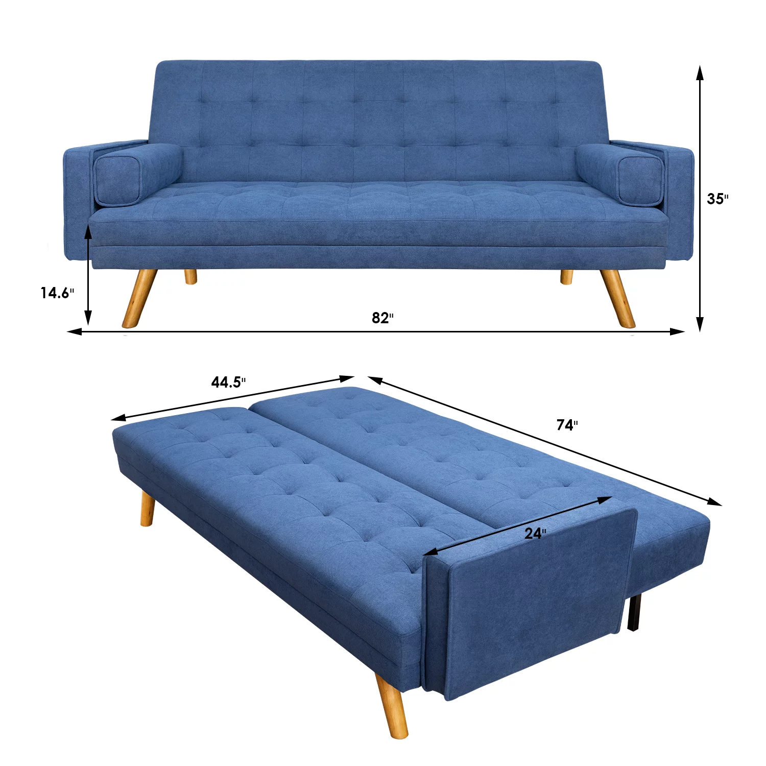 Vineego Linen Futon Sofa Bed Pin Tufted Split Back Convertible Reclining Sofa Fabric Bench Seat(Blue)