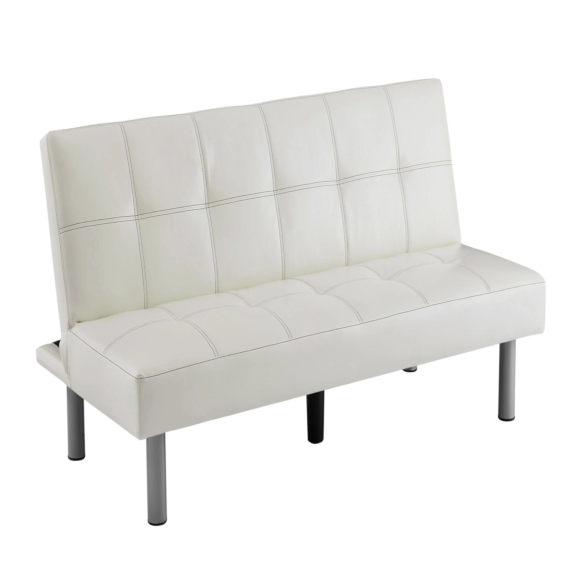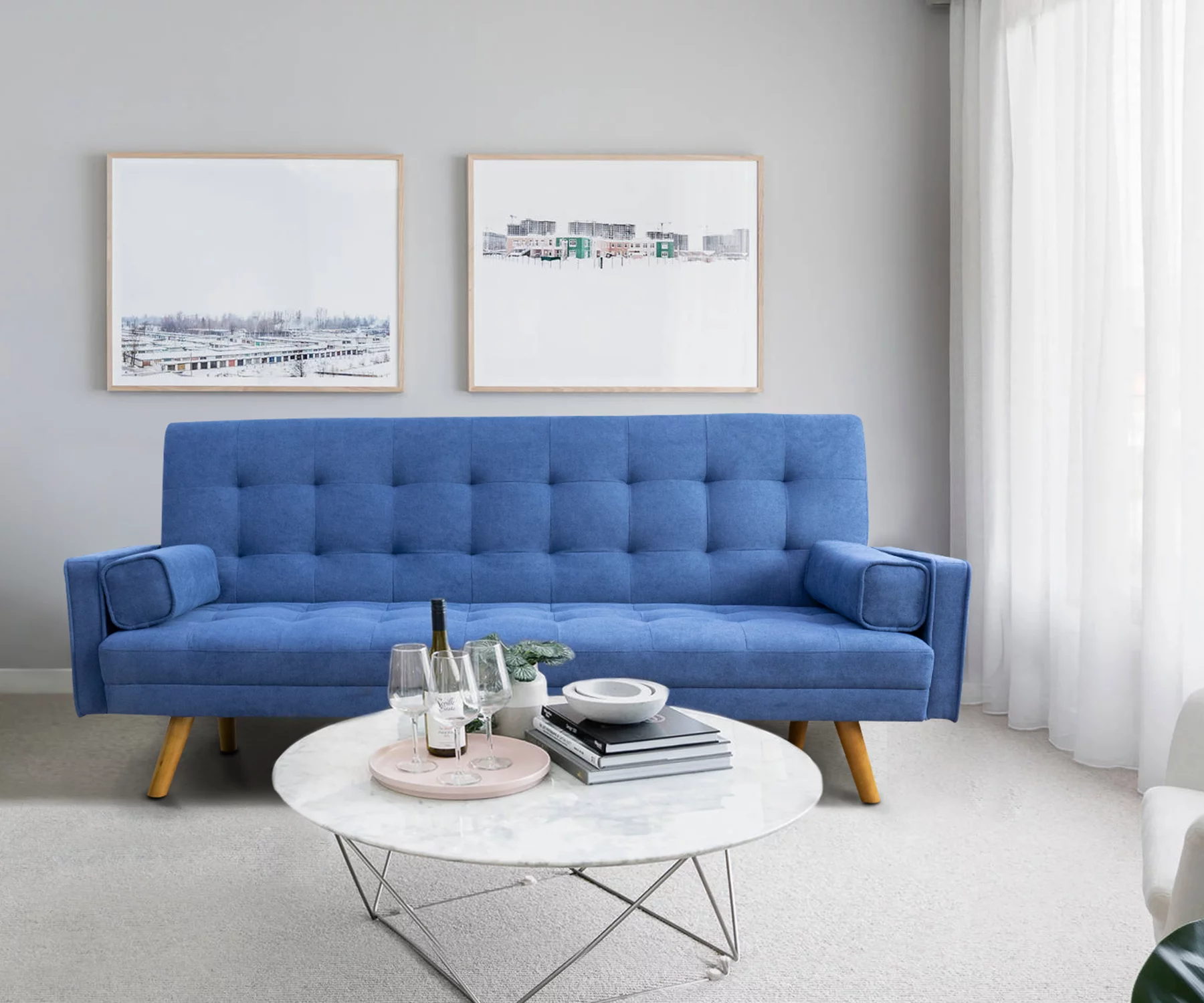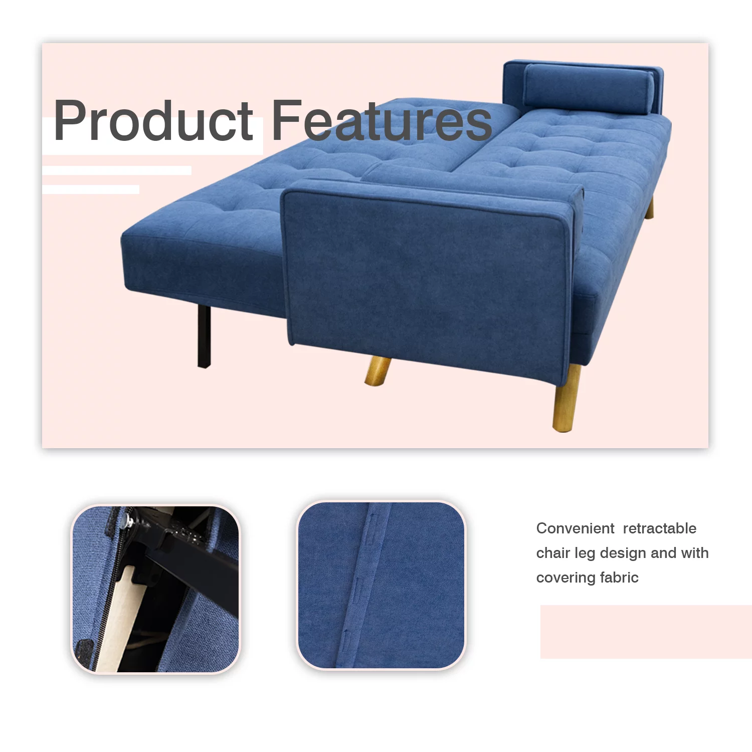 Vineego Linen Futon Sofa Bed Pin Tufted Split Back Convertible Reclining Sofa Fabric Bench Seat(Blue)