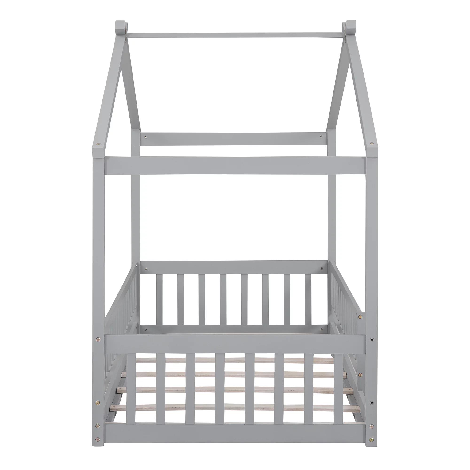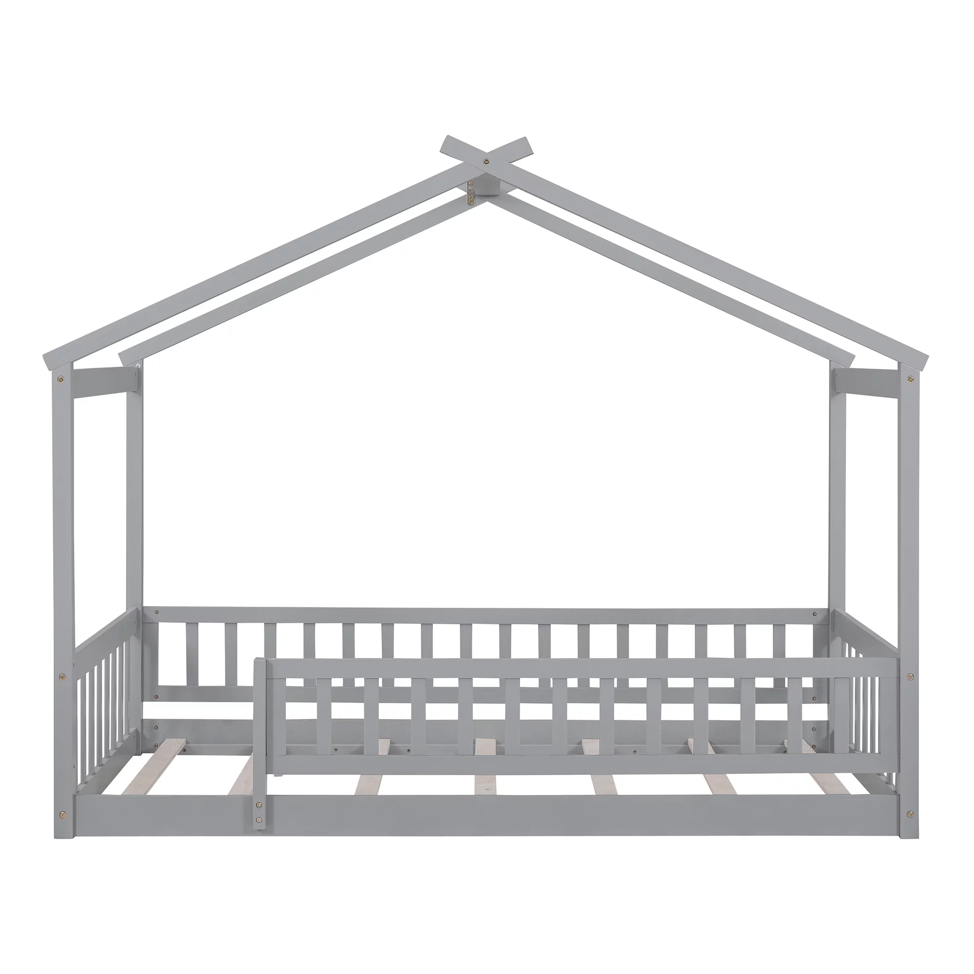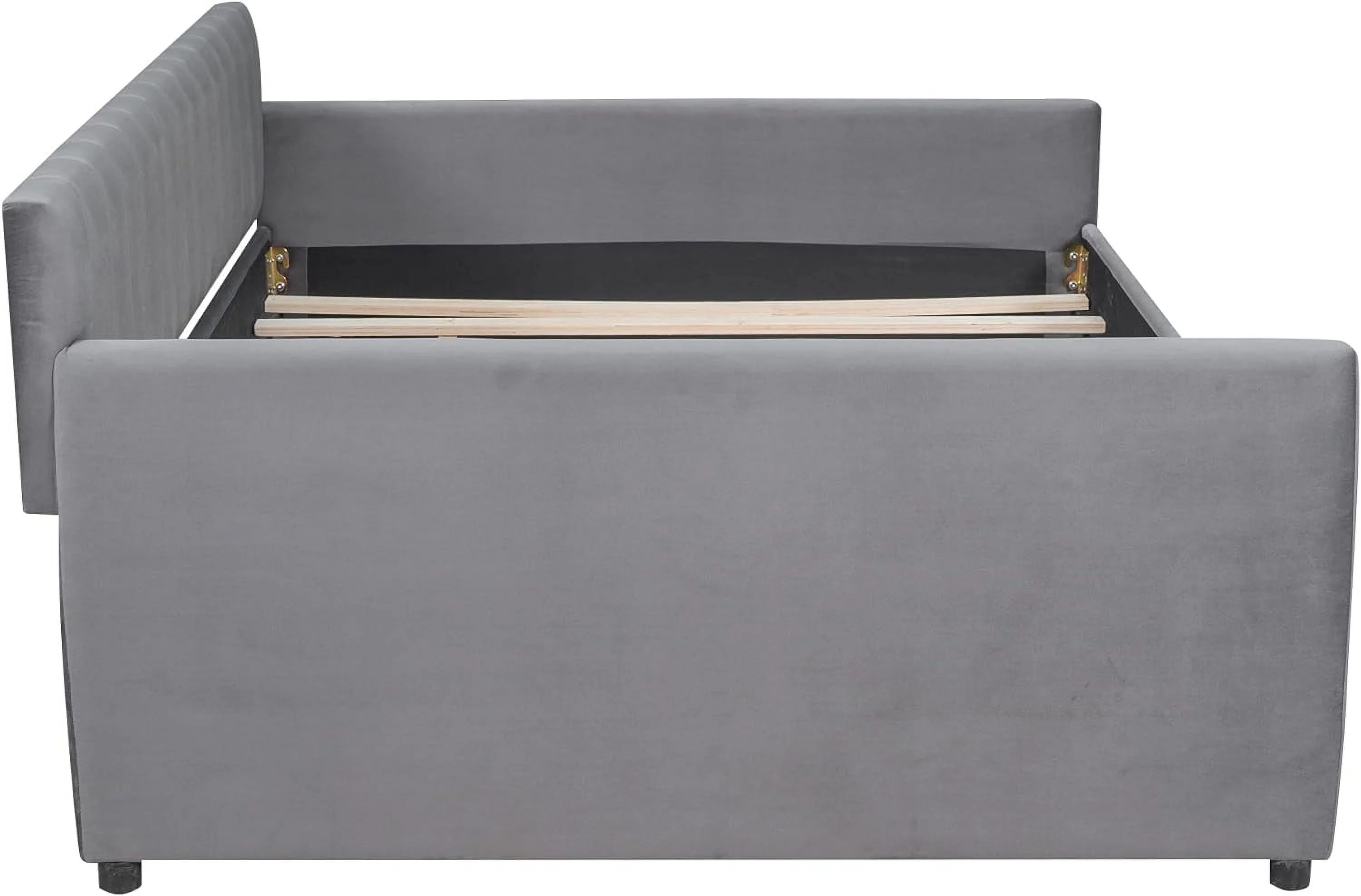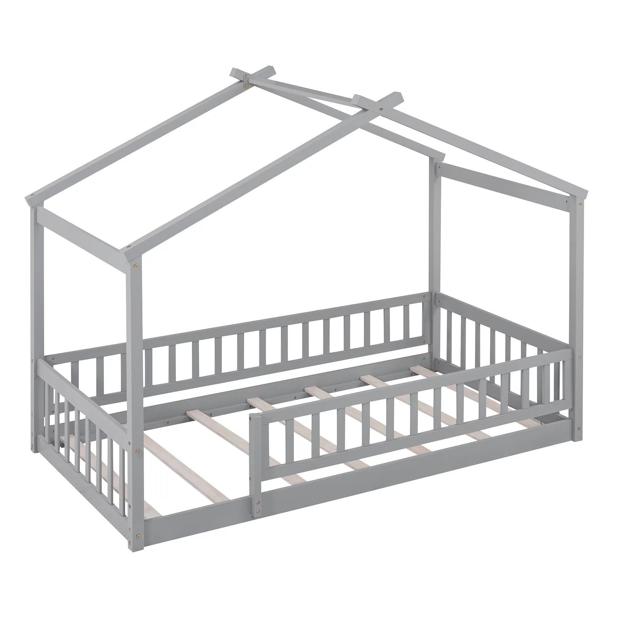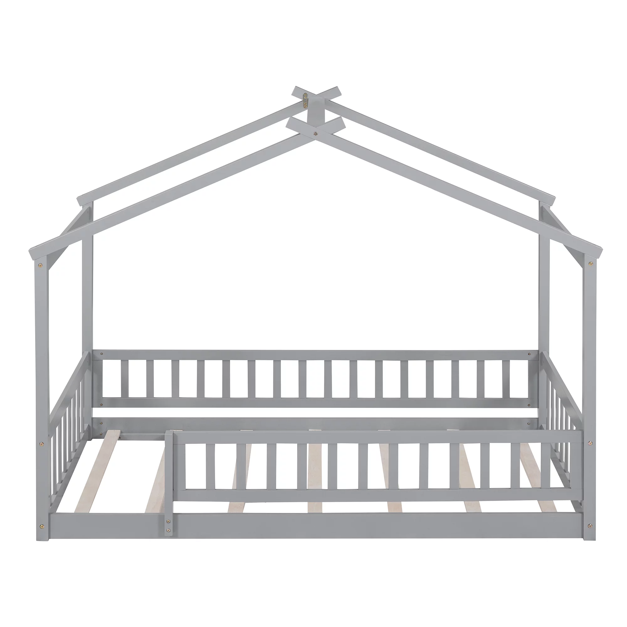 Full Size Daybed With Trundle, Wood Full Bed Frame With Fence Guardrails, No Box Spring Needed, Gray