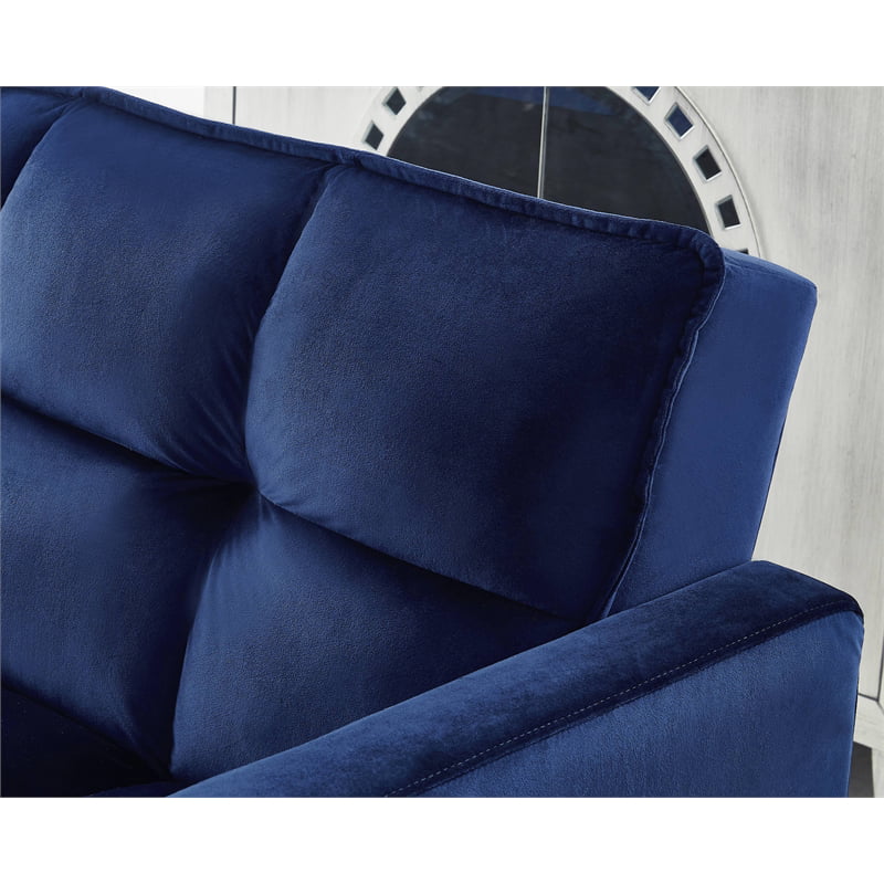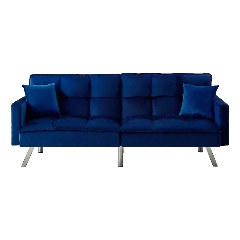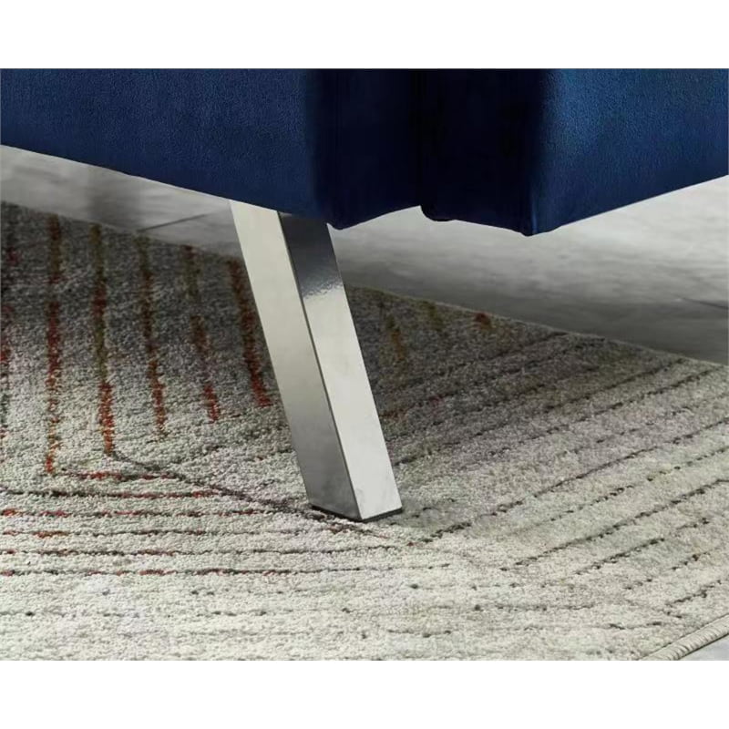 Legend Vansen 80" Convertible Wood & Velvet Fabric Sleeper Sofa Bed in Blue