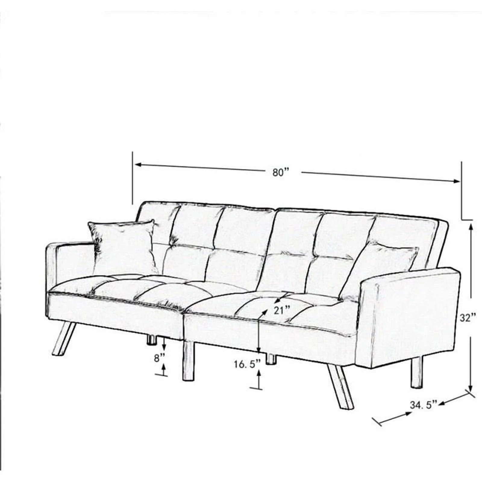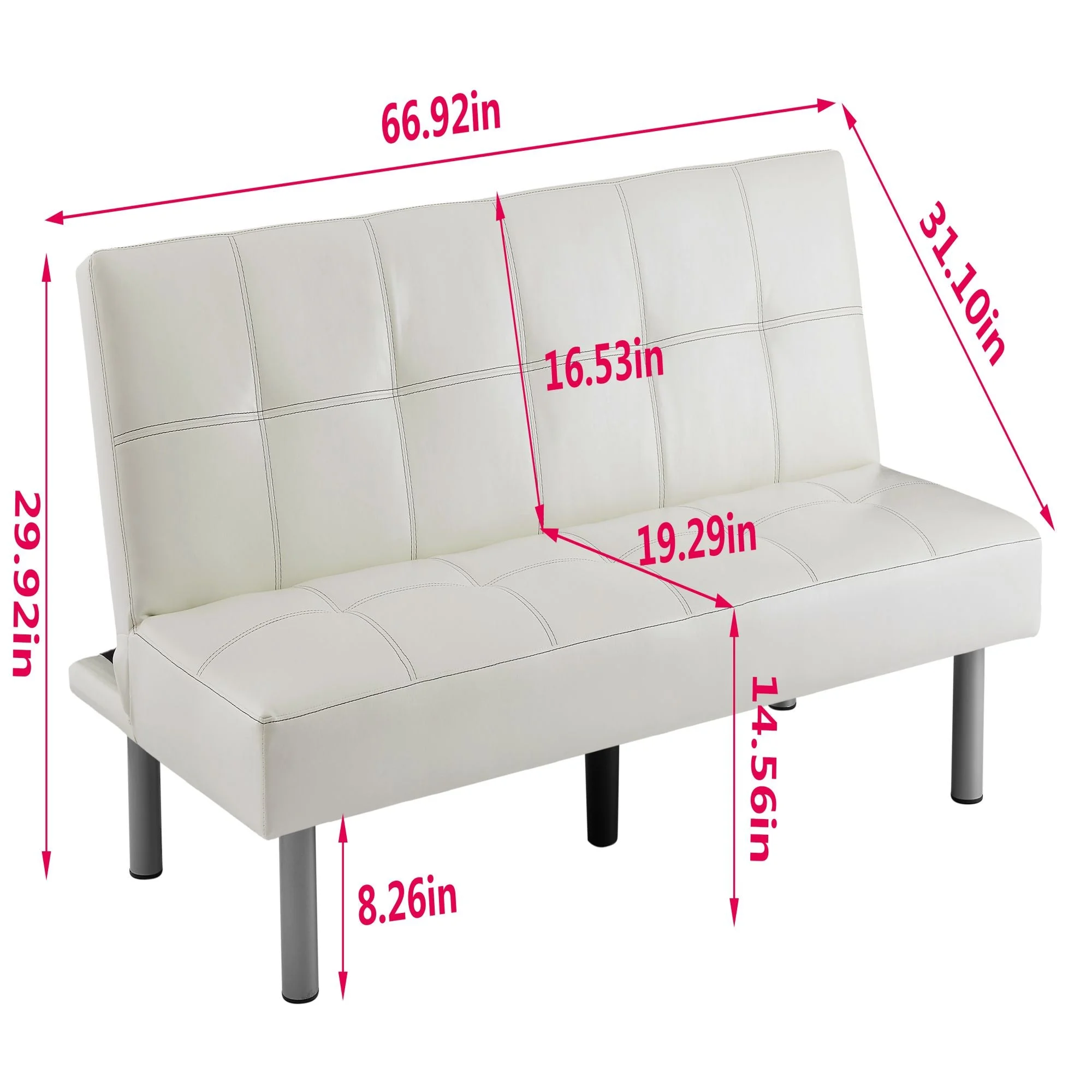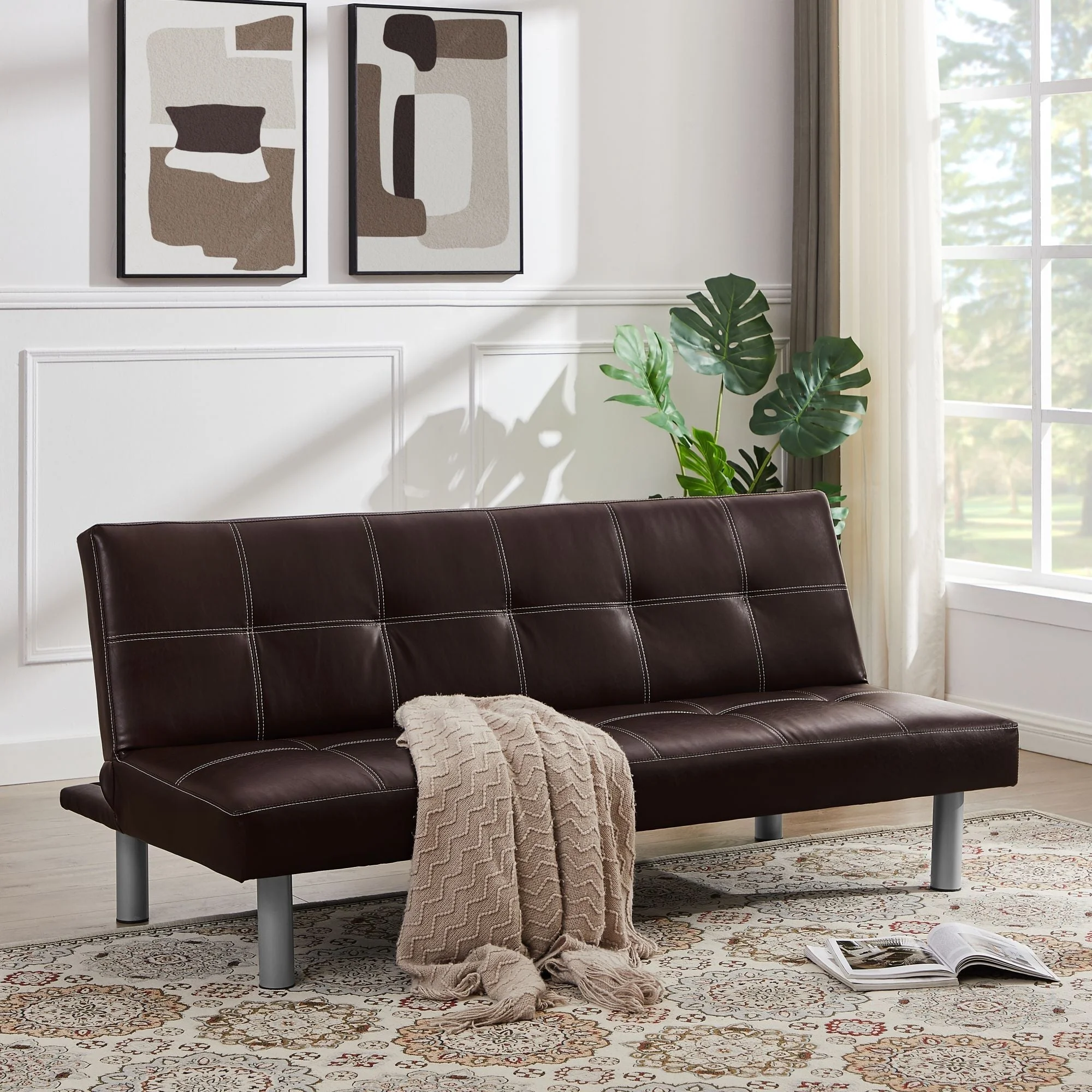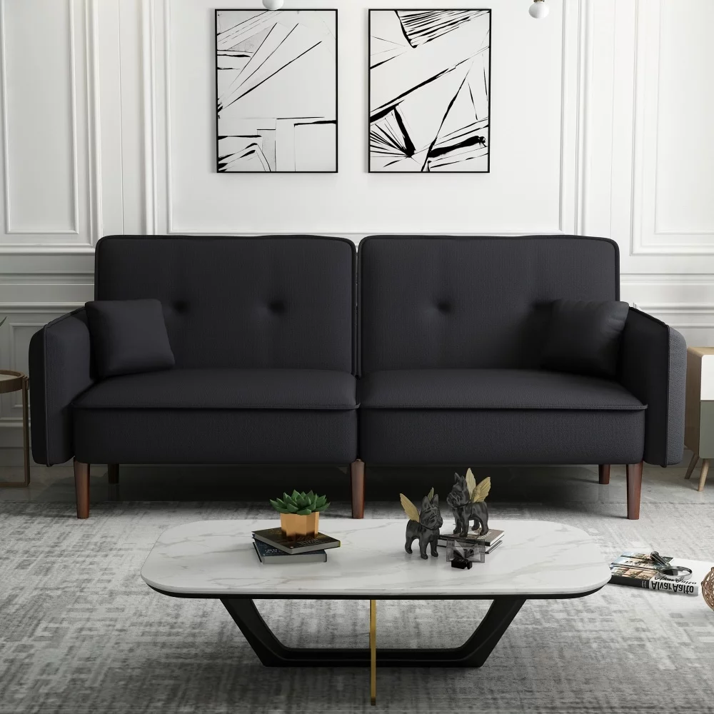 Three-person foldable sofa bed, PU leather, solid wood frame, and metal foot support, Can be laid flat as a bed.