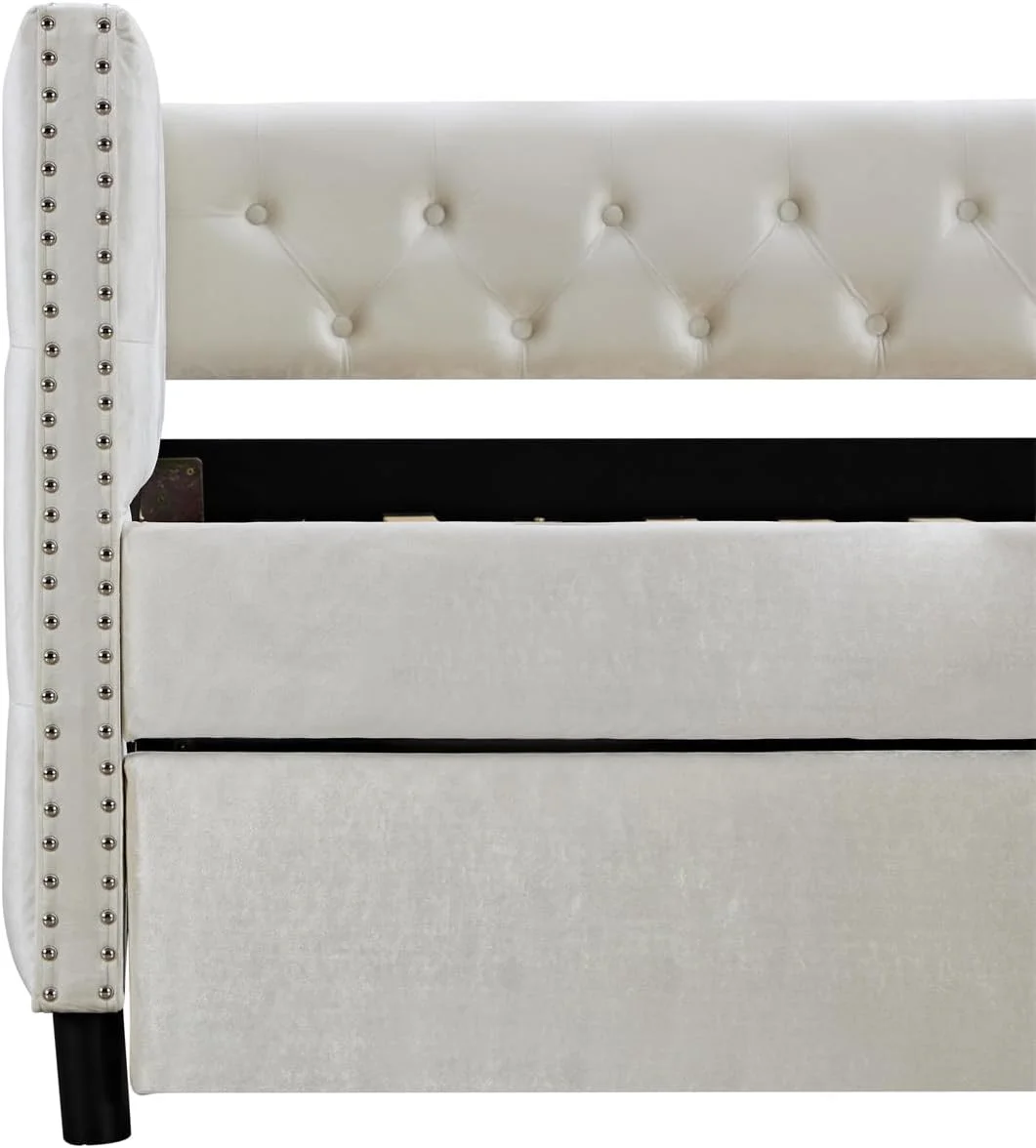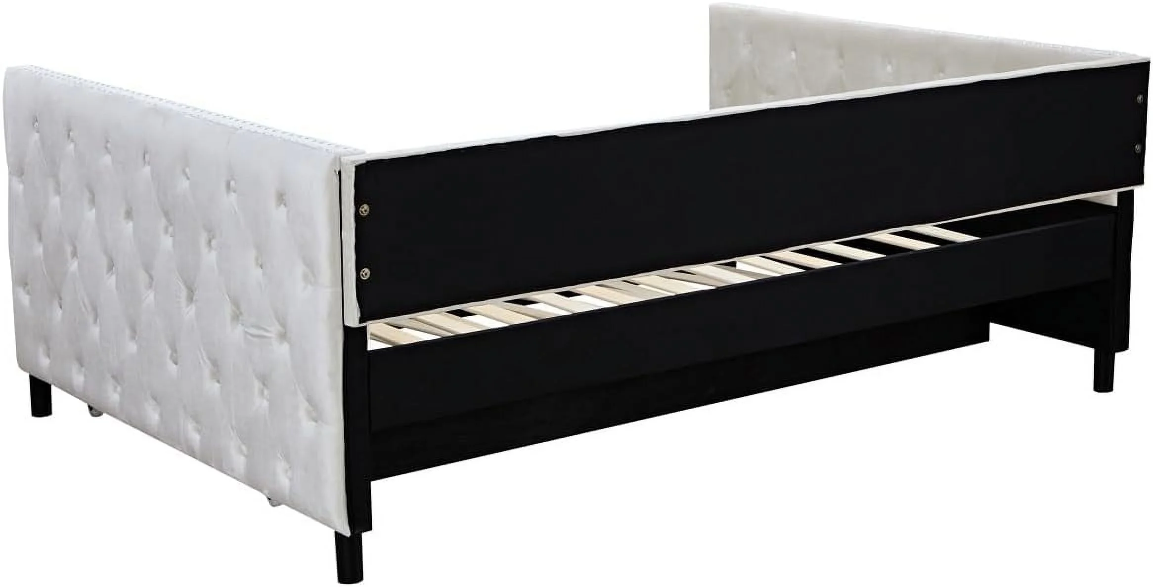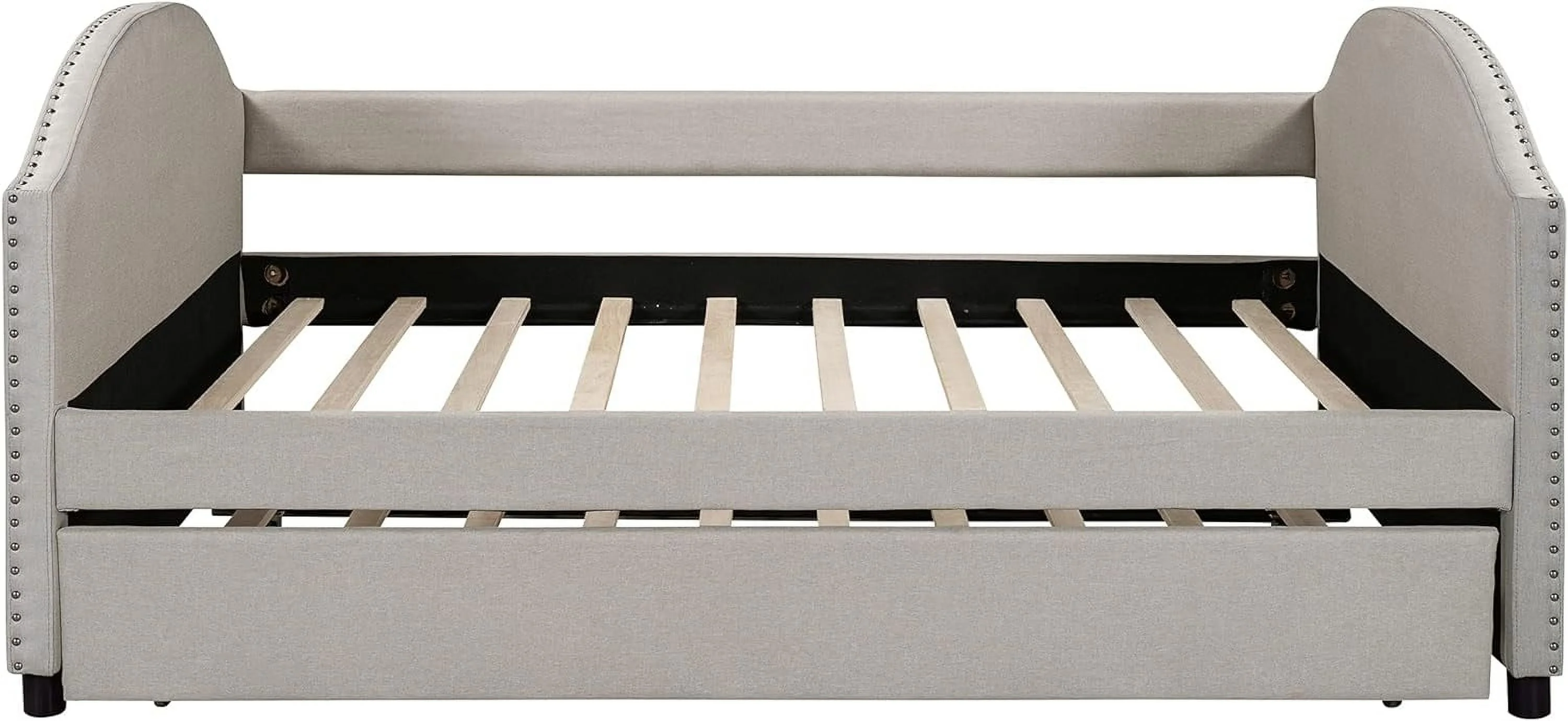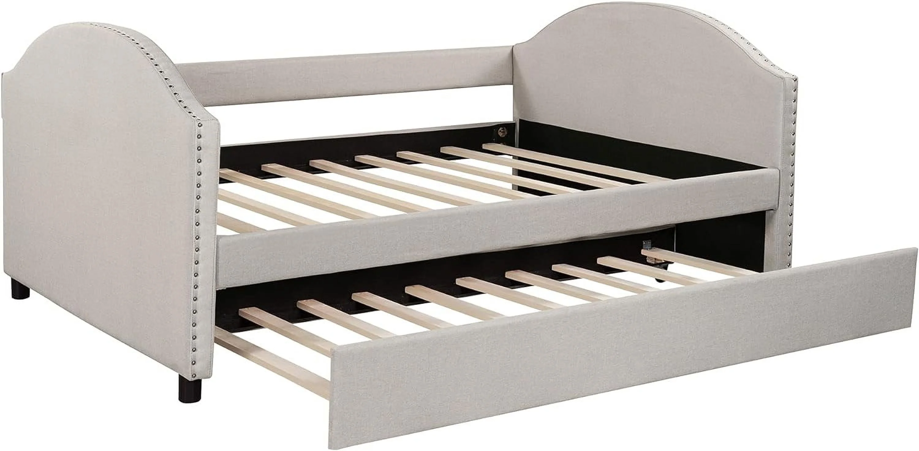 Full Size Daybed With Trundle, Wood Full Bed Frame With Fence Guardrails, No Box Spring Needed, Walnut