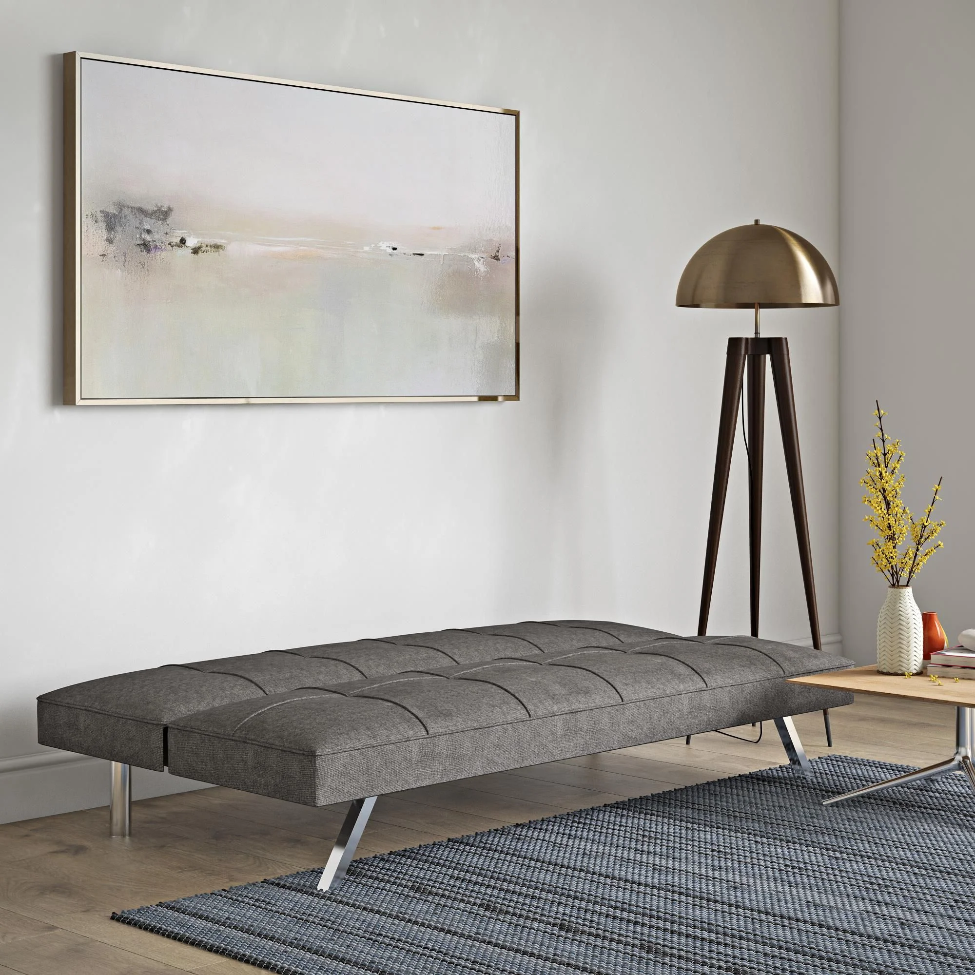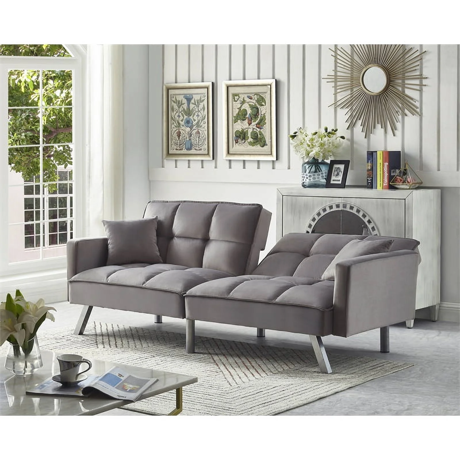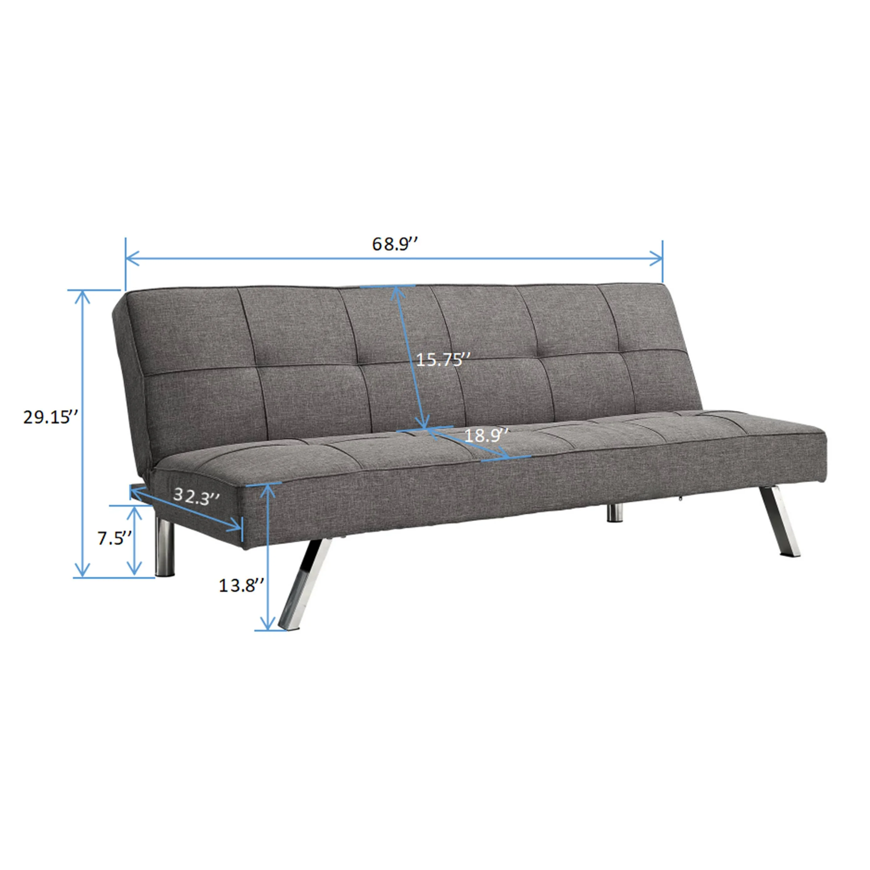 Multifunctional Sofa Bed in Grey Linen Metal Frame, Stainless Leg, FUTON, Sofa Bed