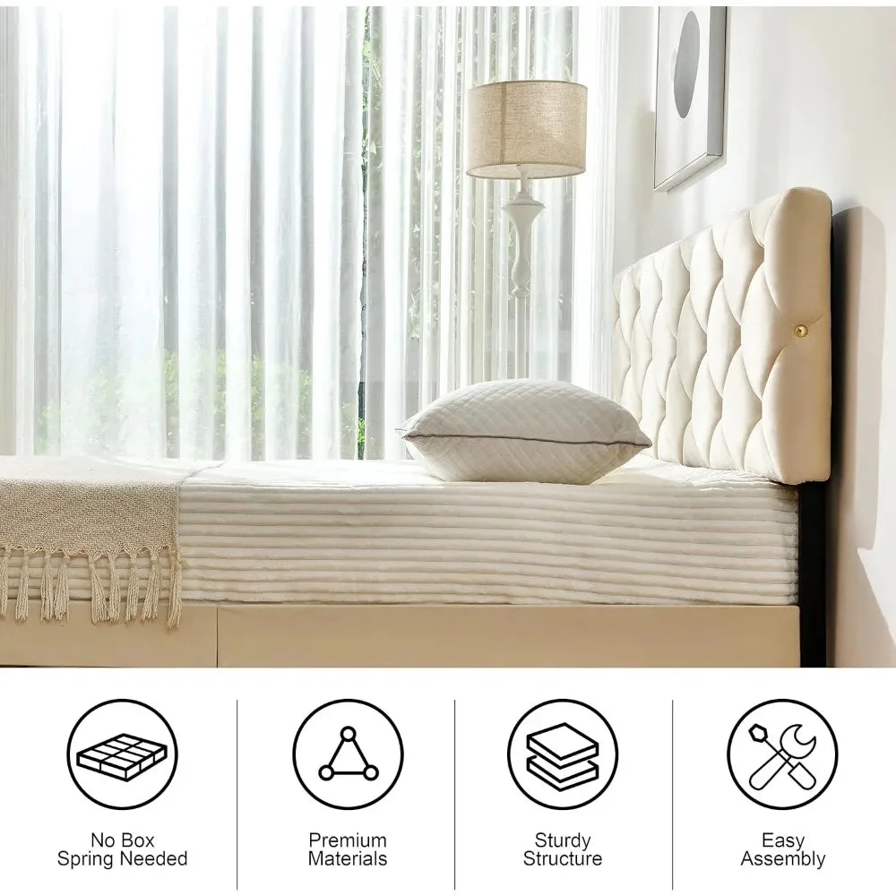Full Size Platform Bed With Headboard And Footboard,Solid Bed Frame With Strong Slats,No Box Spring Needed