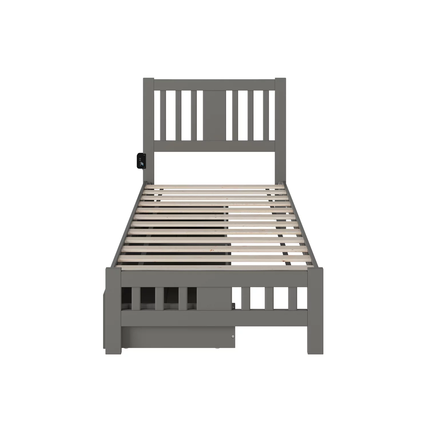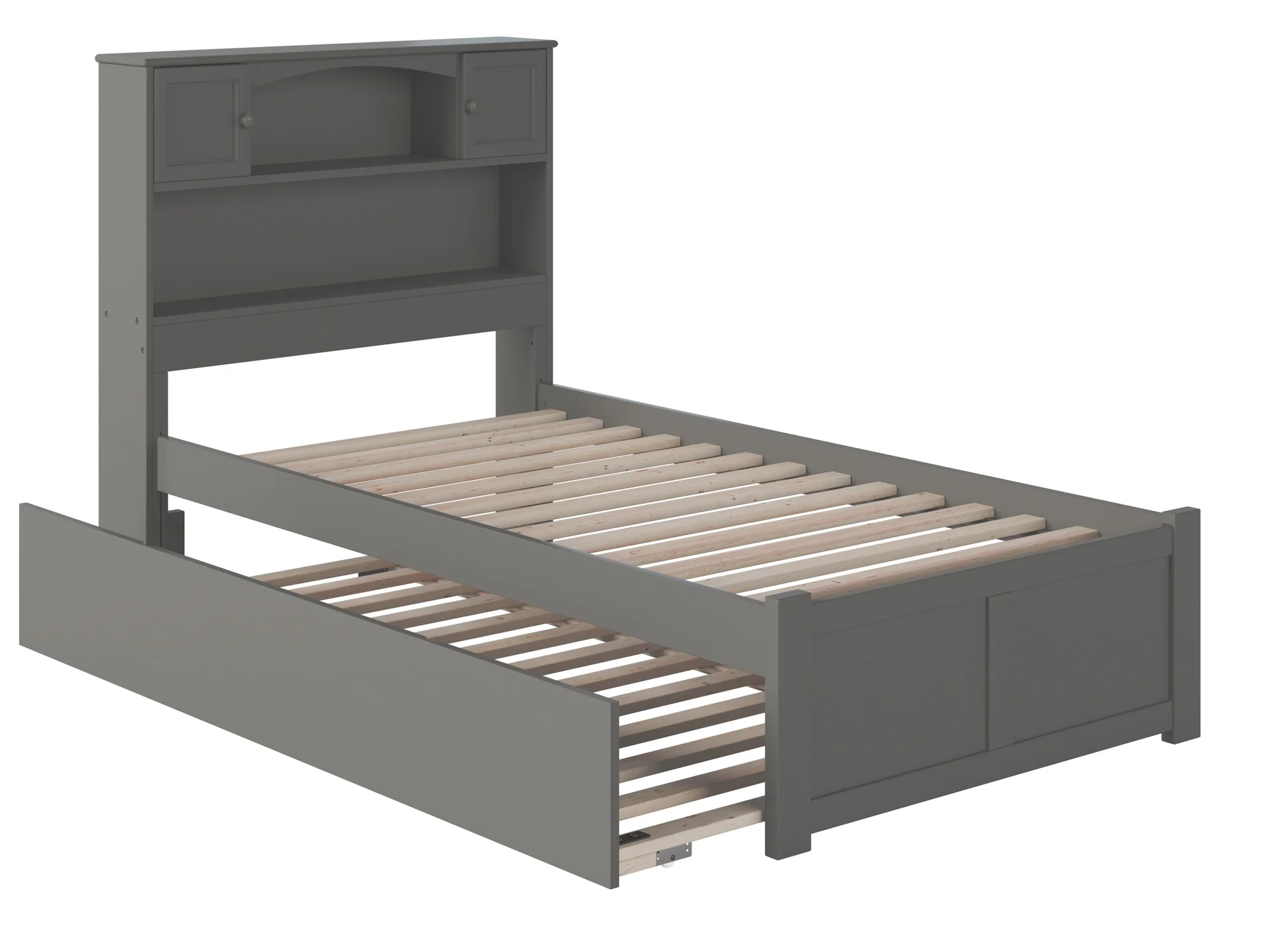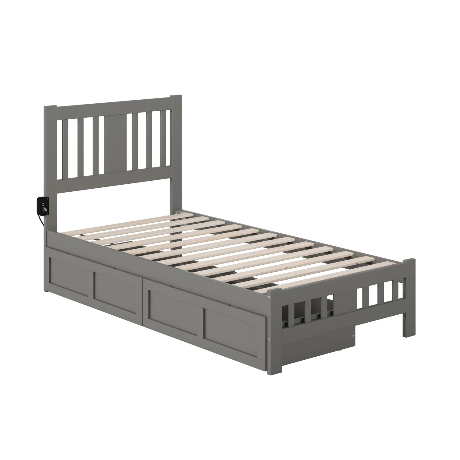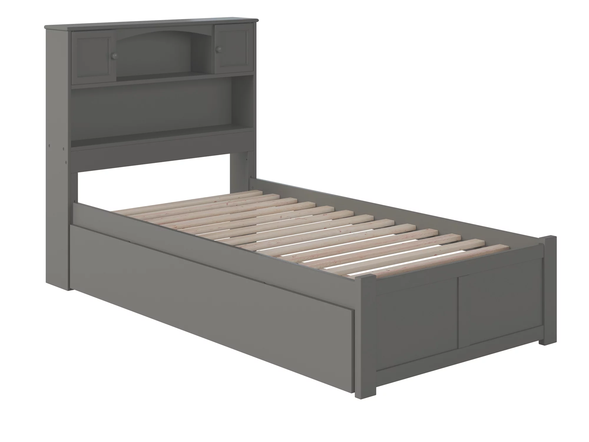 AFI Newport Twin Solid Wood Platform Bed with Footboard & Twin Trundle in Grey