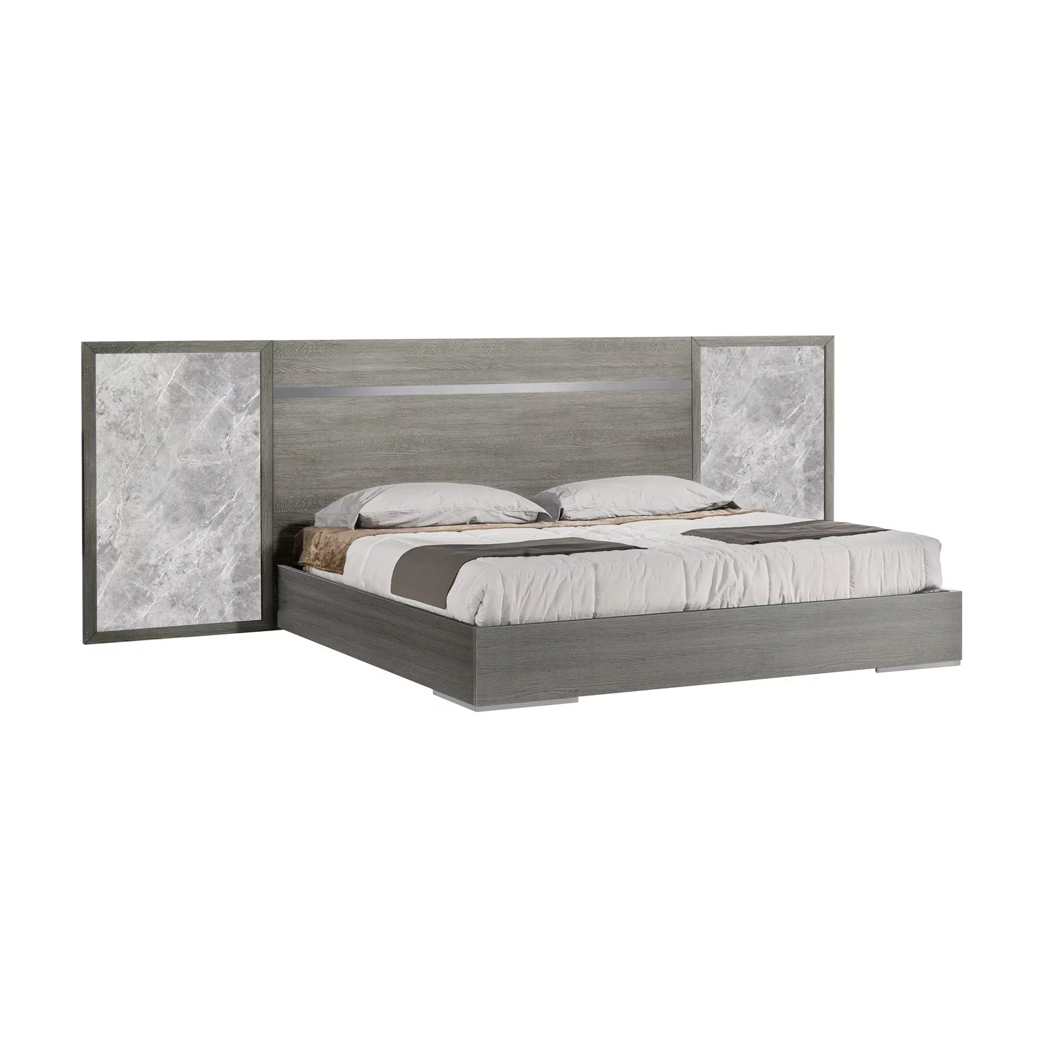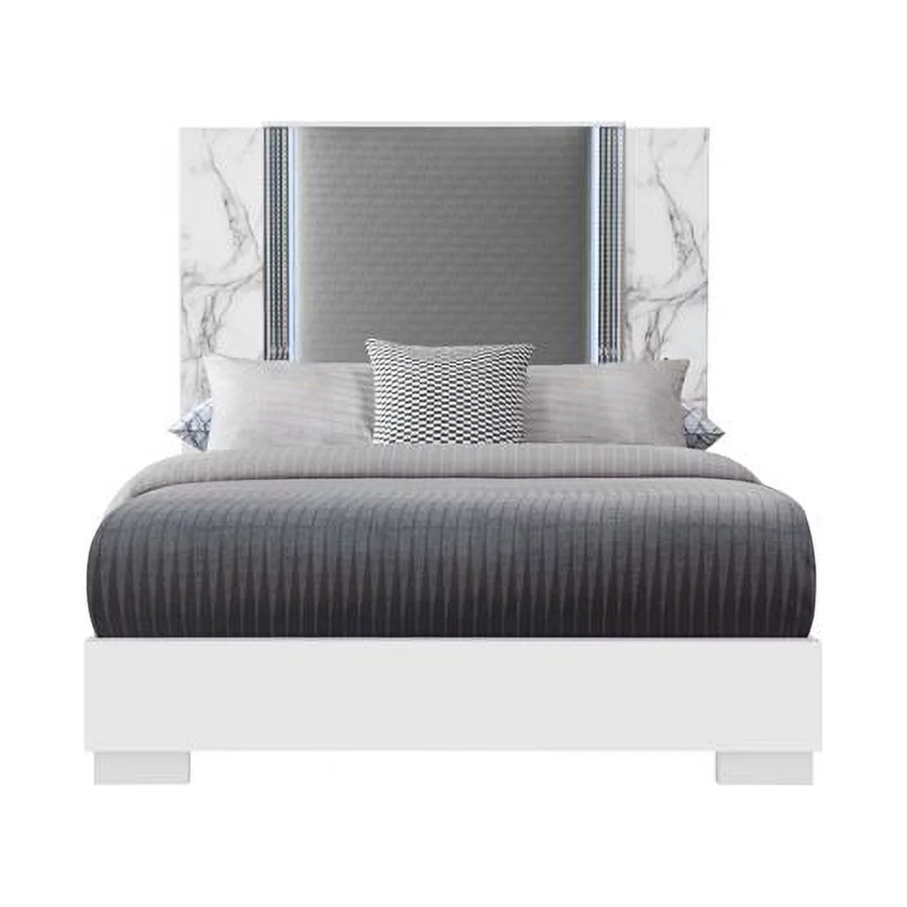 YLIME-WHITE MARBLE-QB W- LED Ylime White & Marble Queen Size Bed with LED