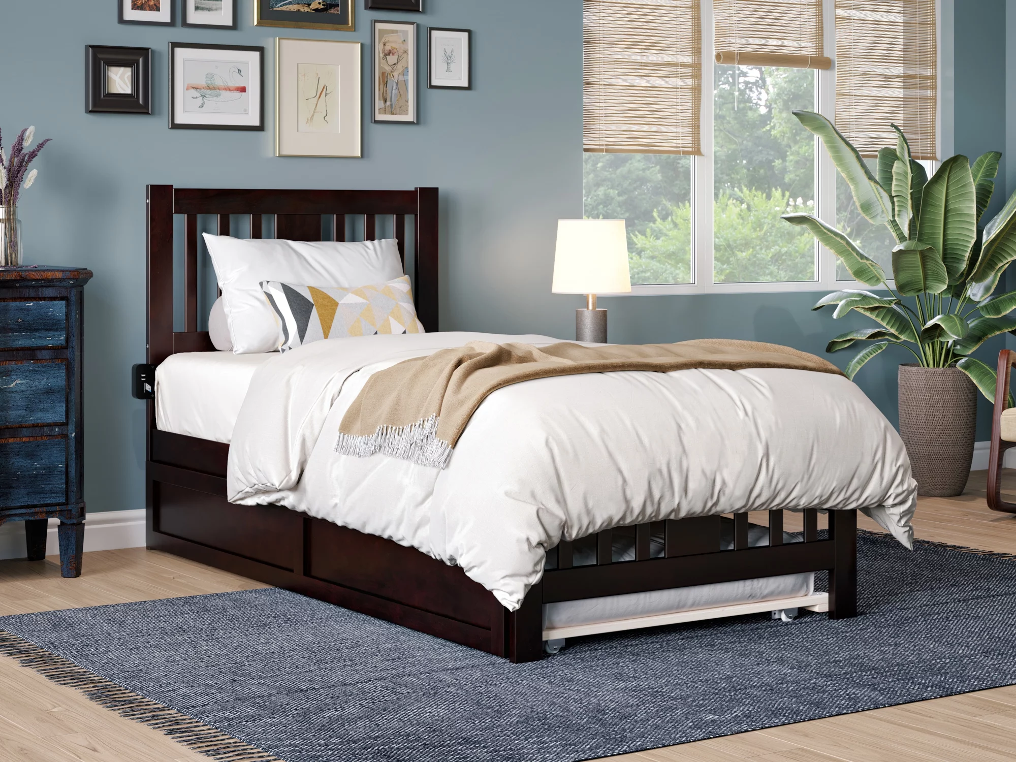 AFI Tahoe Twin Wood Platform Bed with Headboard Footboard & Twin Trundle, Espresso
