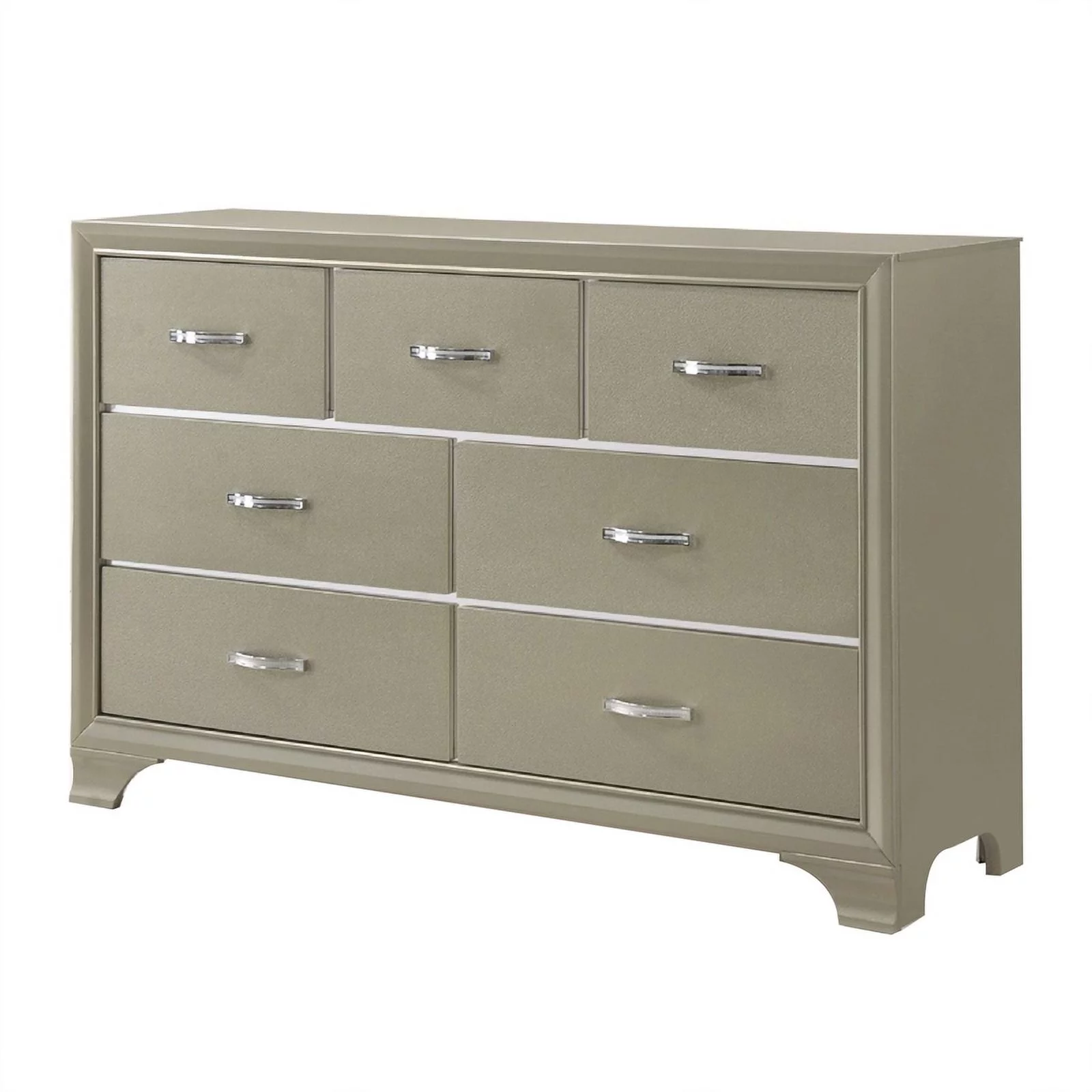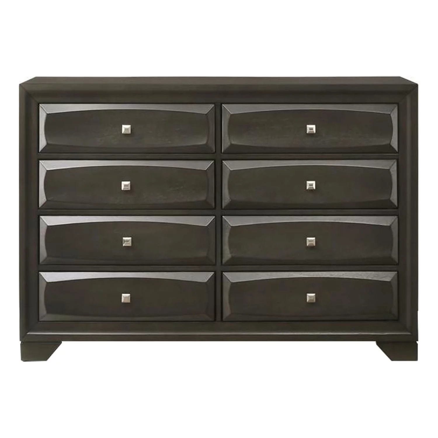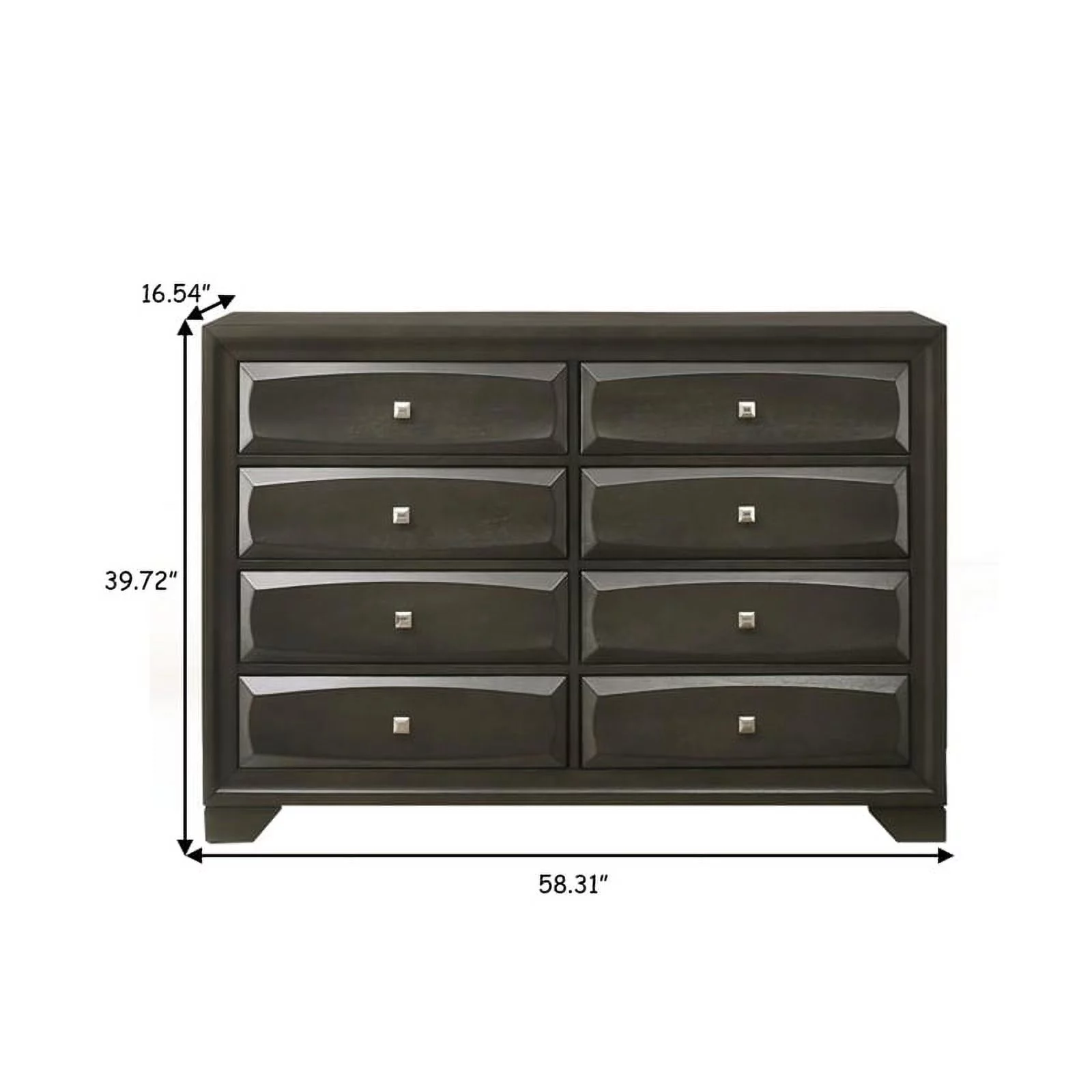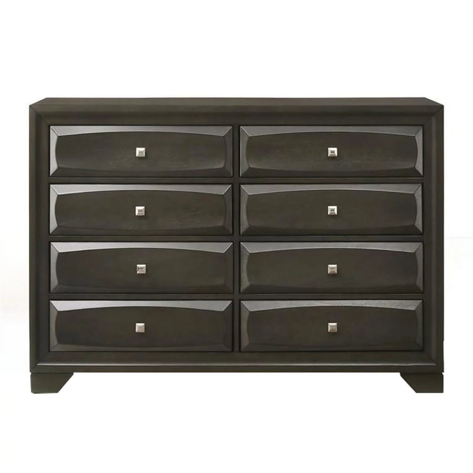 Benzara Eight Drawer Dresser With Brushed Nickel Accent And Chamfered Legs, Antique Gray