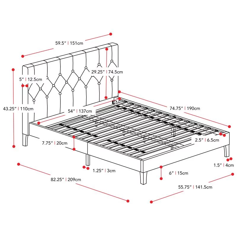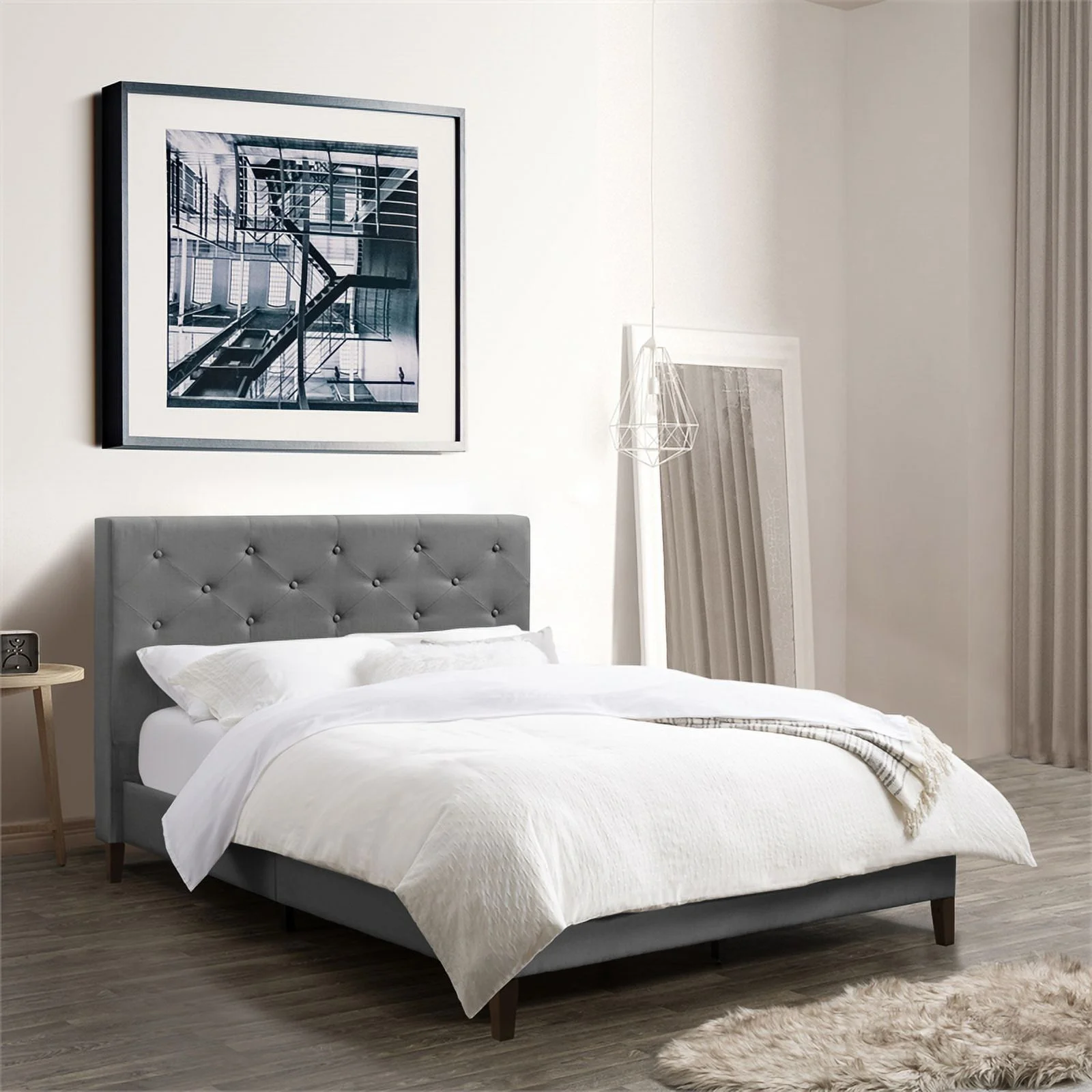 Bellevue Light Gray Fabric Upholstered Full / Double Bed with Headboard