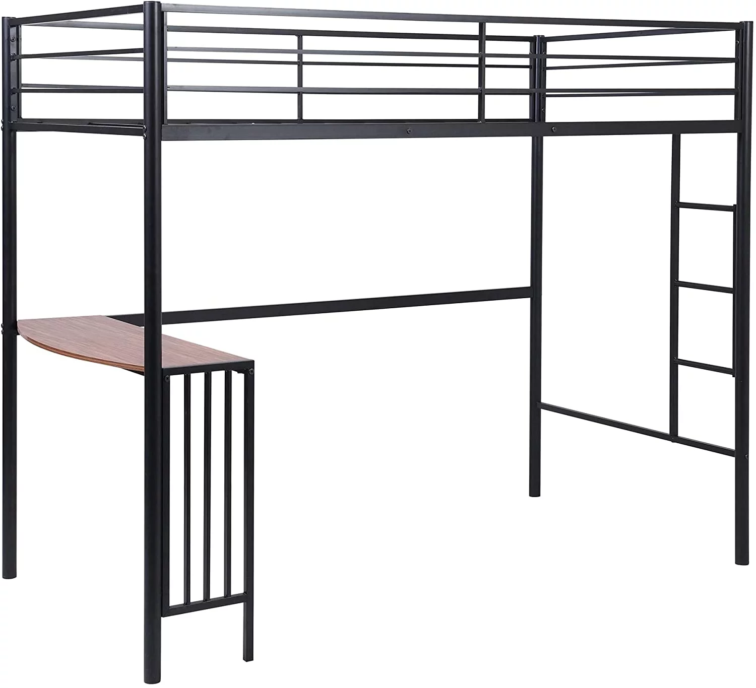Size Meal Lof Bed Wih Desk, Ladder Ad Guardrails, For Kids ees Aduls – Black