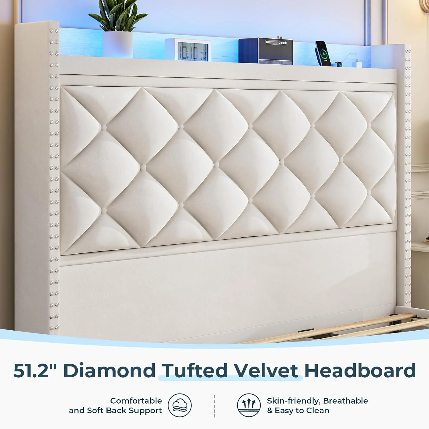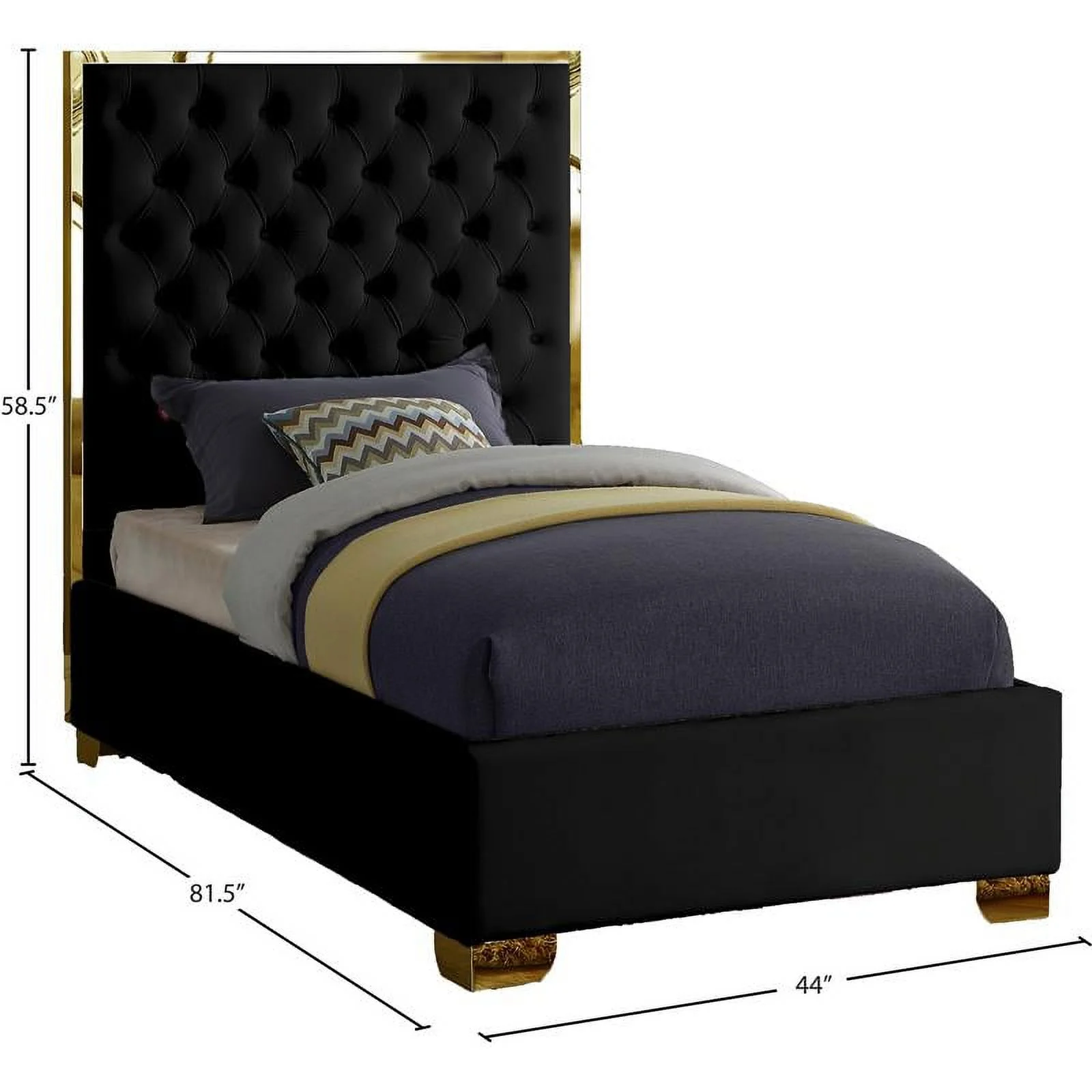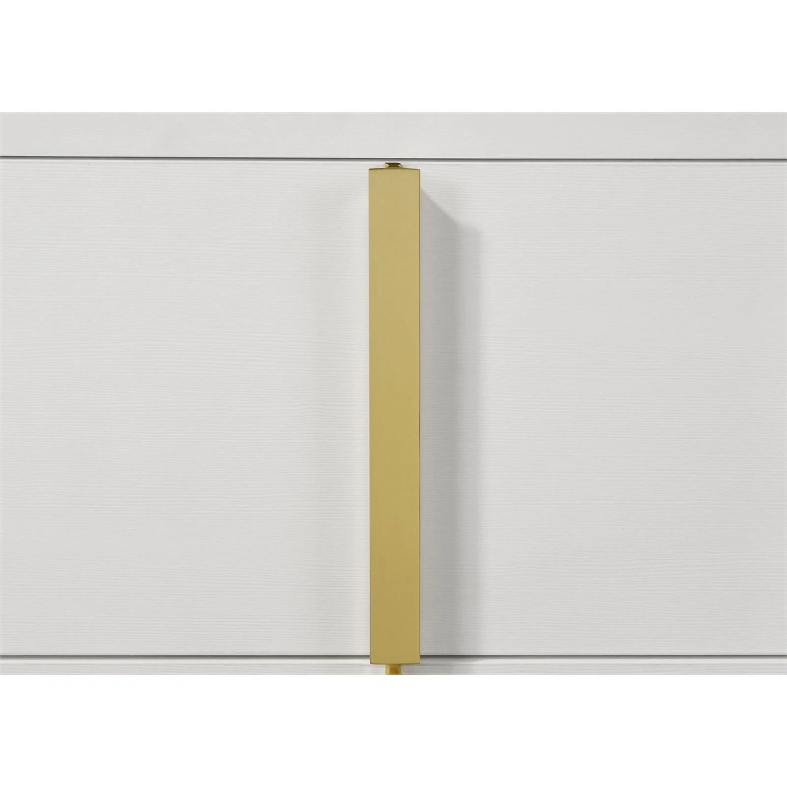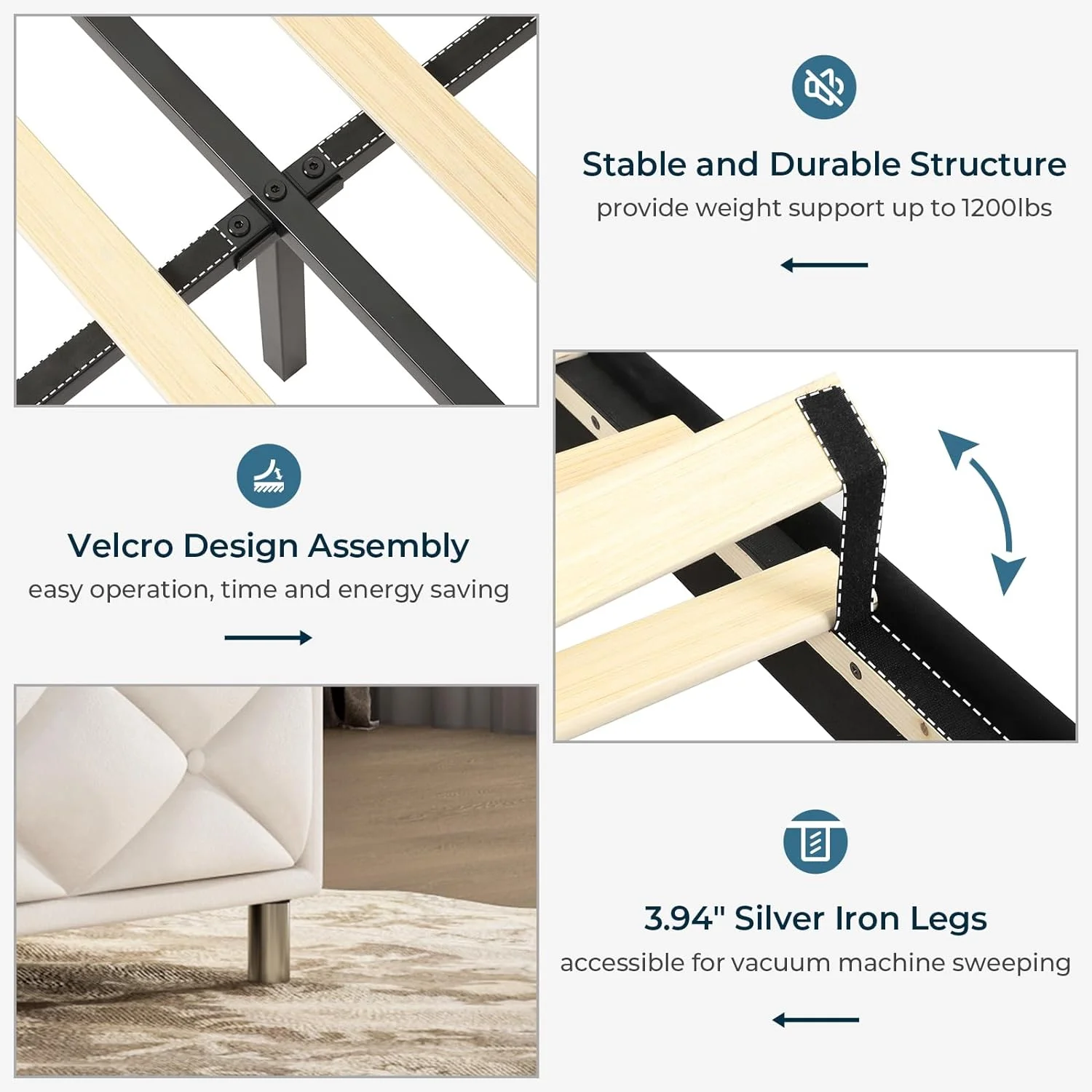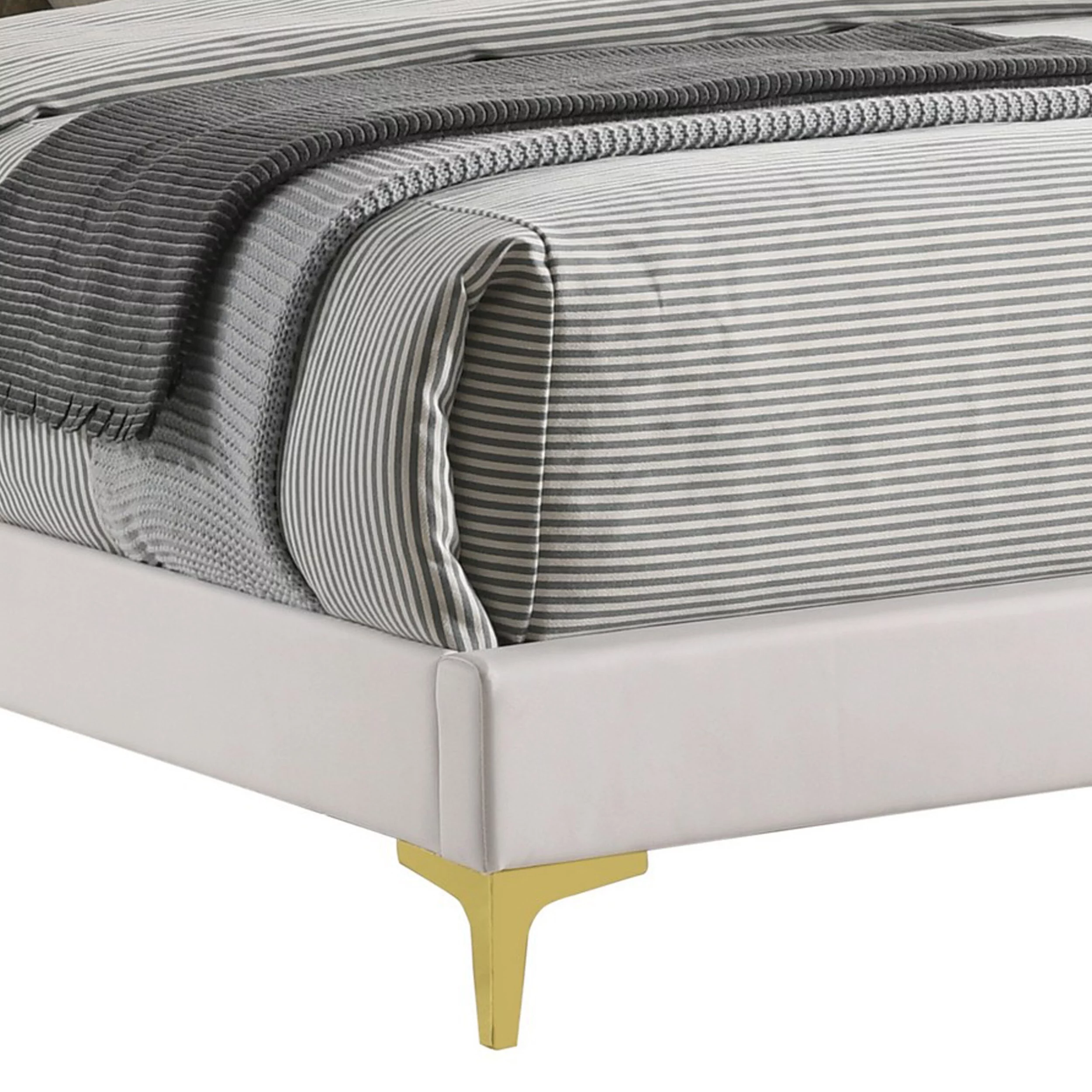 Lif Platform King Size Bed, Panel Tufted Headboard, Gold Legs, White Velvet