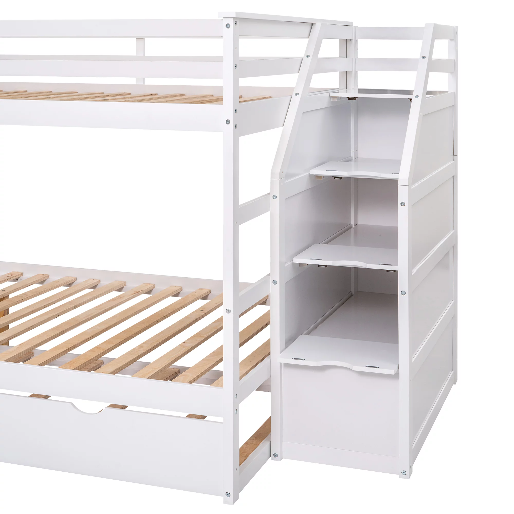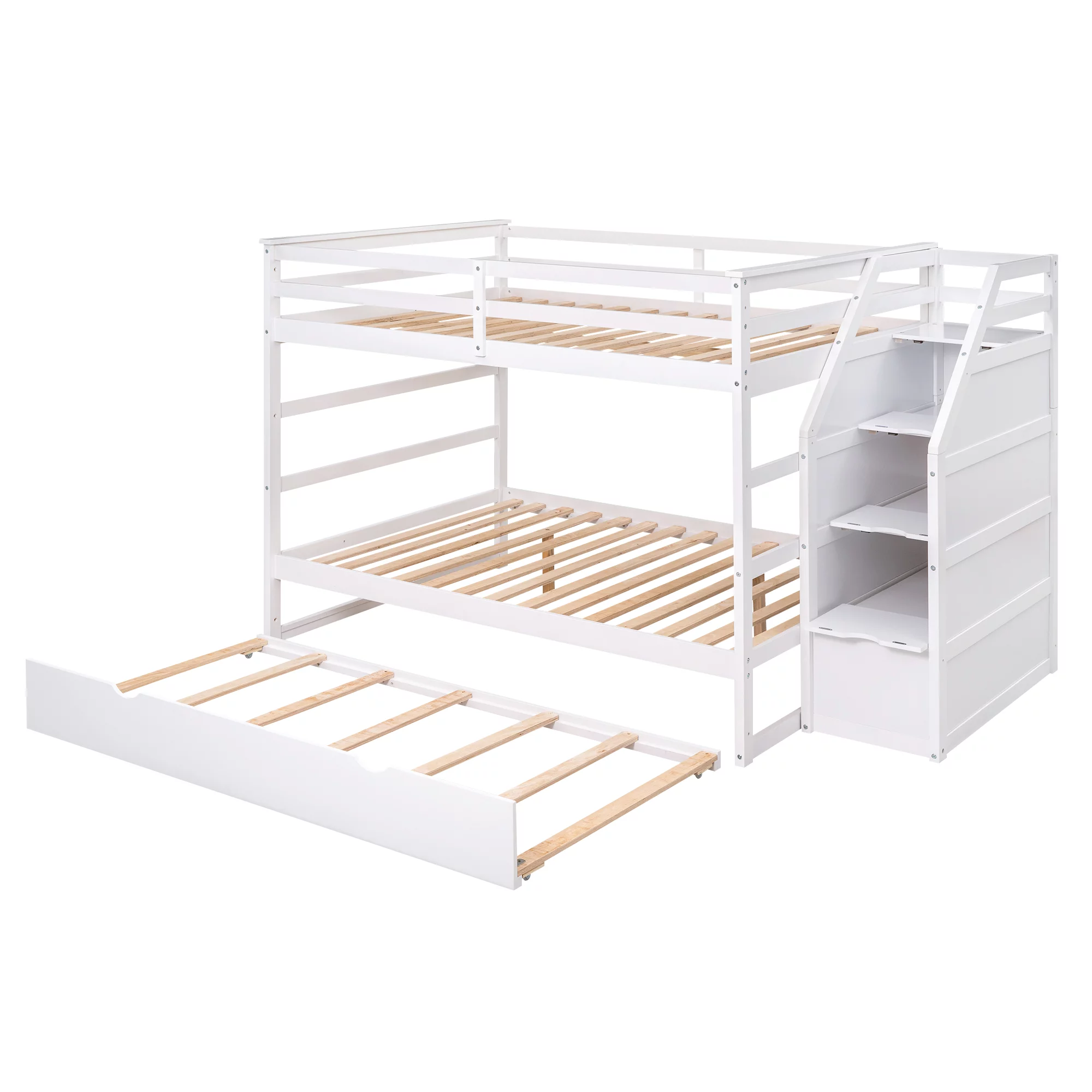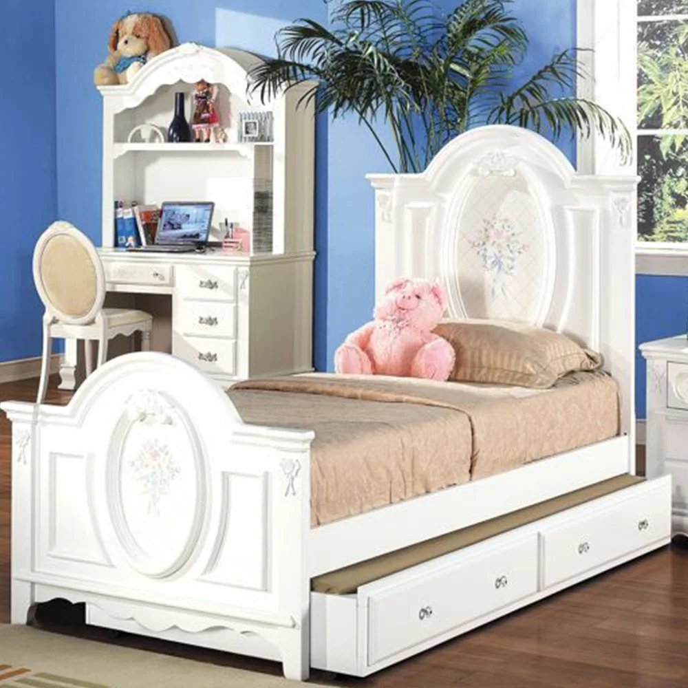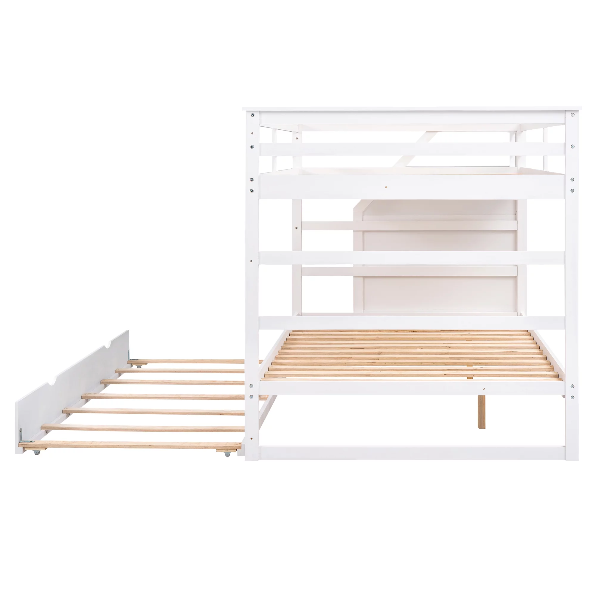 Full Size Daybed With Trundle, Wood Full Bed Frame With Fence Guardrails, No Box Spring Needed, White