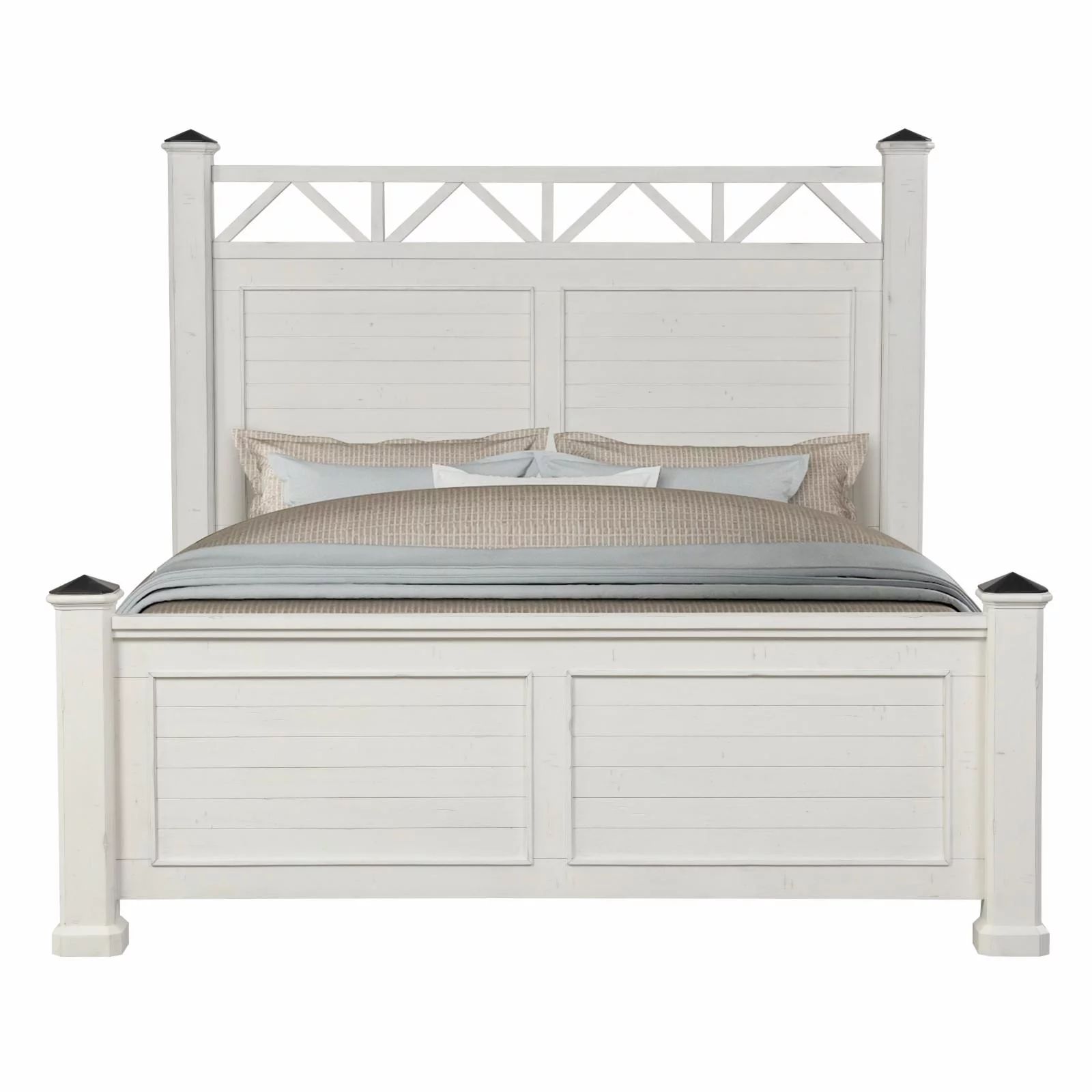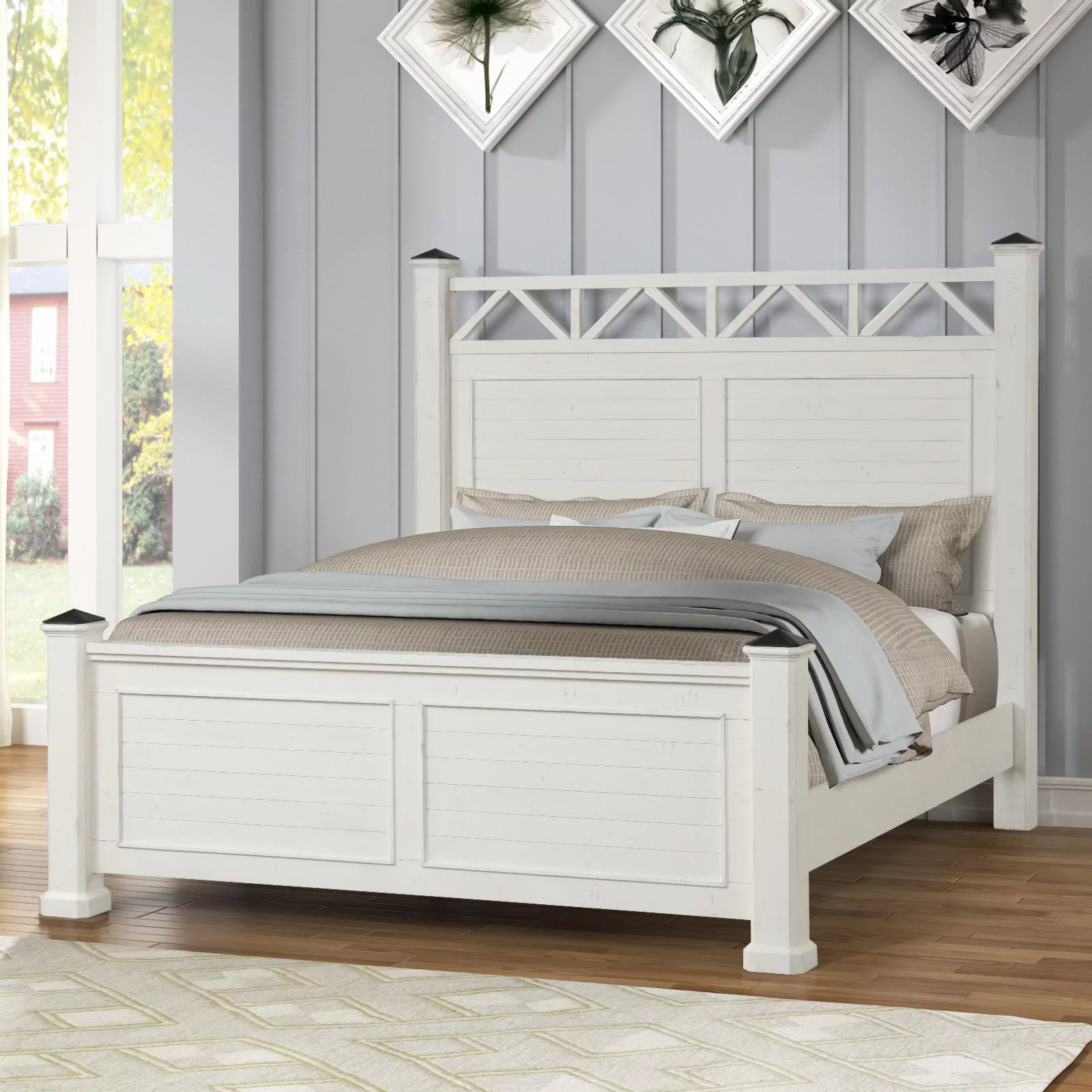 Roundhill Furniture Laria Antique White Finish Wood Panel Bed, King Size