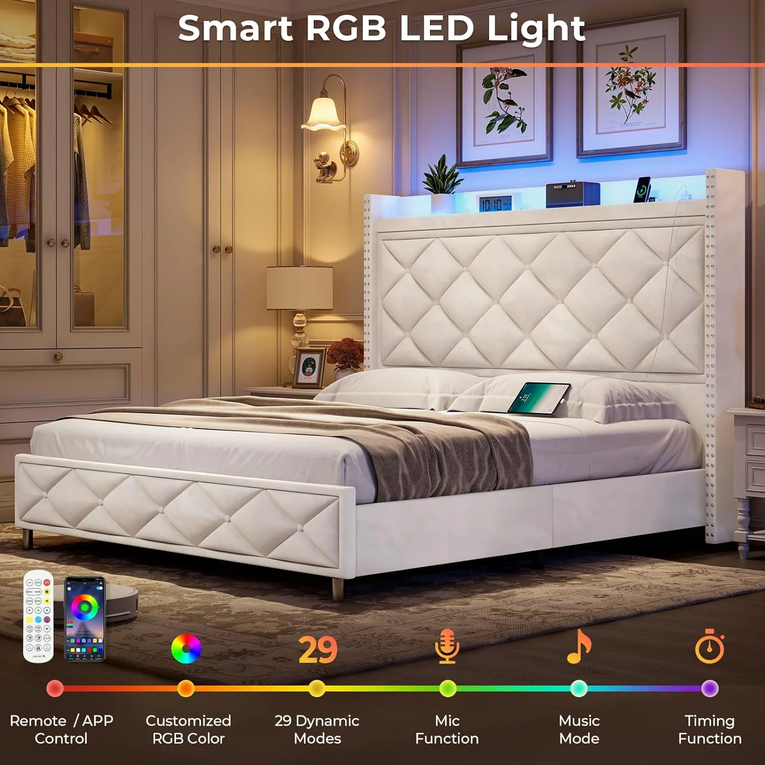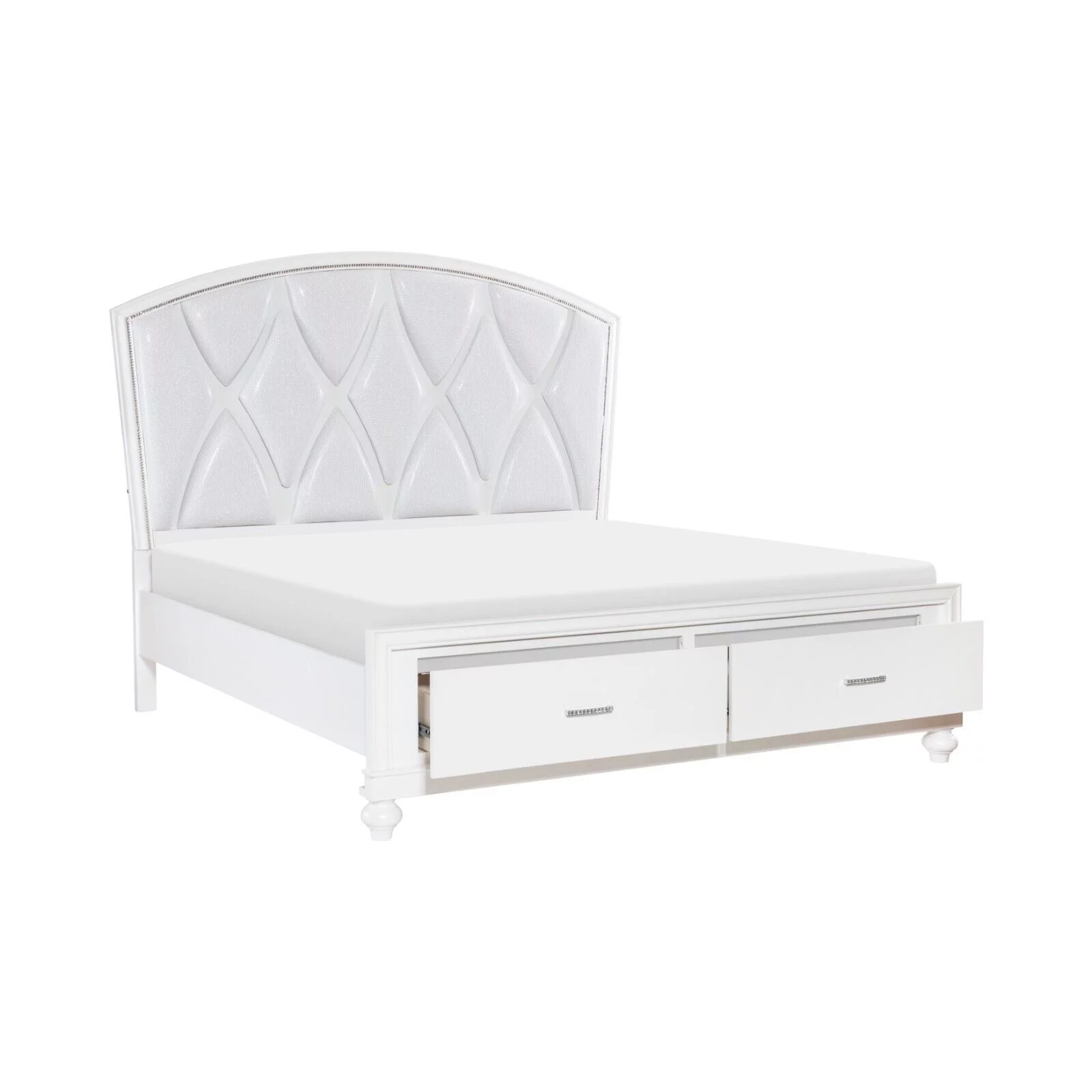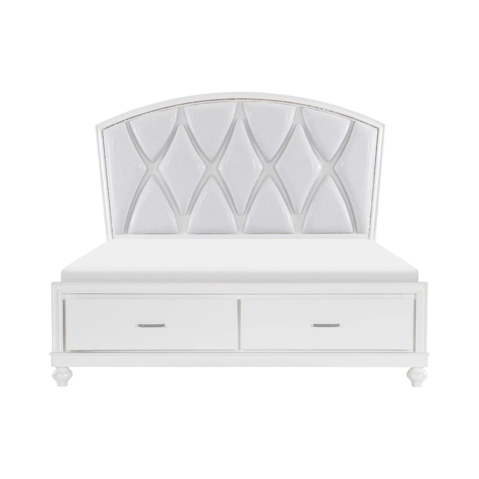 Modern Glam Cal-King Size Platform LED Light Bed Footboard Drawers White Finish Wooden Bedroom Furniture