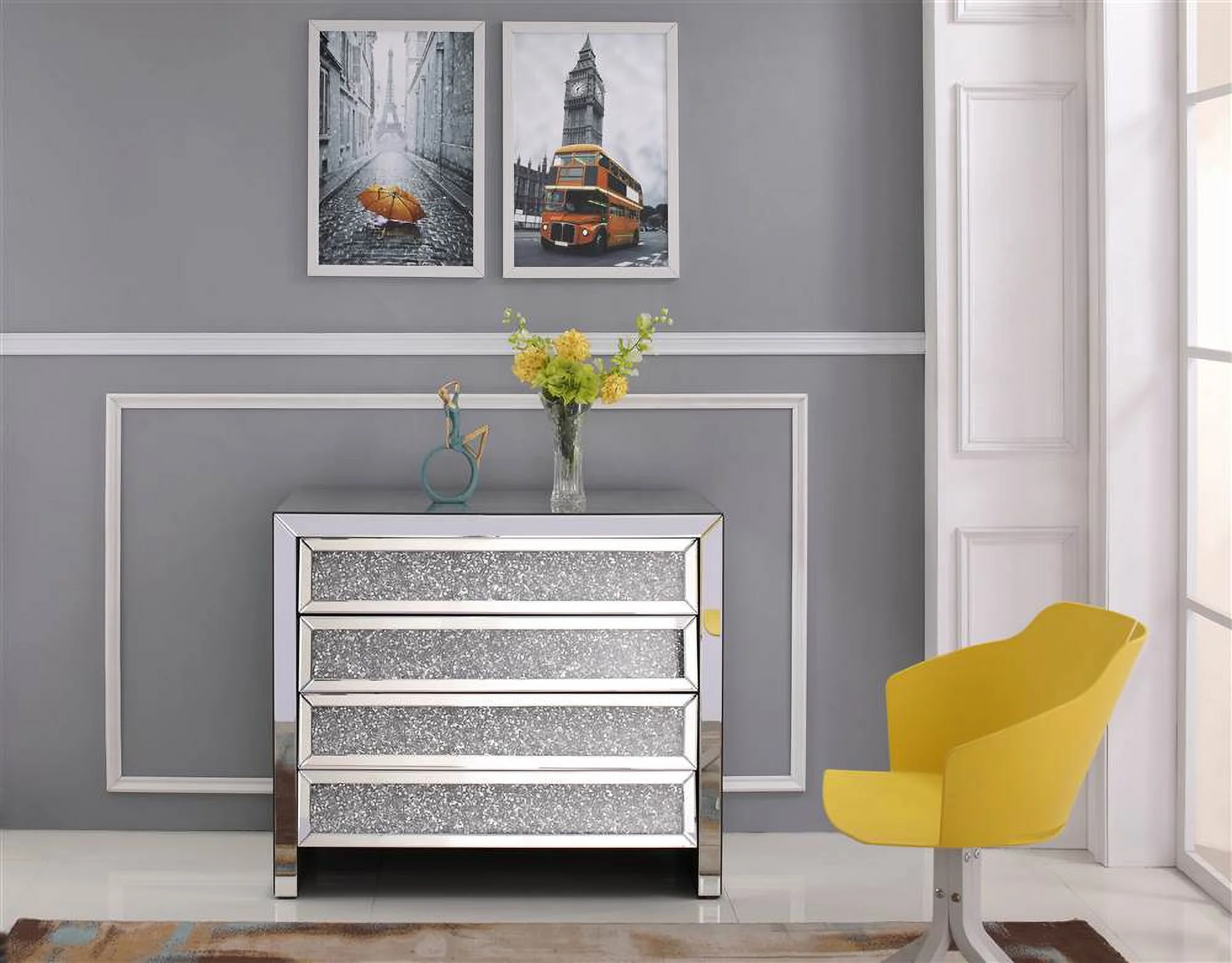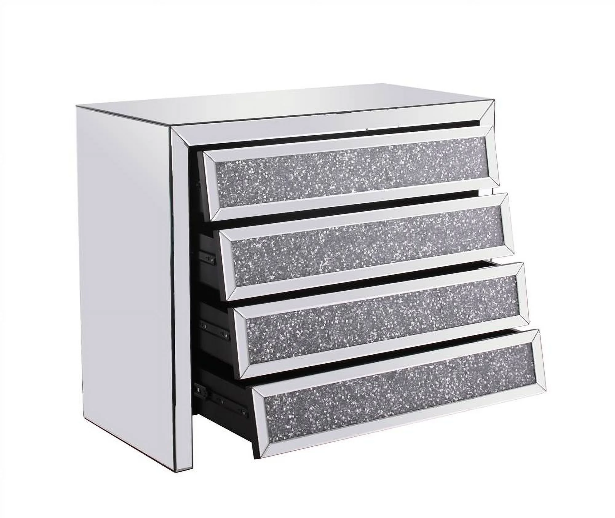Elegant Decor Modern 4 Drawer 39" Royal Cut Crystal Mirrored Accent Chest