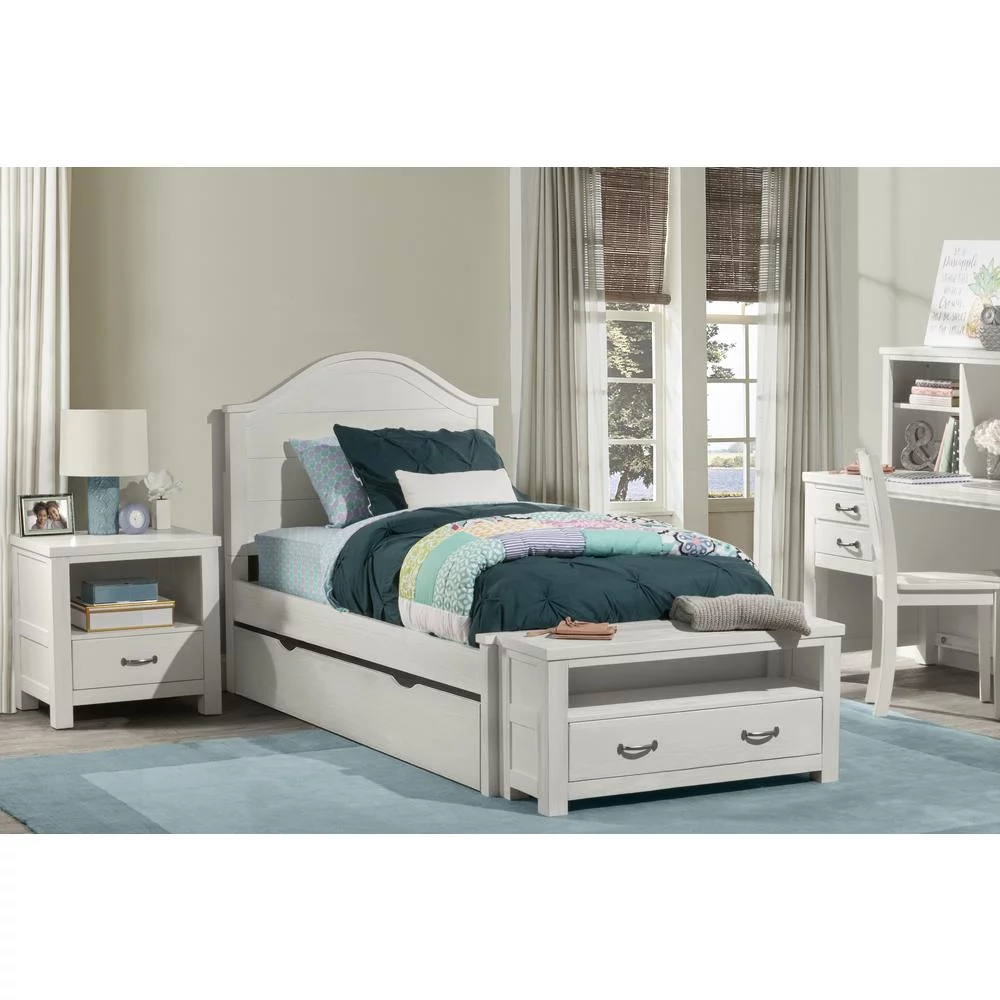 Nin King Size Sleigh Bed Minimalist Style Headboard Classic White Wood- Saltoro Sherpi