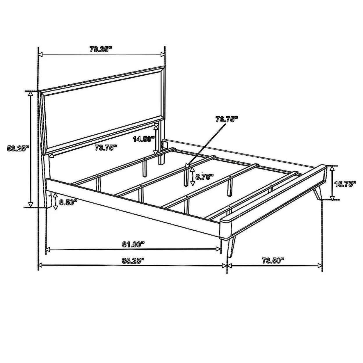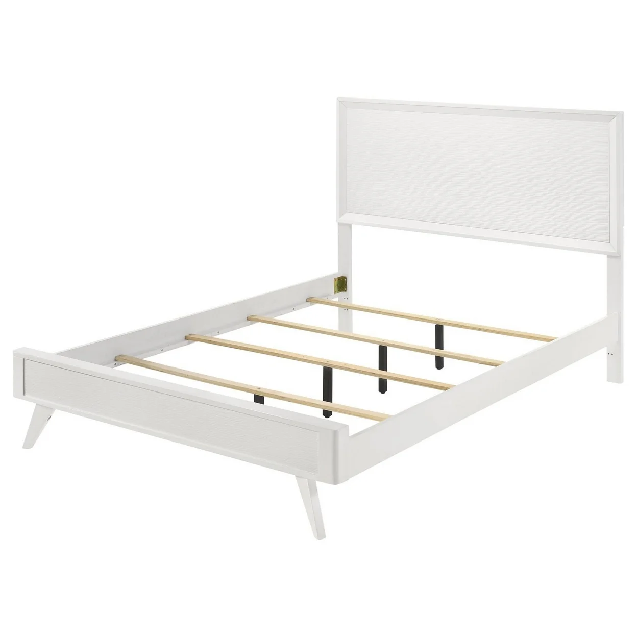 Zoe Platform King Size Bed Wave Effect Design 4 Slats Slant Legs White- Saltoro Sherpi