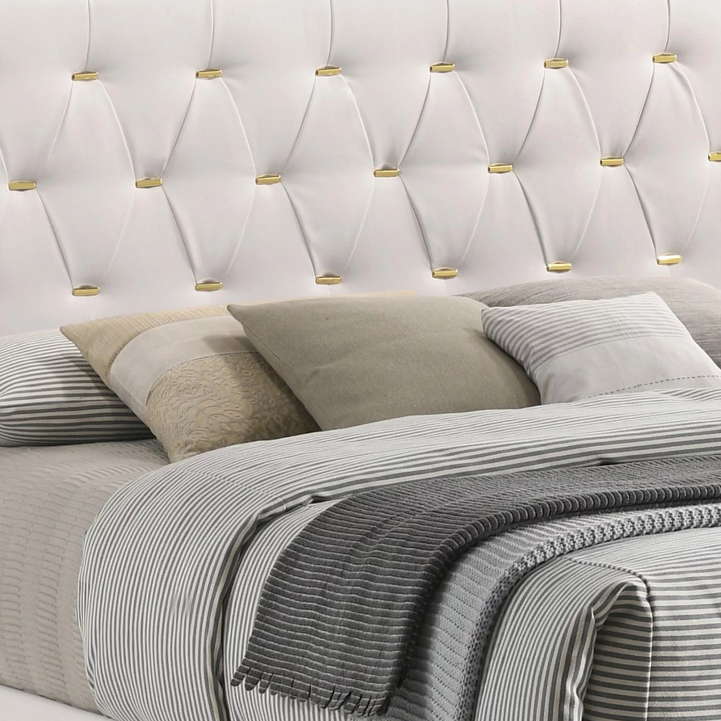 Eastern King Size Bed White Faux Leather Tufted Upholstered Headboard Platform Bed 1pc Set Contemporary Bedroom Furniture