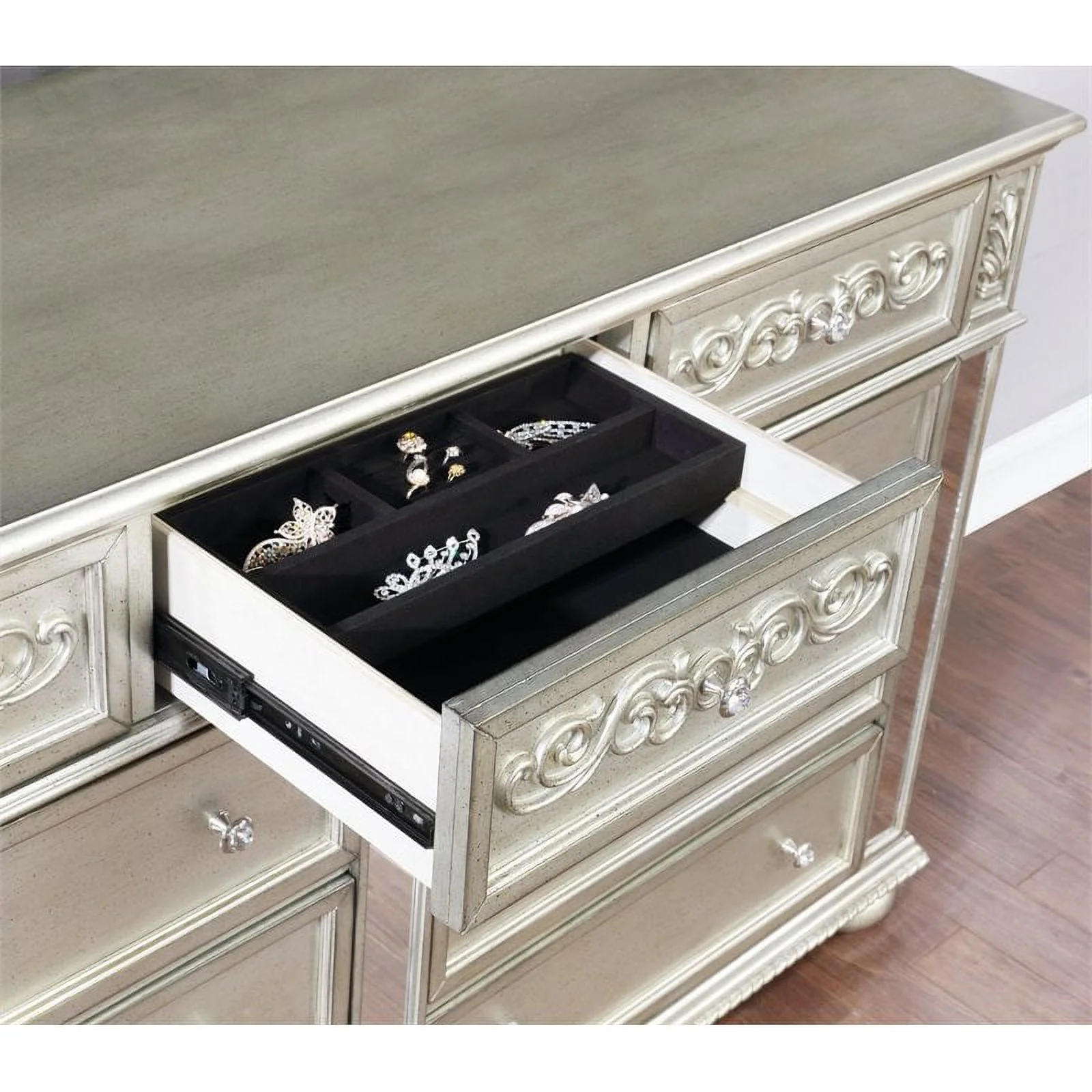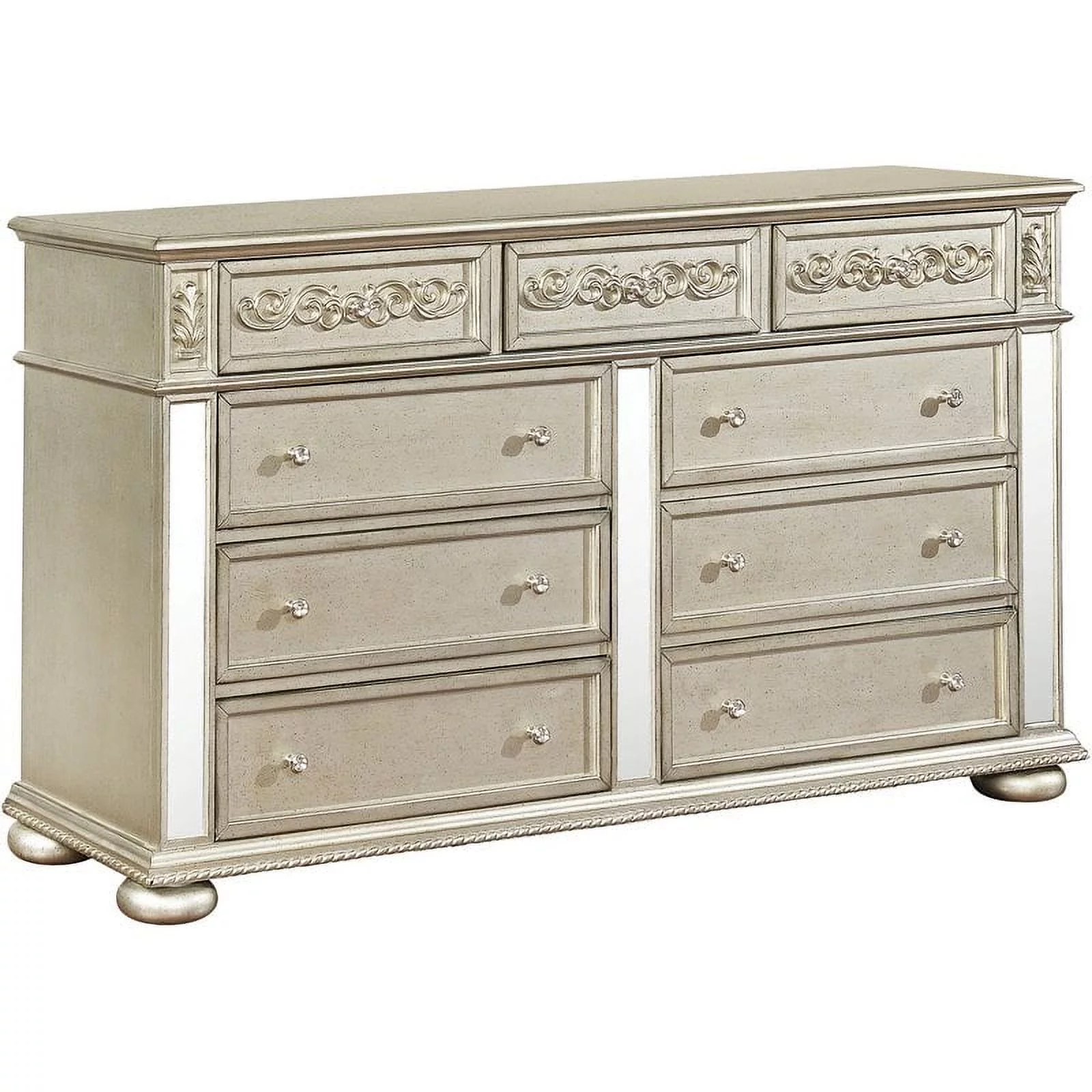 Pemberly Row Modern / Contemporary 9 Drawer Dresser in Metallic Platinum