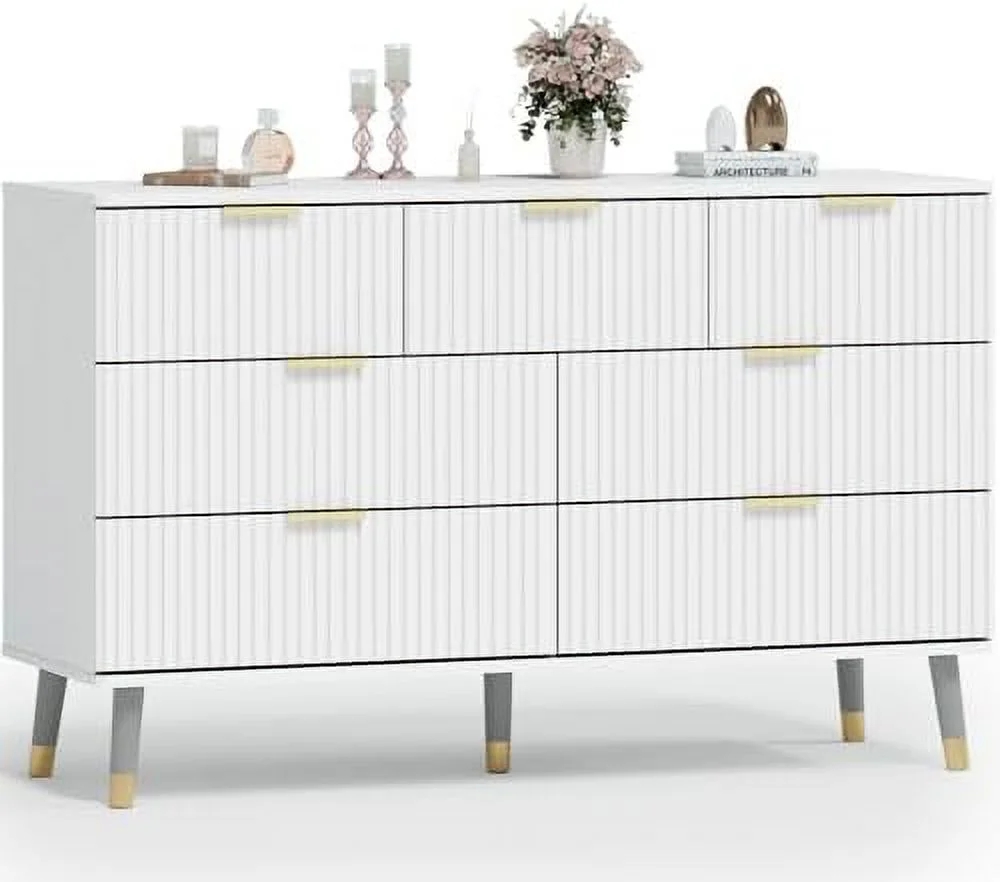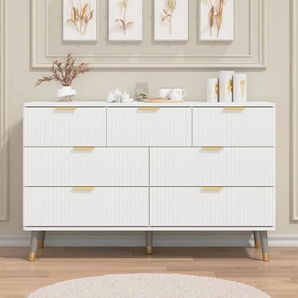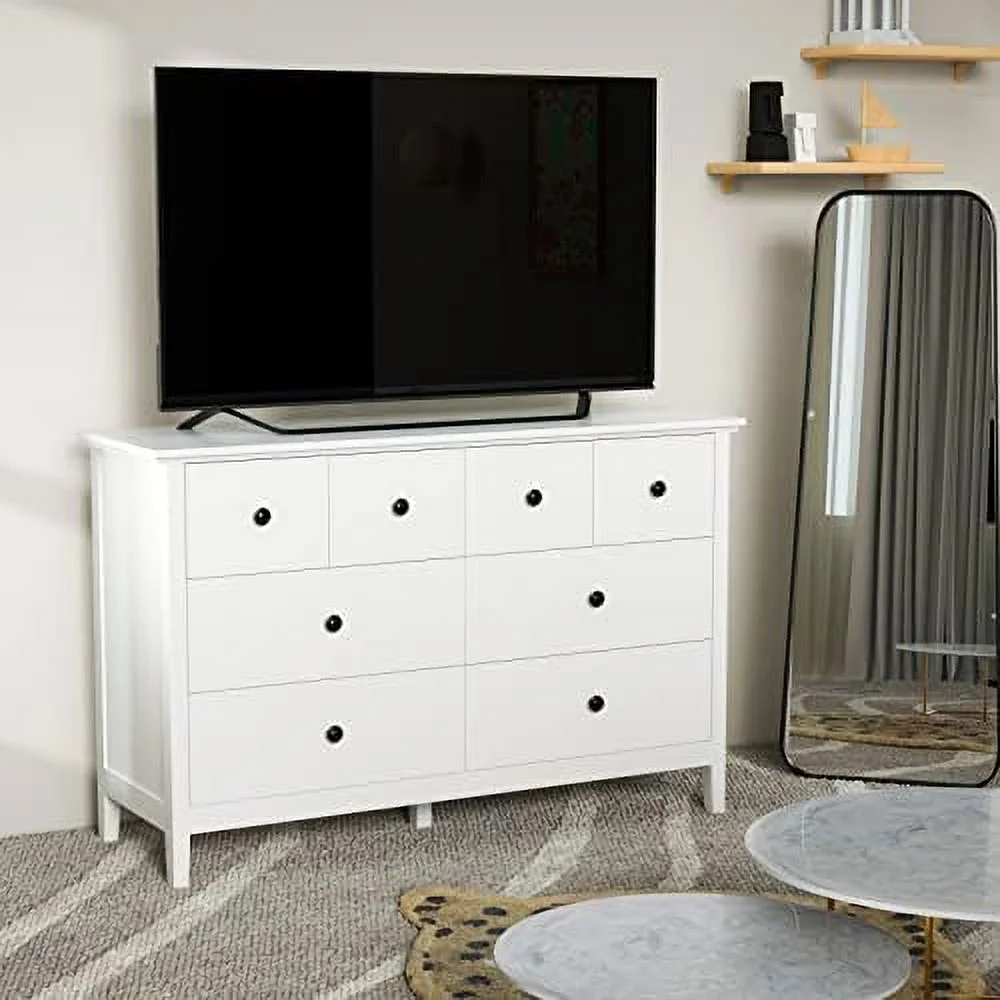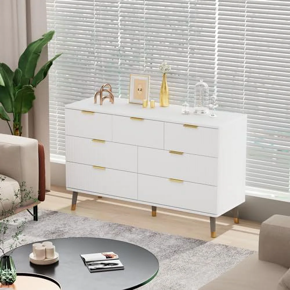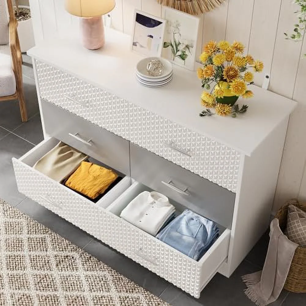White Dresser 6 Drawer Dresser White Double Chest with Deep Drawers Wide Organizer Cabinet for Living Room
