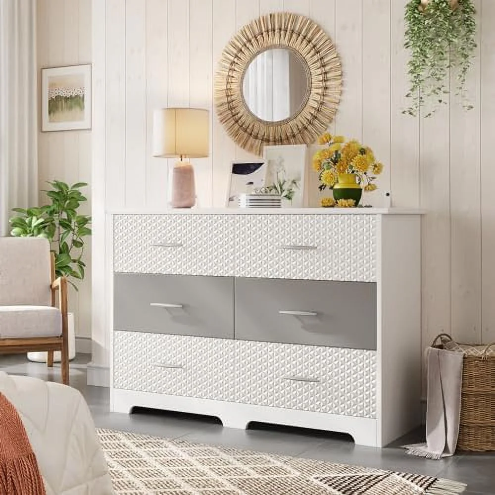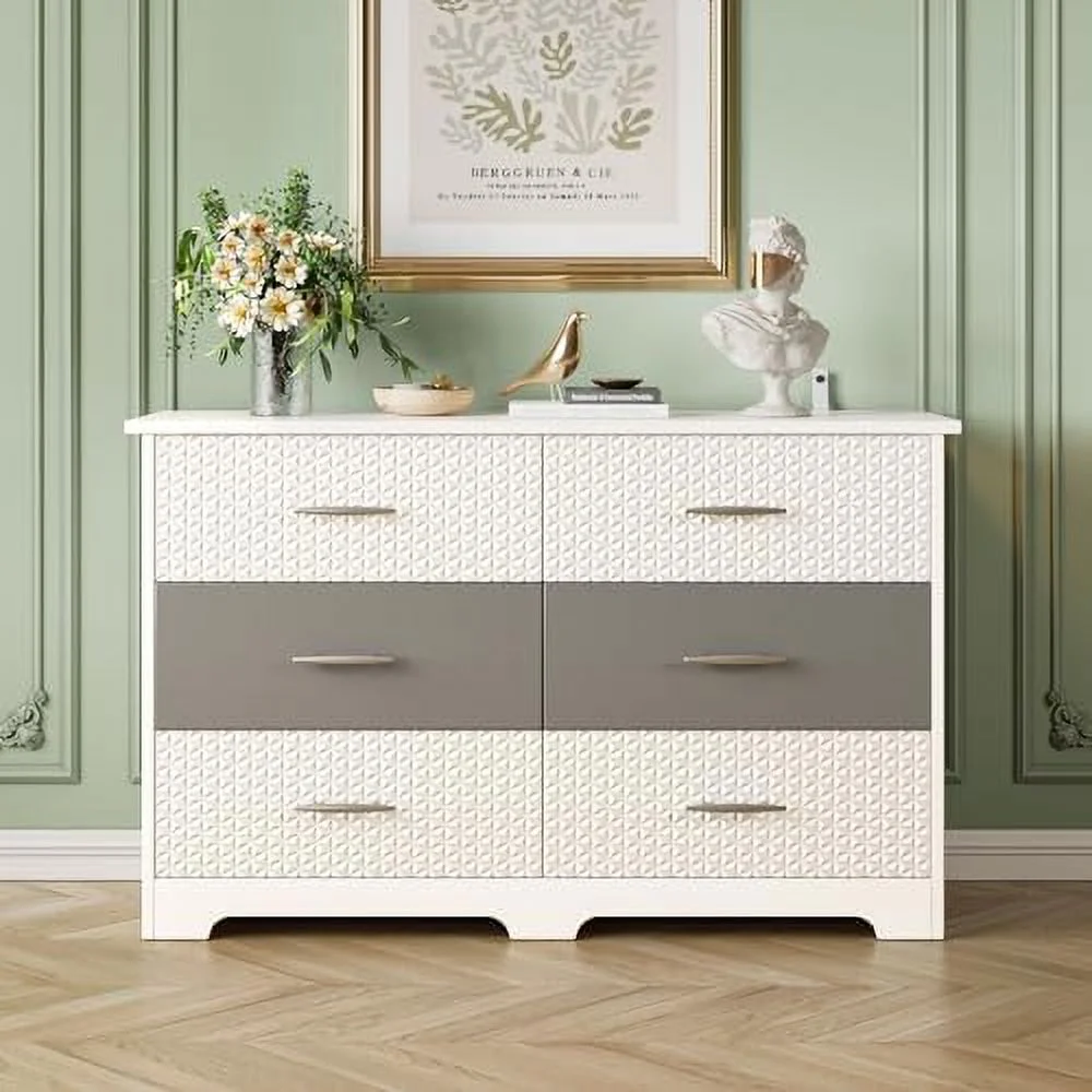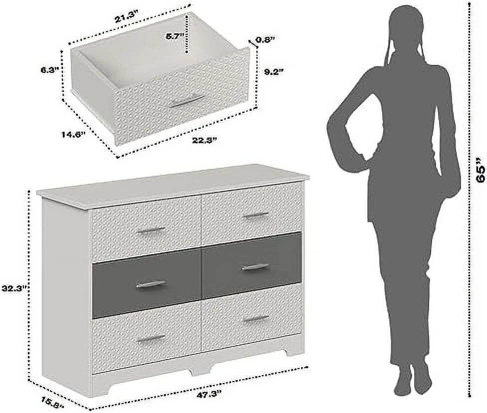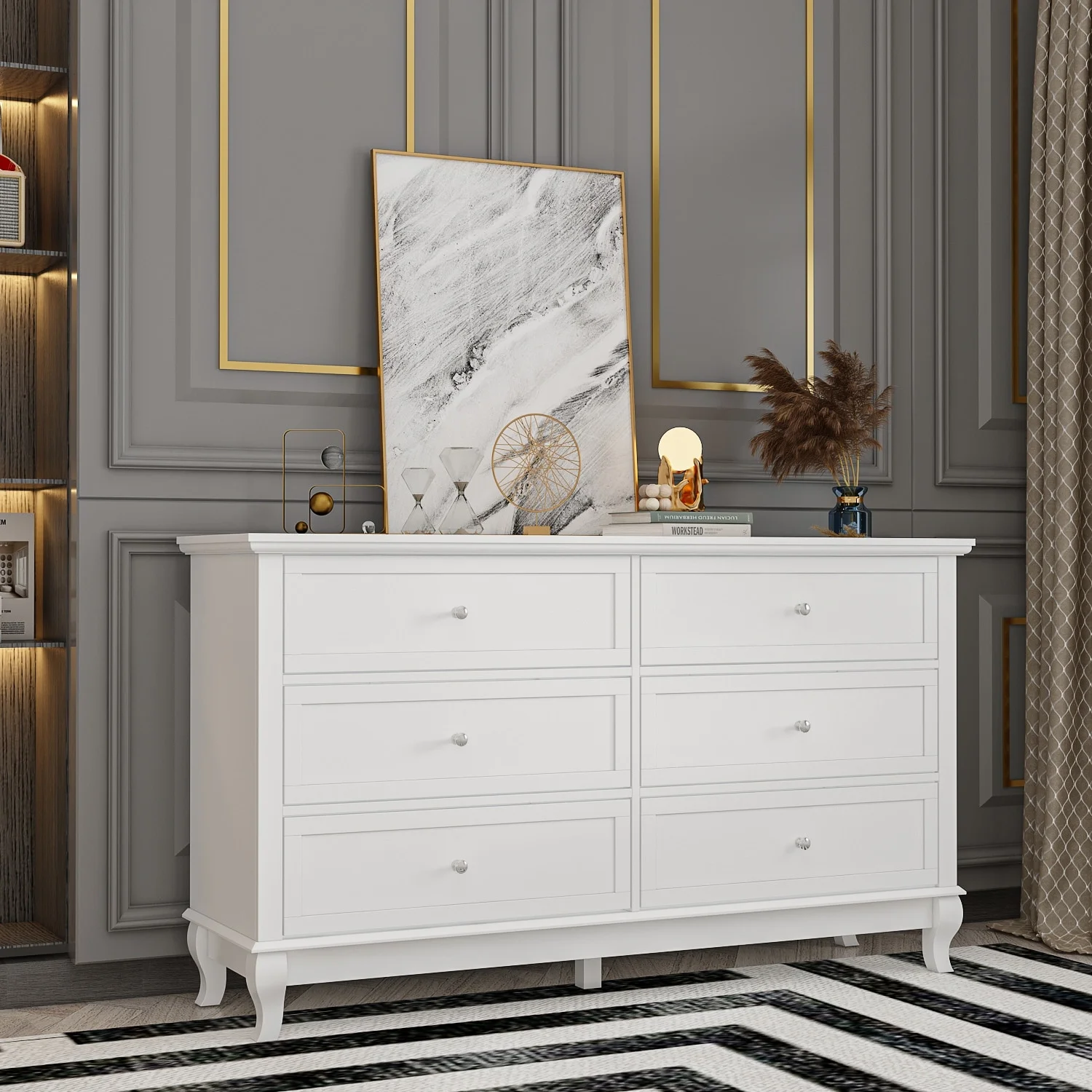 6 Drawer Double Dresser White Dresser 6 Chest of Drawers with Deep Drawers Wide Organizer Cabinet for Living Room