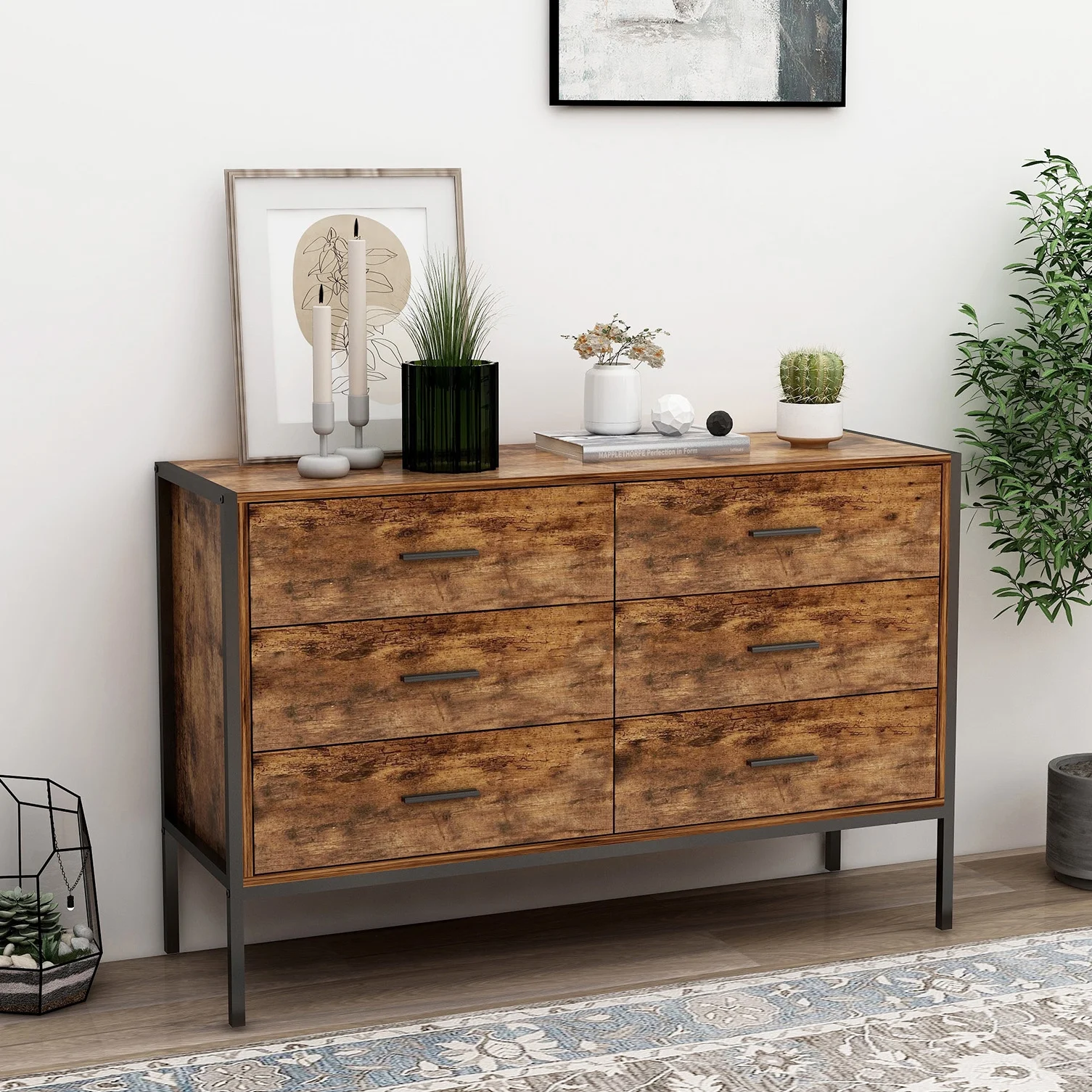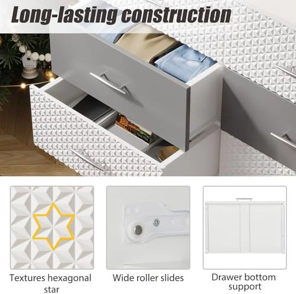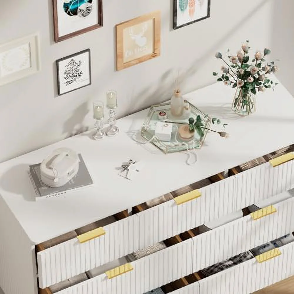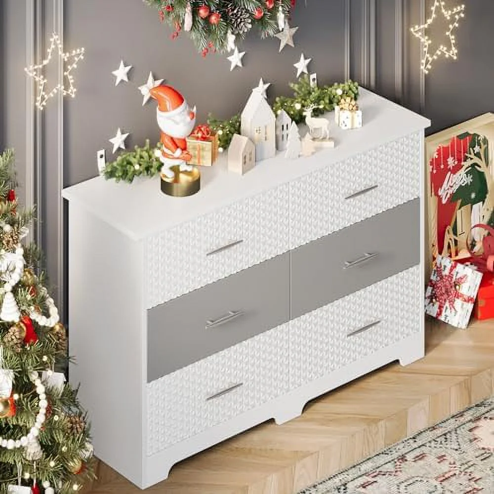 6 Drawer Double Dresser White Dresser 6 Chest of Drawers with Deep Drawers Wide Organizer Cabinet for Living Room