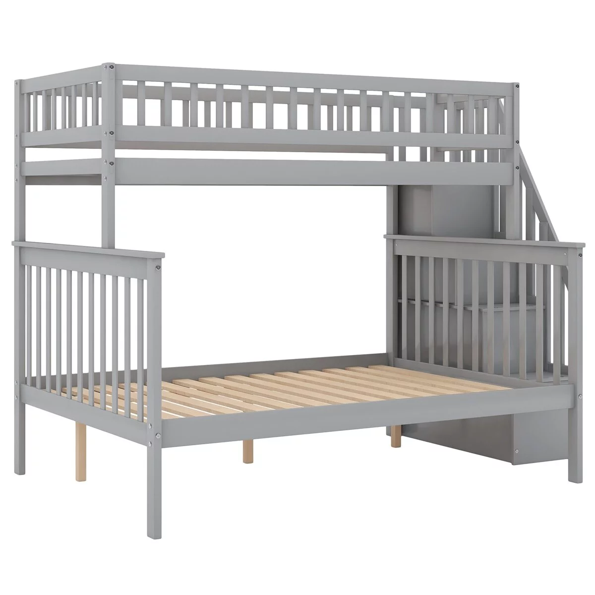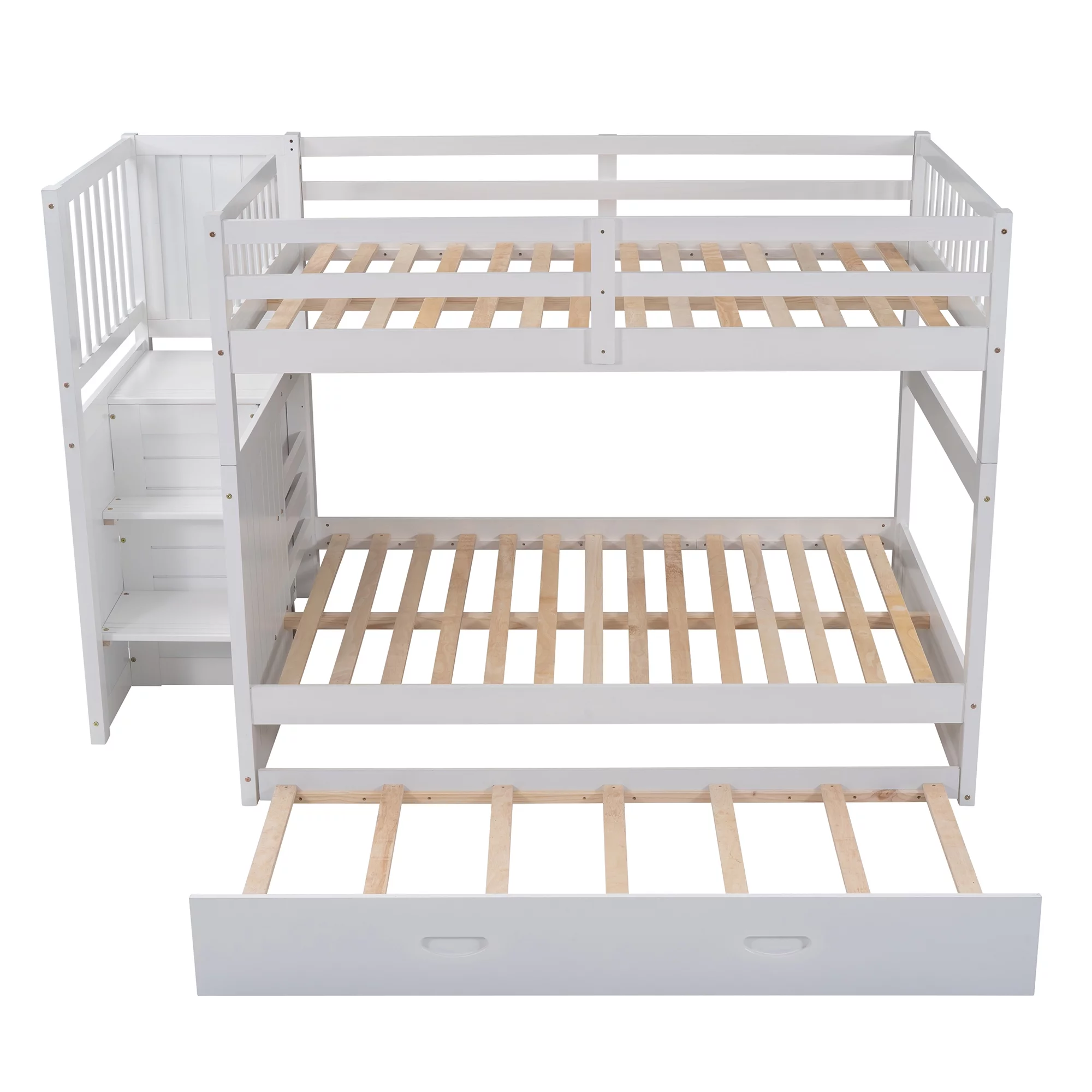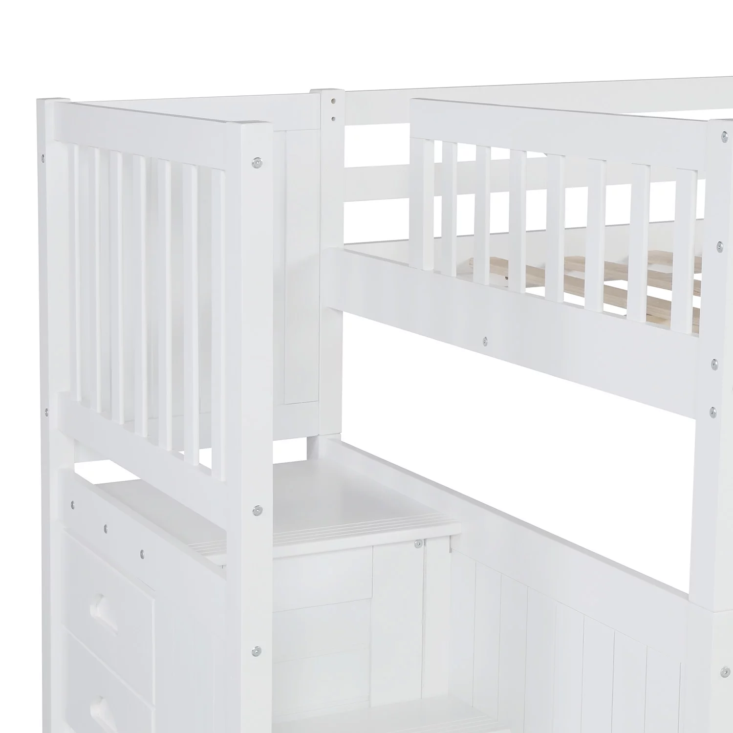 Churanty Full over Full Bunk Bed with Stairs and Storage Wood Bunk Bed frame with Trundle and Drawers,White
