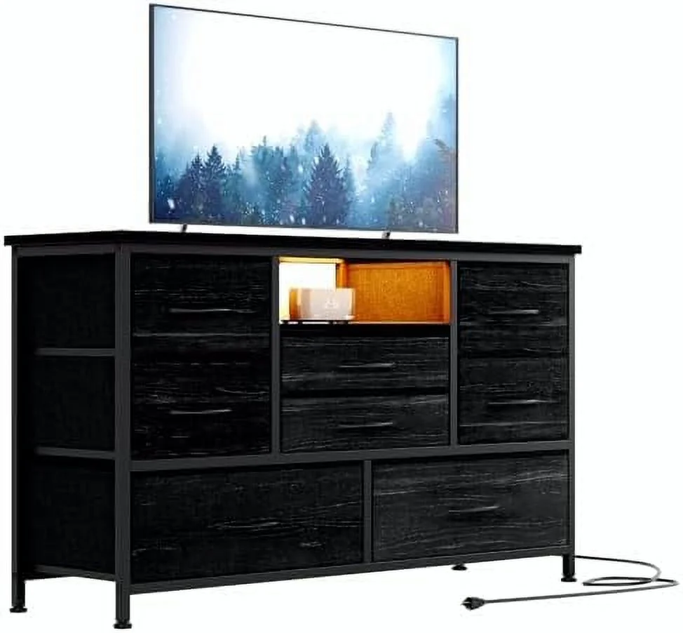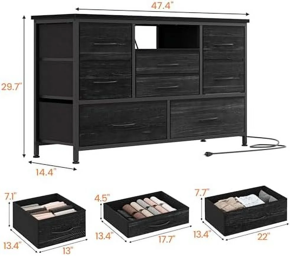 Dresser for Bedroom Black Dresser with Deep Drawers 6 Drawer Double Dresser with Black Knobs and Solid Wood Legs.