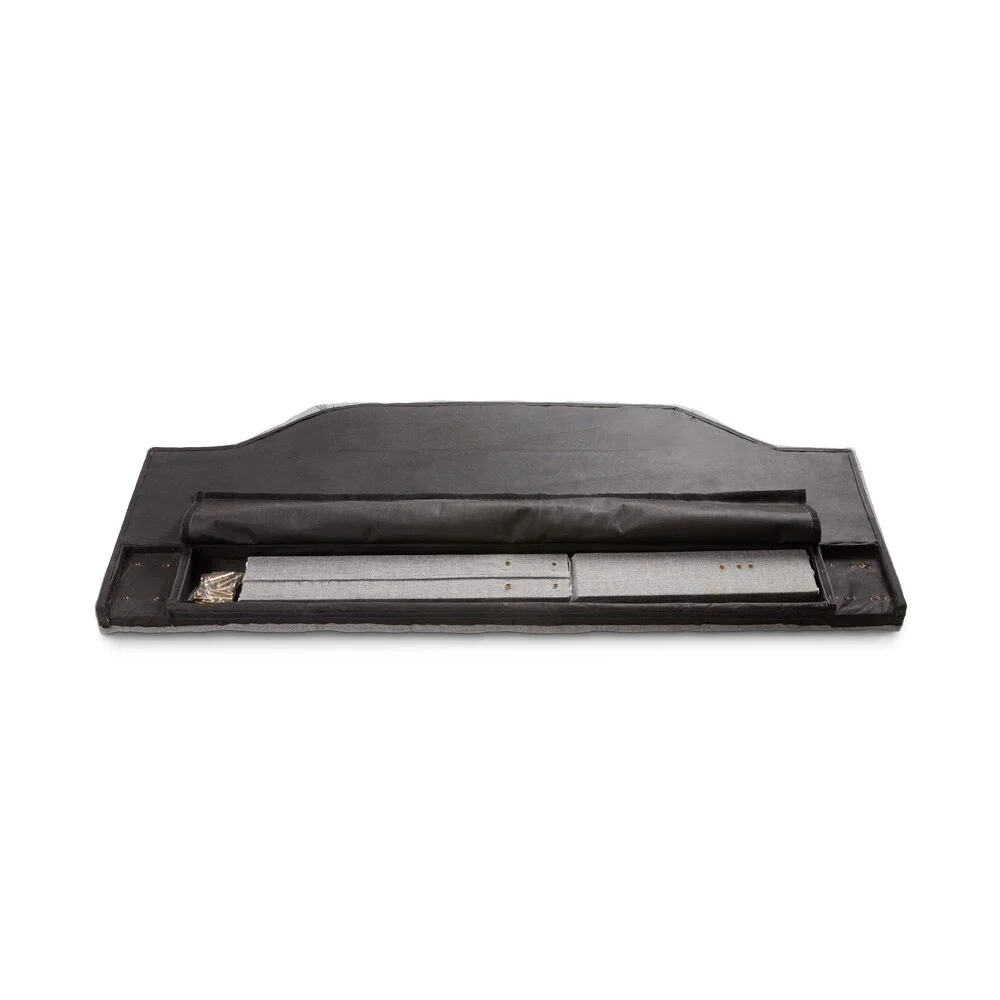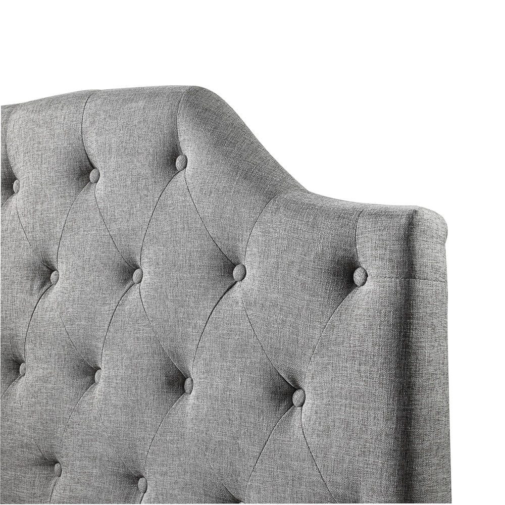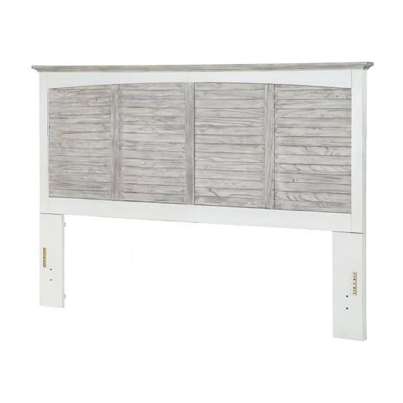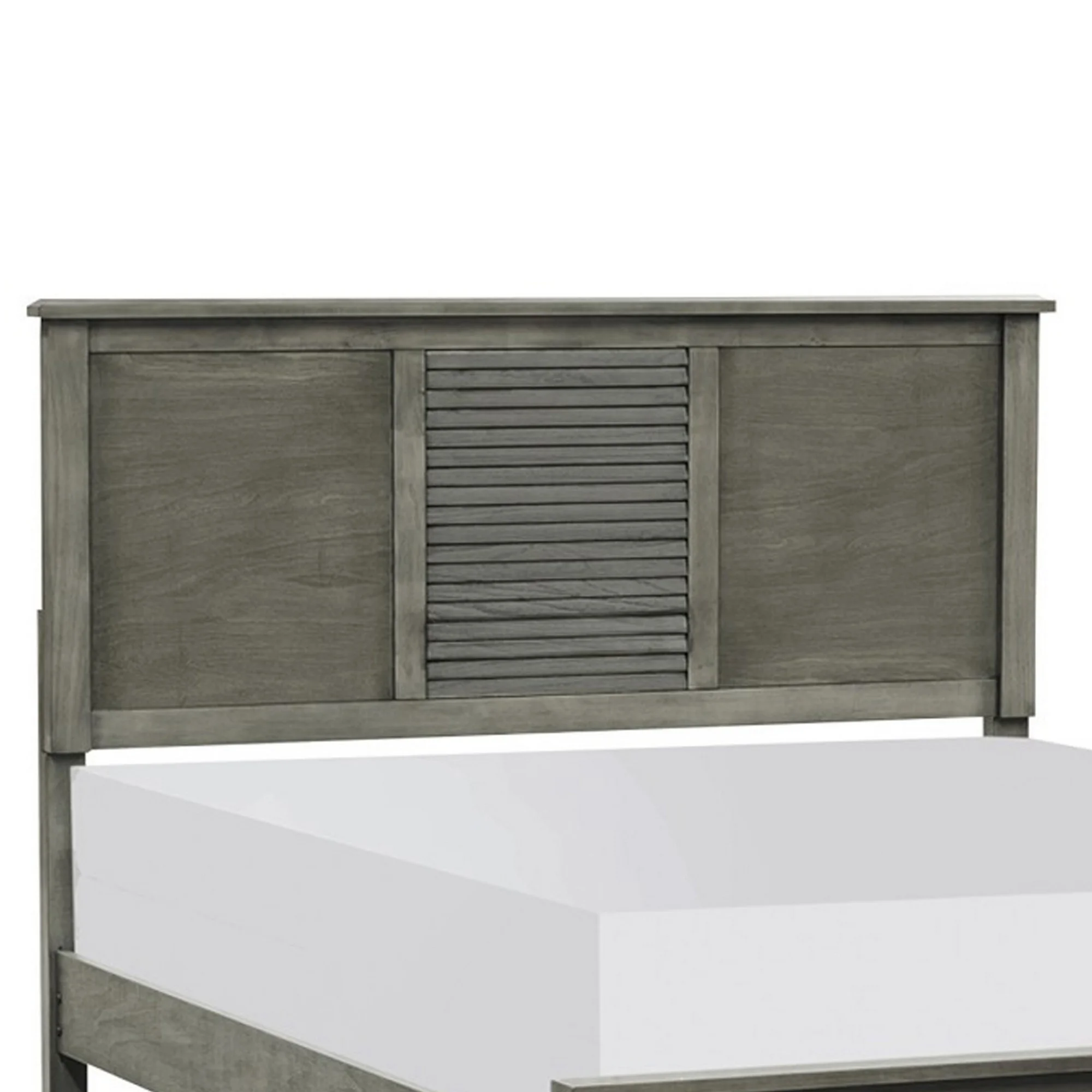 Transitional Queen Size Bed, Headboard, Louvered Panel Design, Gray Finish- Saltoro Sherpi