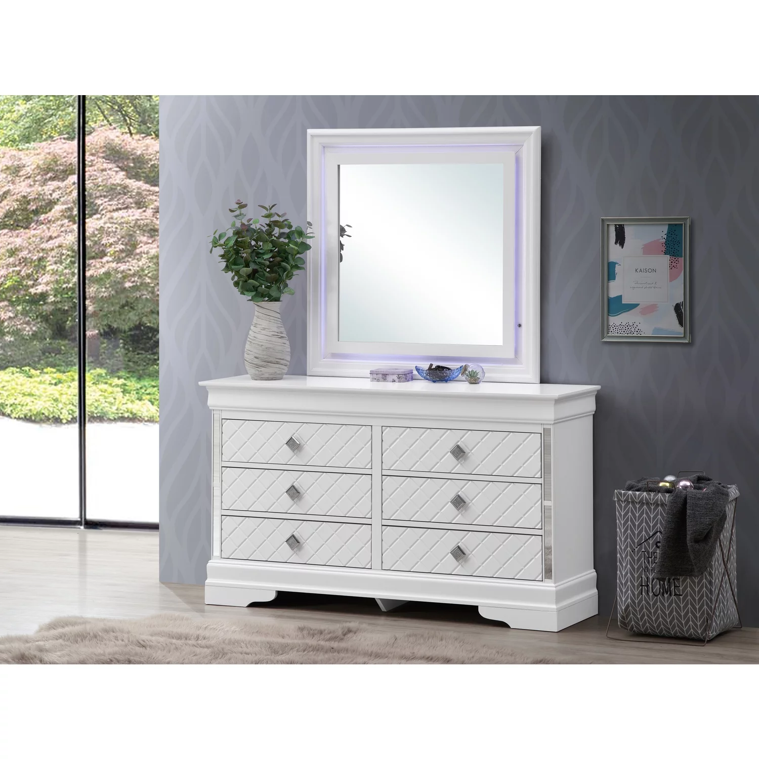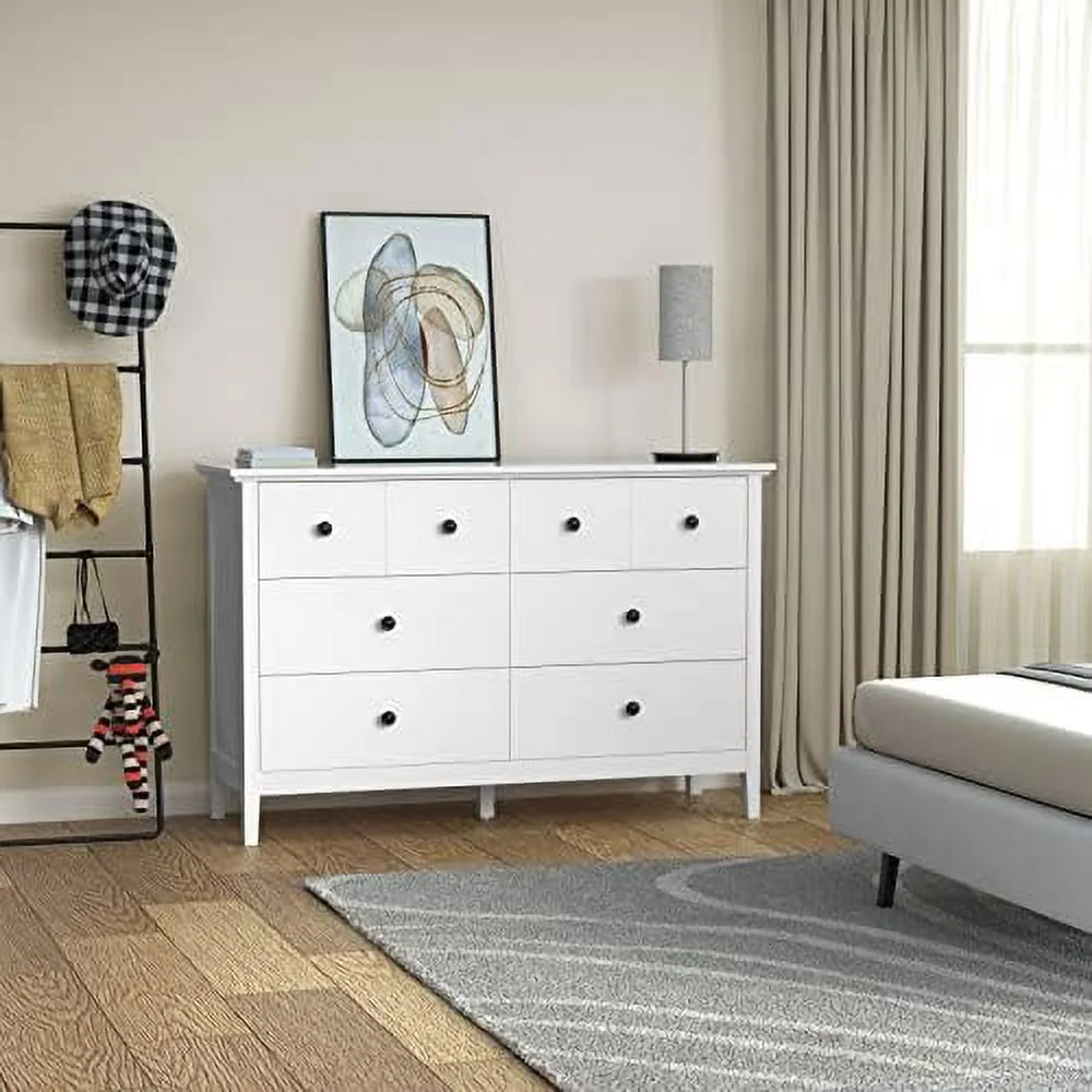 Lacquer Dresser for Bedroom with Deep Drawers Wooden 6 Drawers Chest White