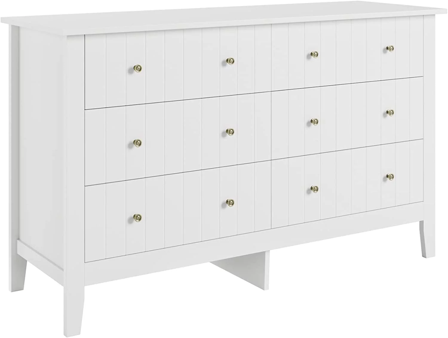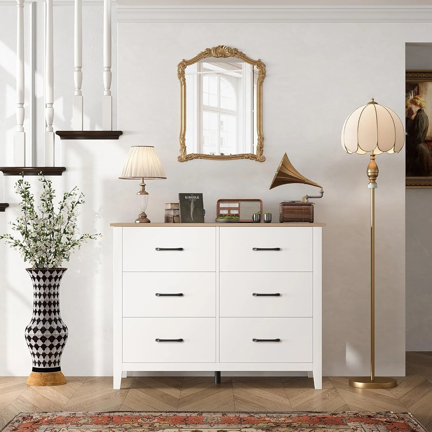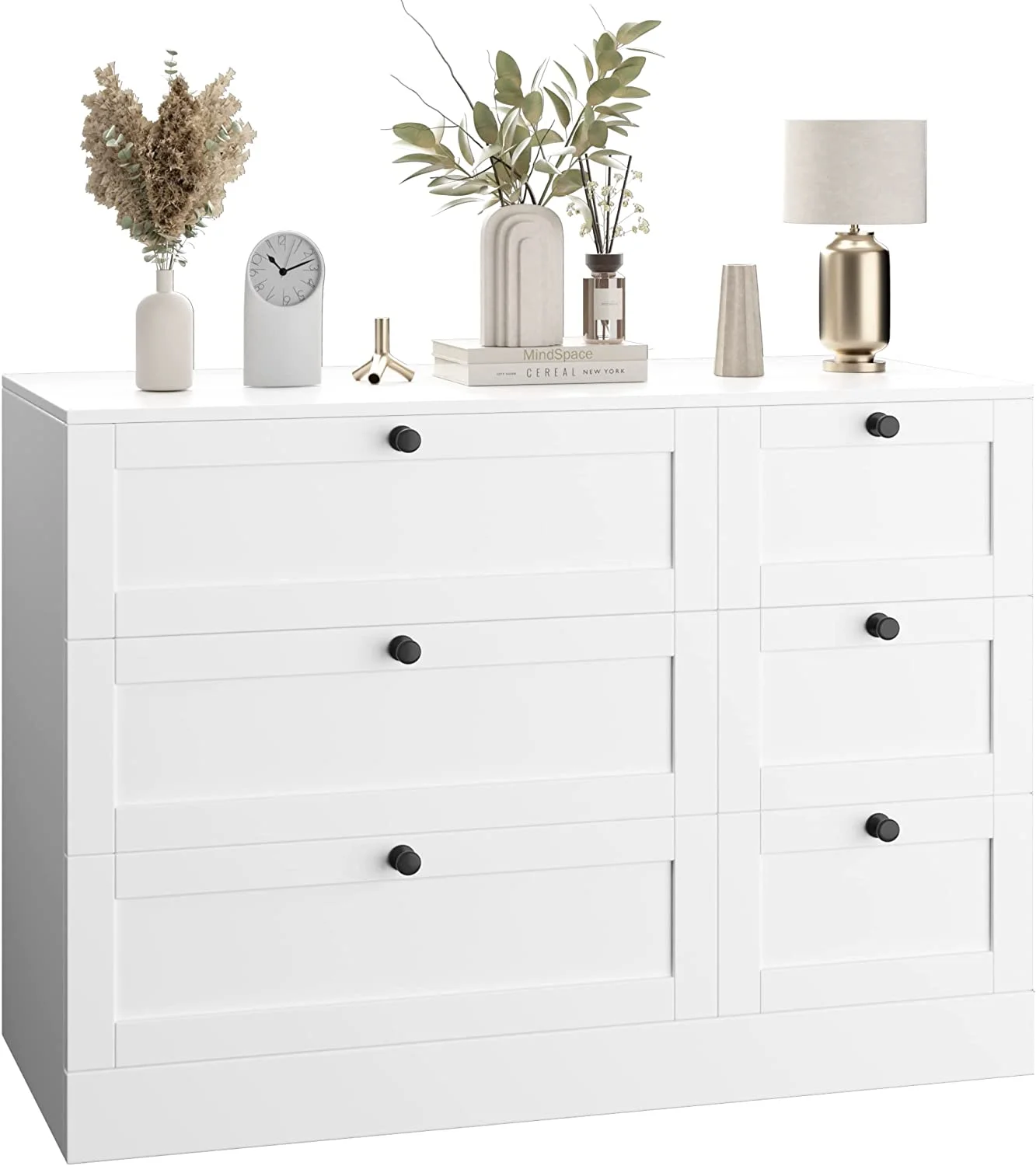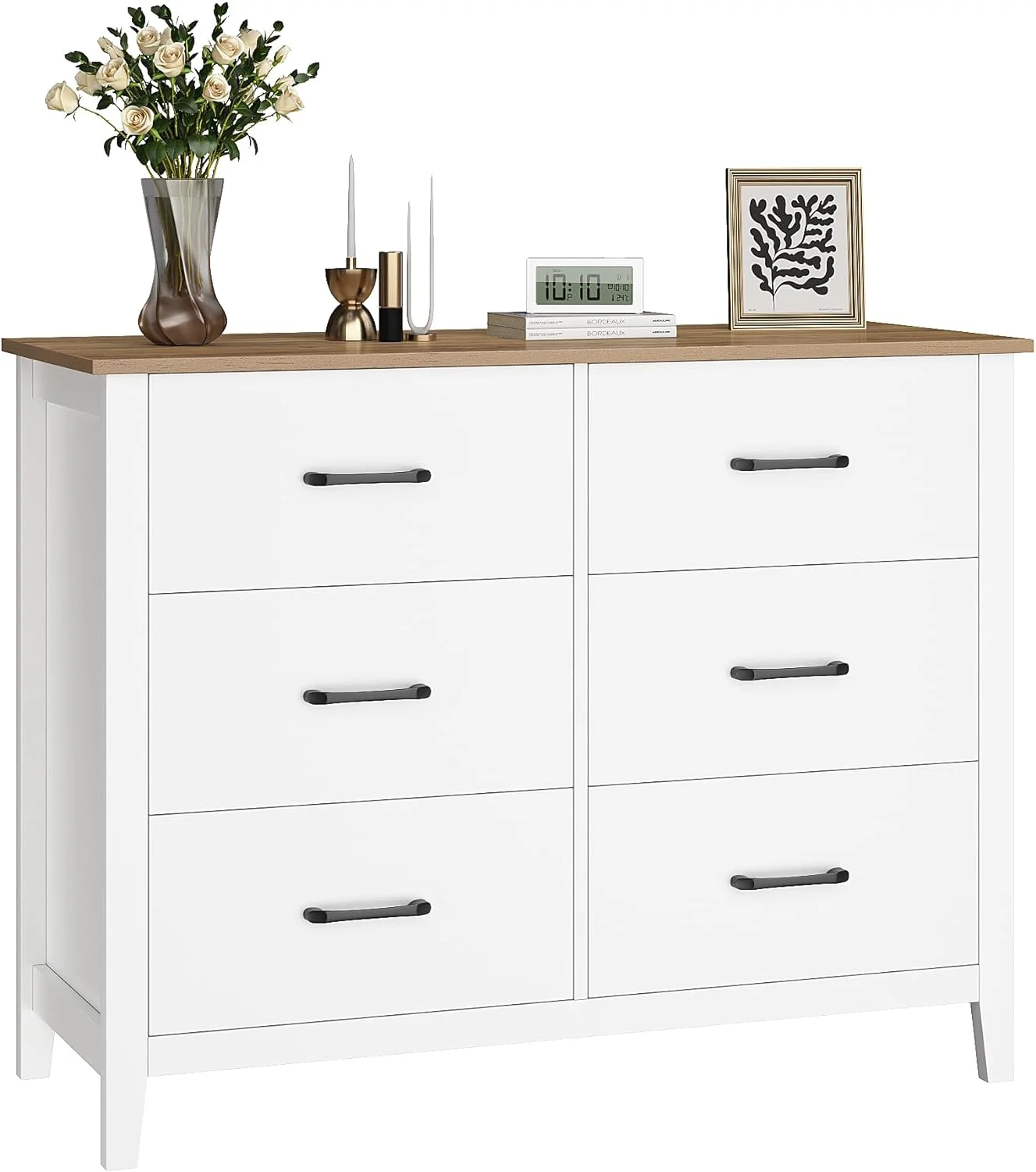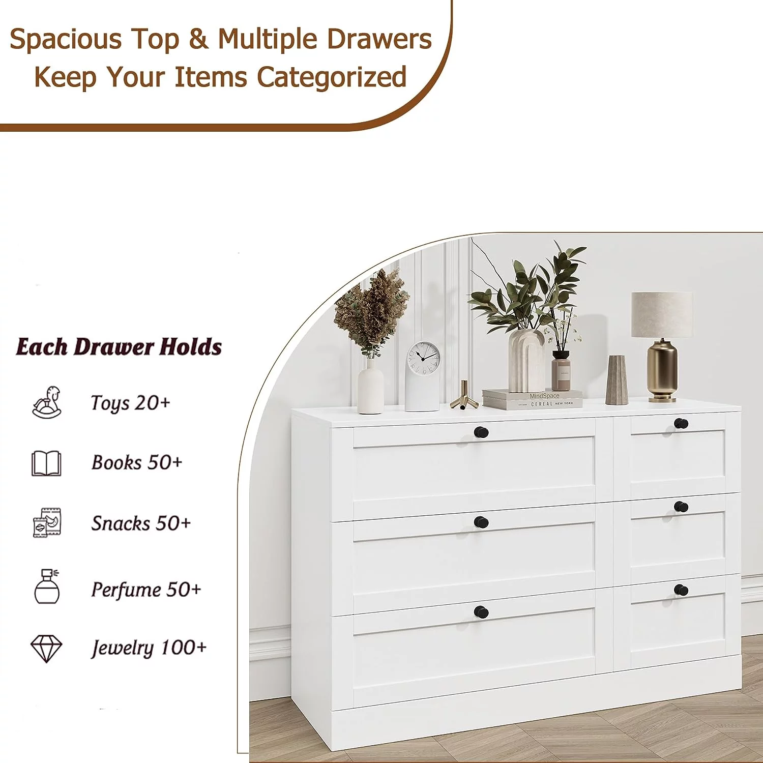 6-Drawer Dresser for Bedroom, with Deep Drawers and Metal Handles, Wood Dressers with Firm Legs, for Living Room, White