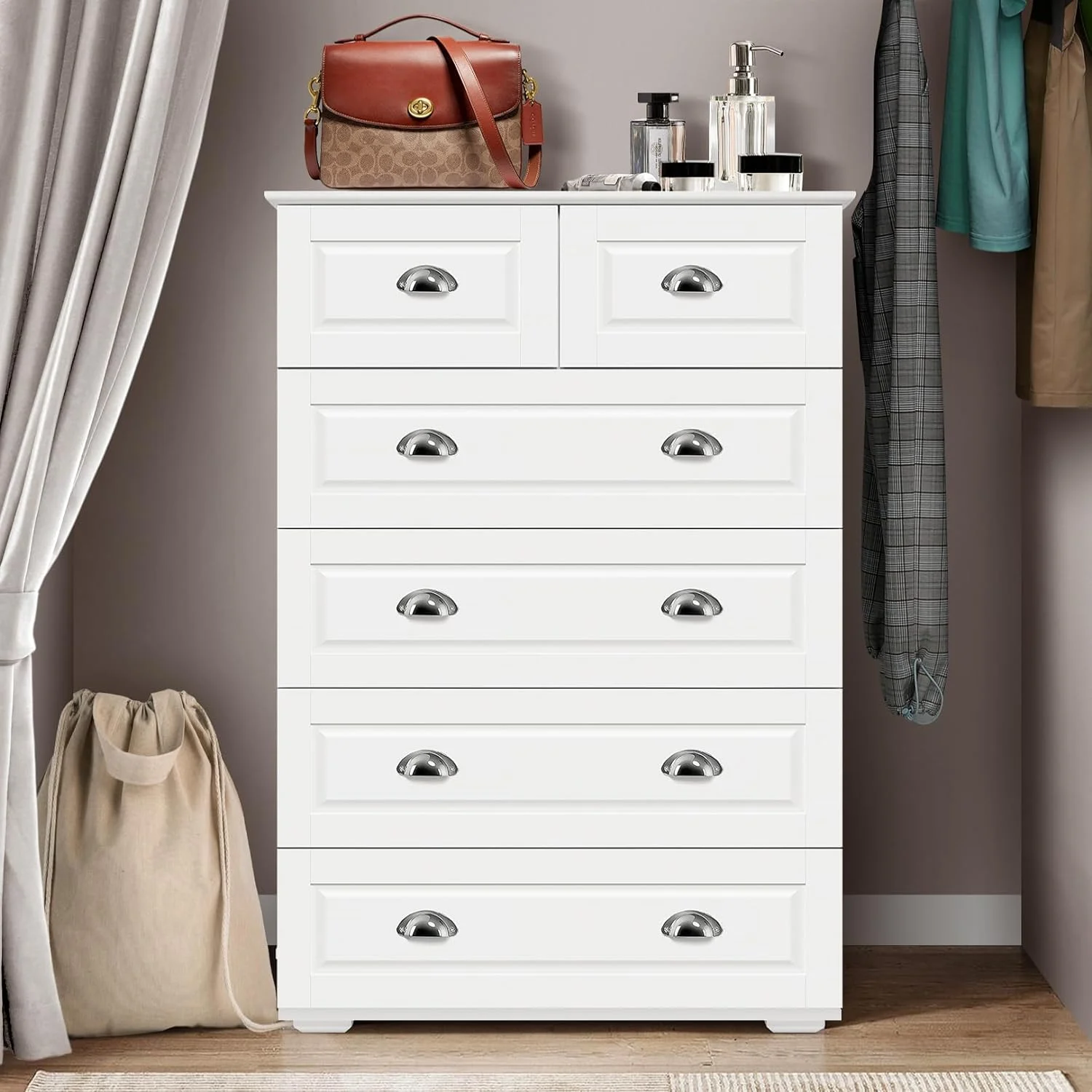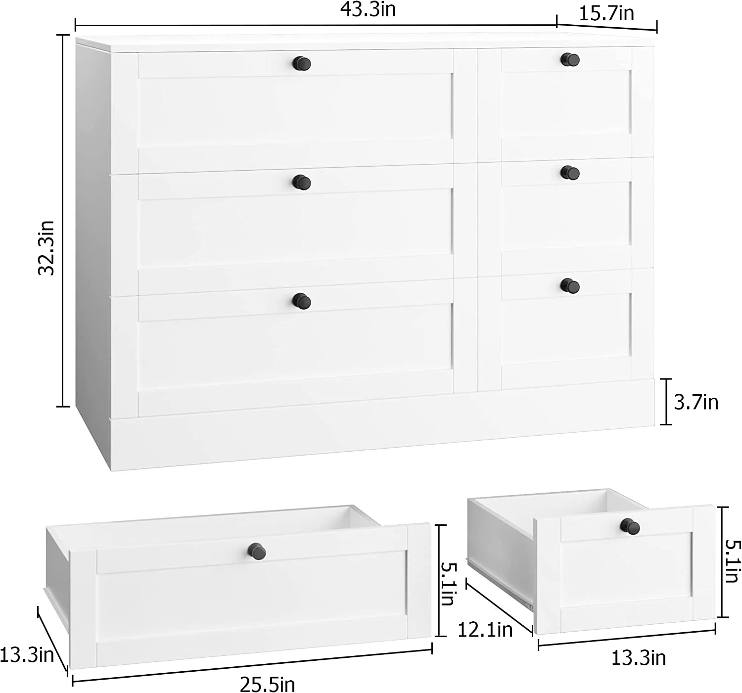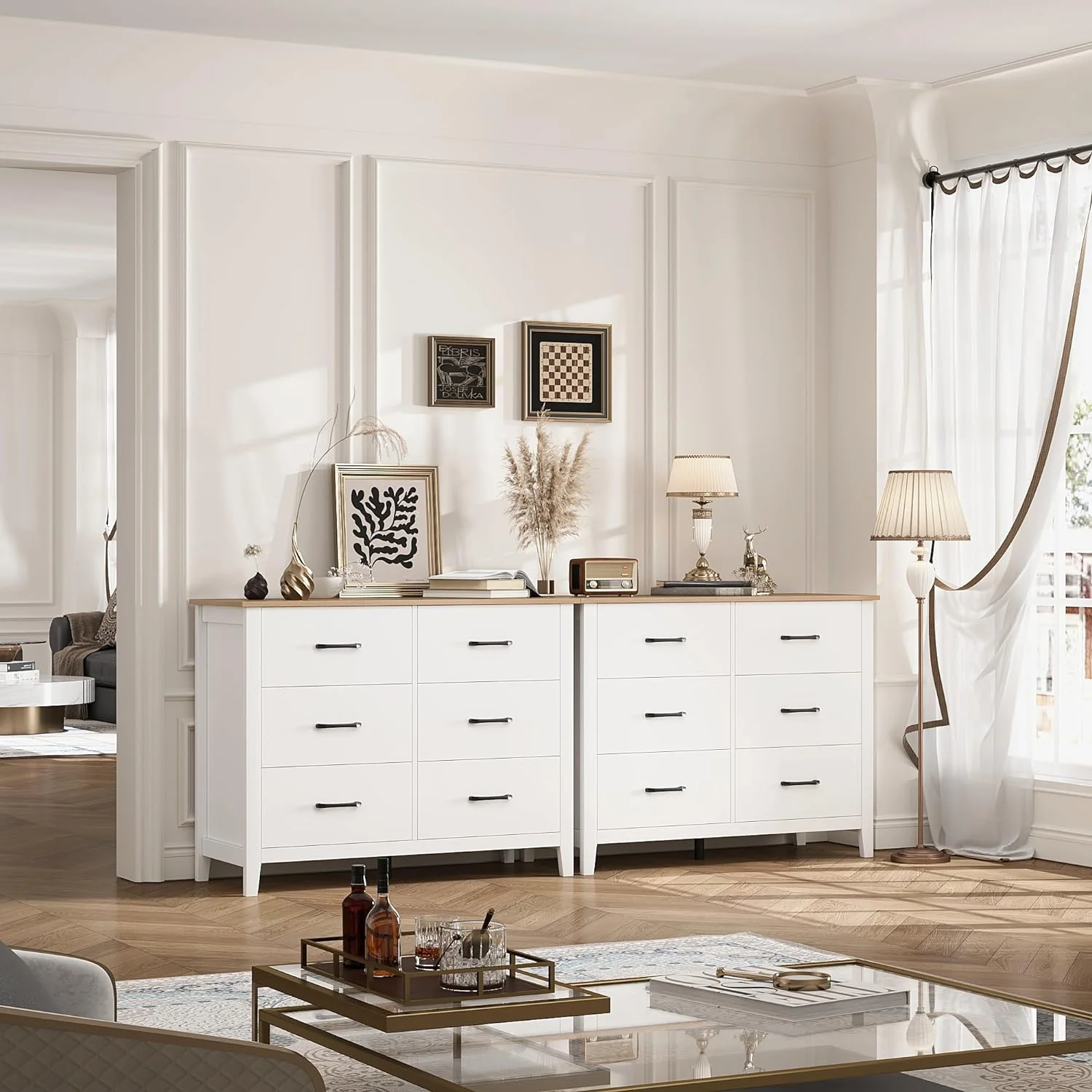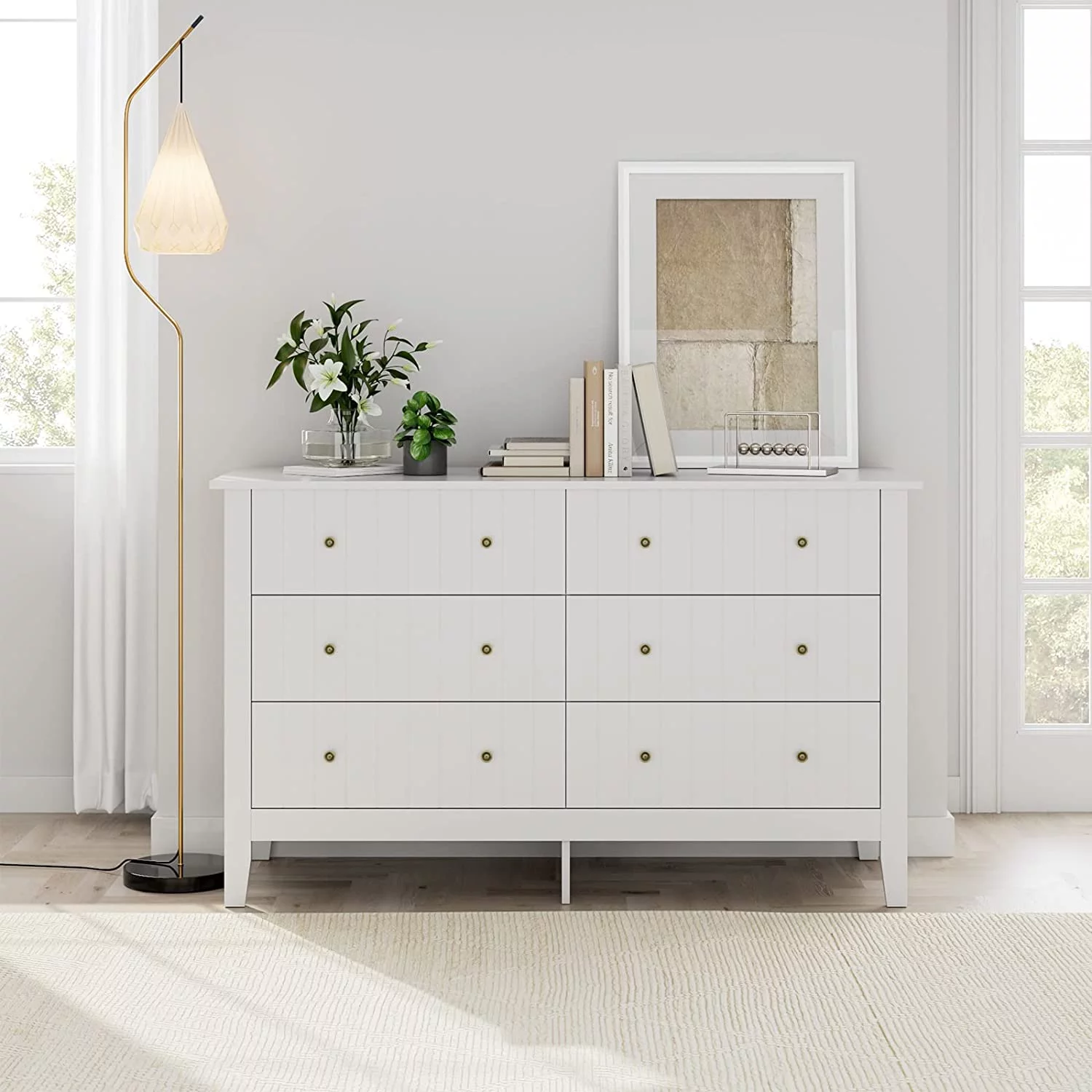 6-Drawer Dresser for Bedroom, with Deep Drawers and Metal Handles, Wood Dressers with Firm Legs, for Living Room, White