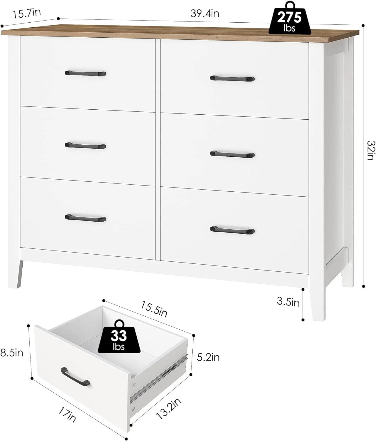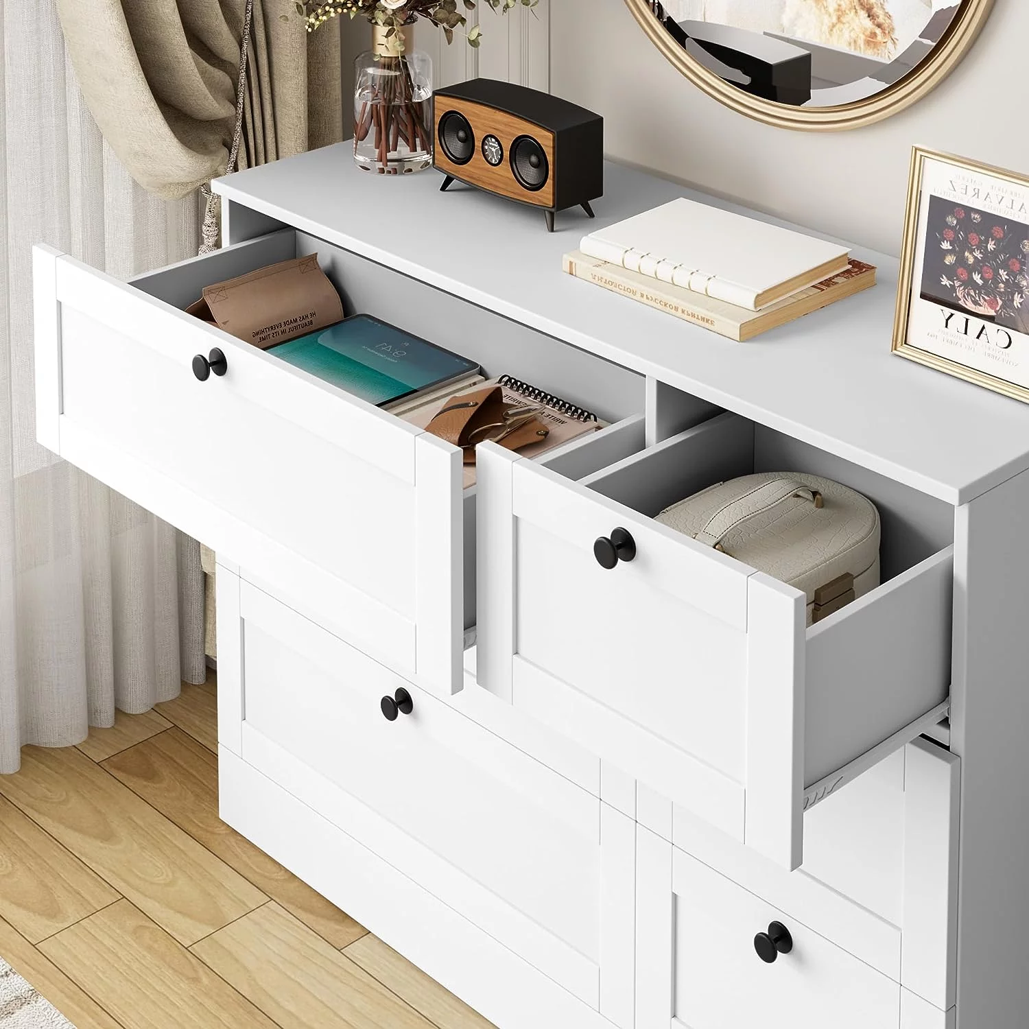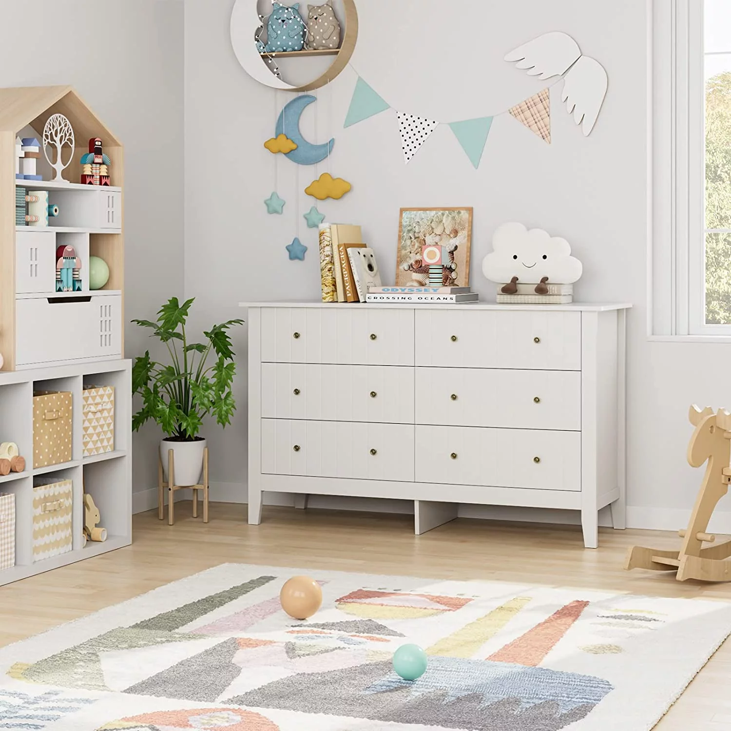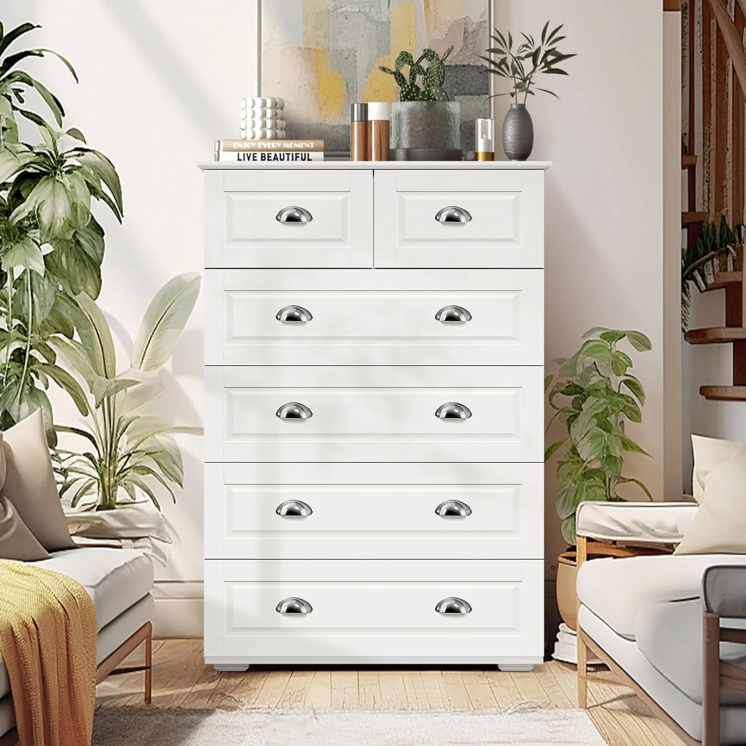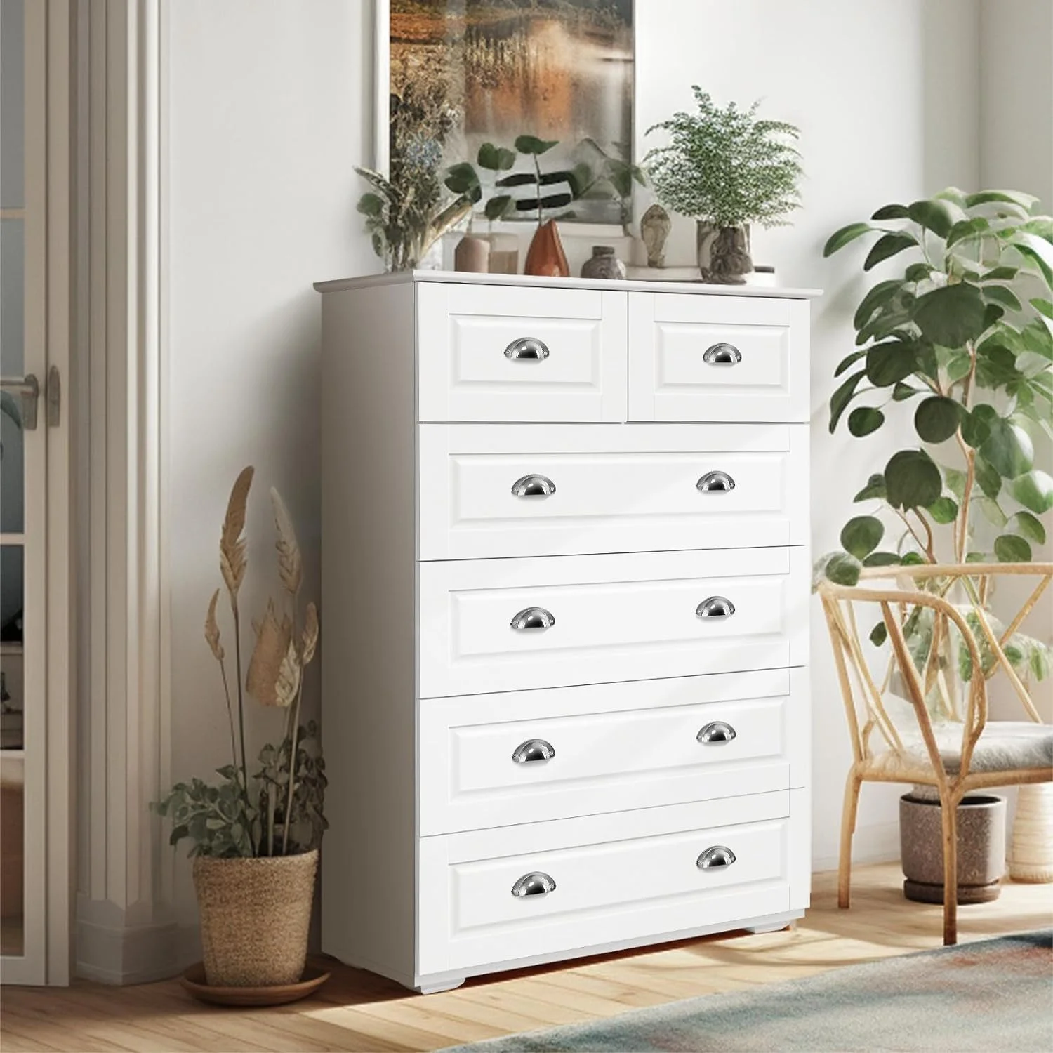 6-Drawer Dresser for Bedroom, with Deep Drawers and Metal Handles, Wood Dressers with Firm Legs, for Living Room, White