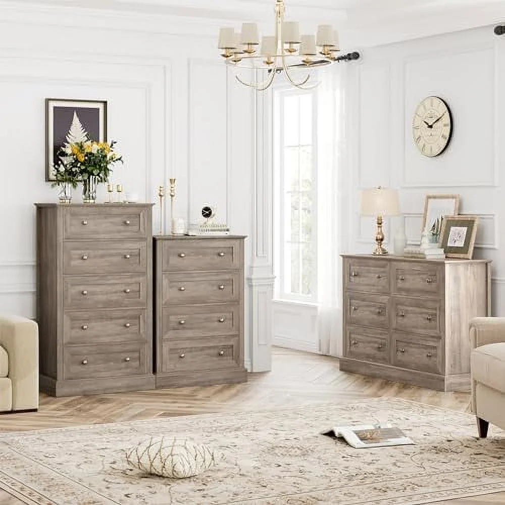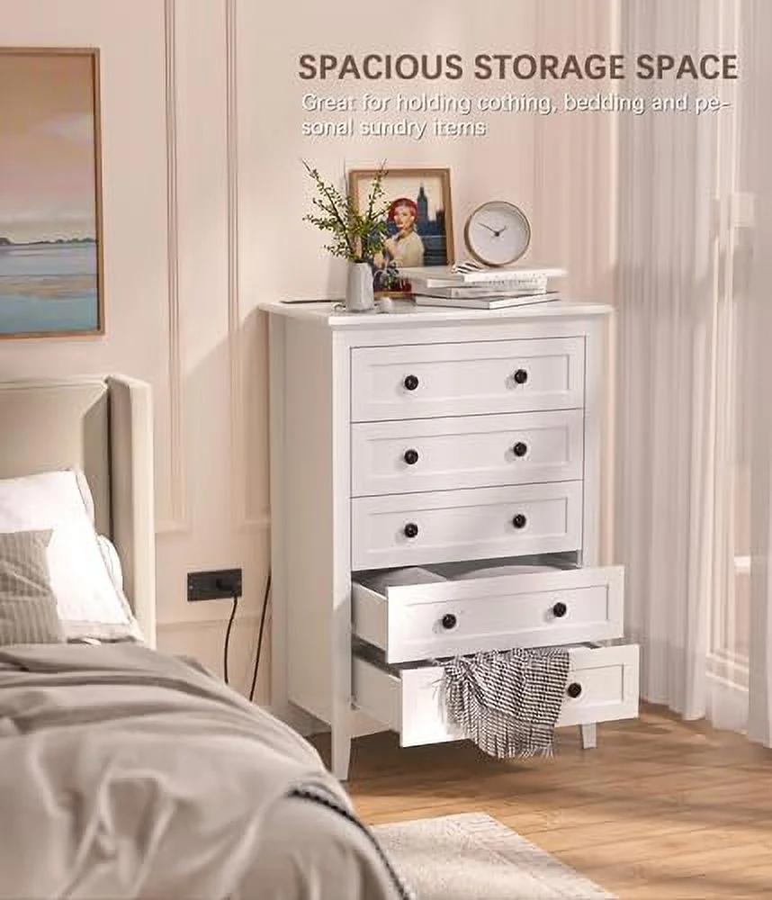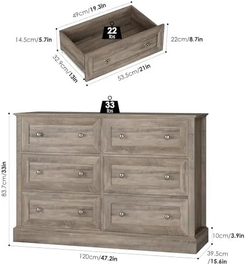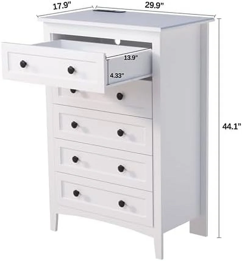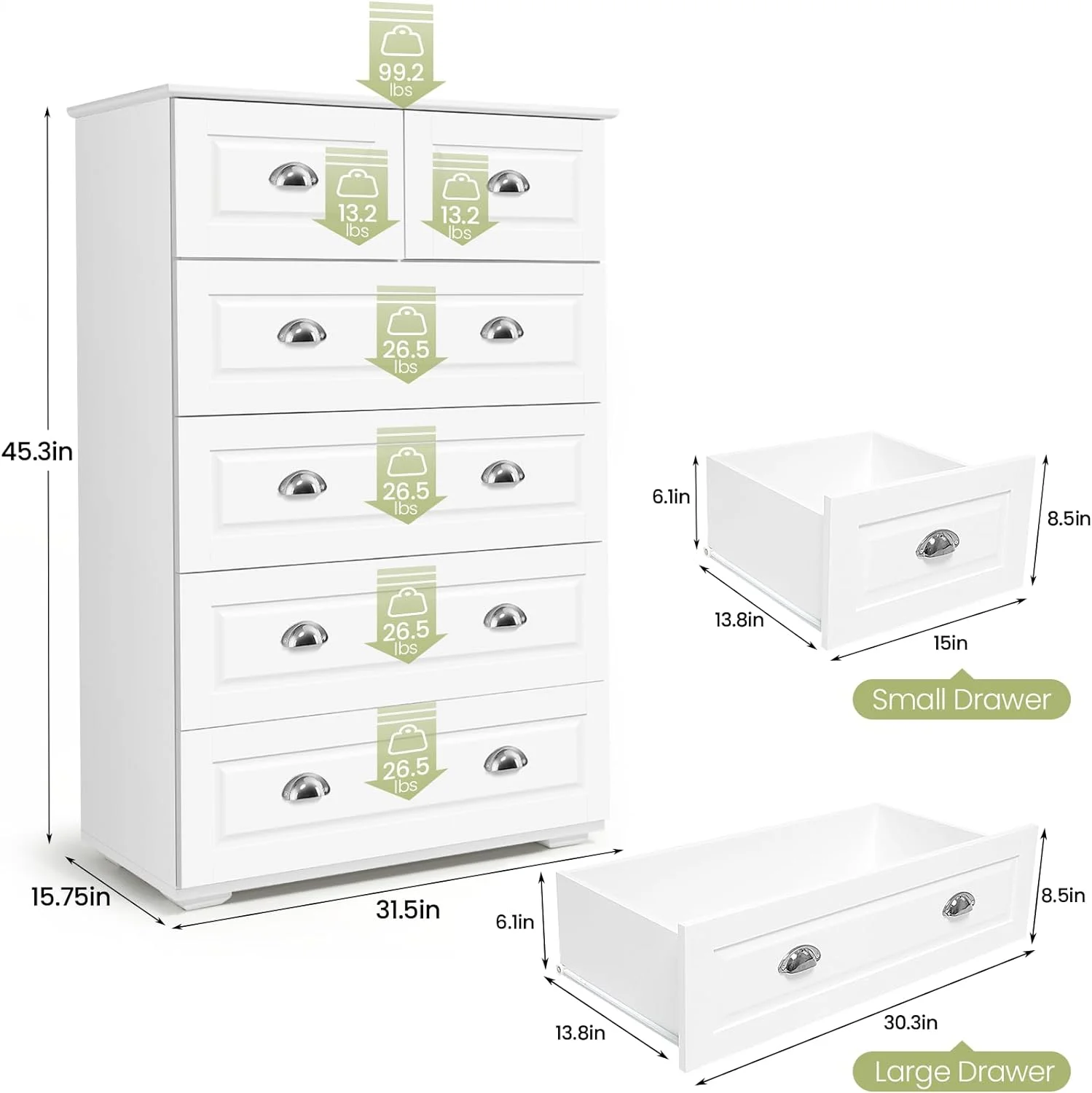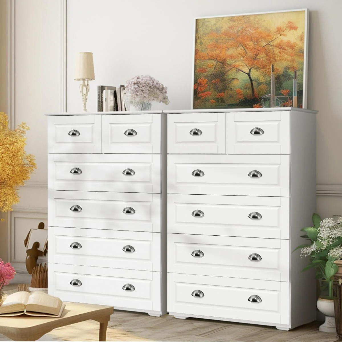 6-Drawer Dresser for Bedroom, with Deep Drawers and Metal Handles, Wood Dressers with Firm Legs, for Living Room, White
