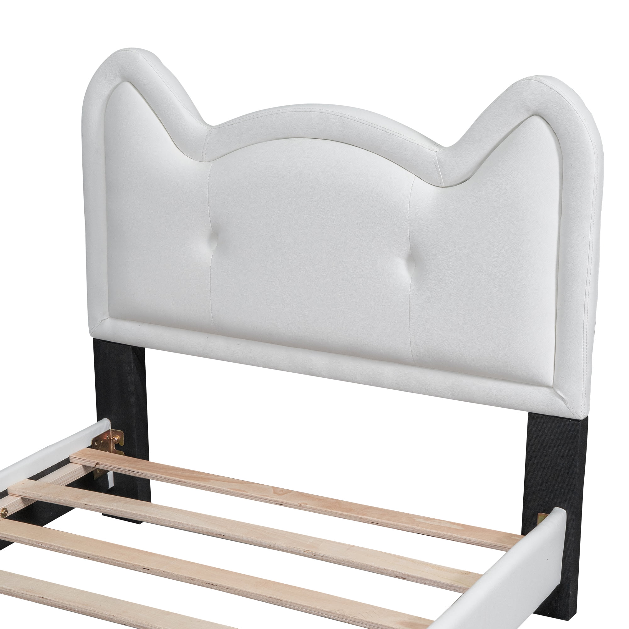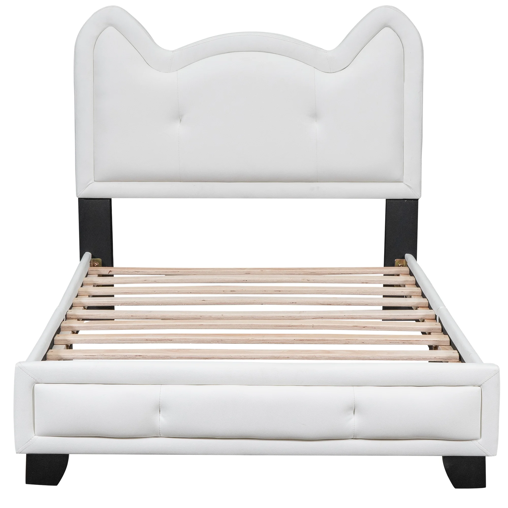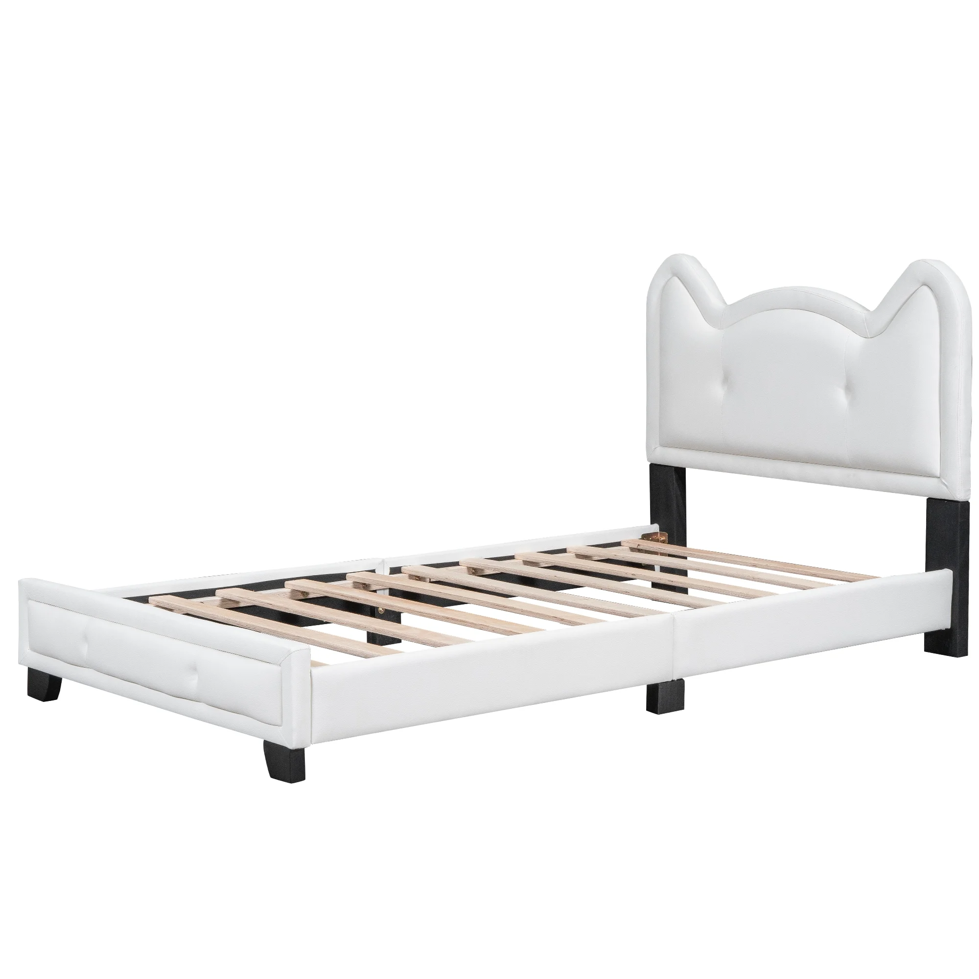 Upholstered Twin Bed Frame with Playful Carton Ears Shaped Headboard - Modern Platform Bed for Comfort and Style-White