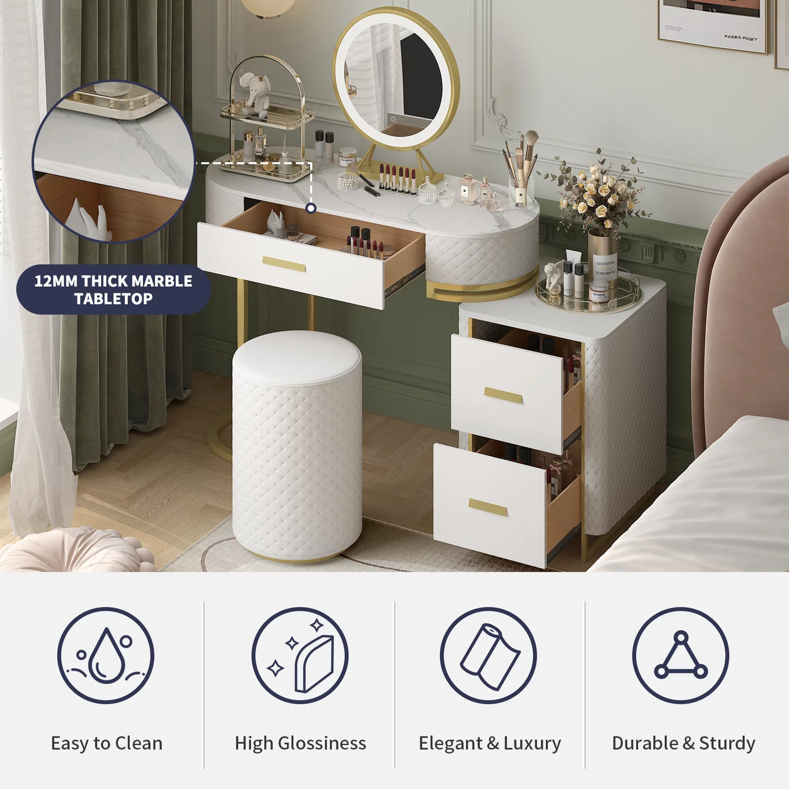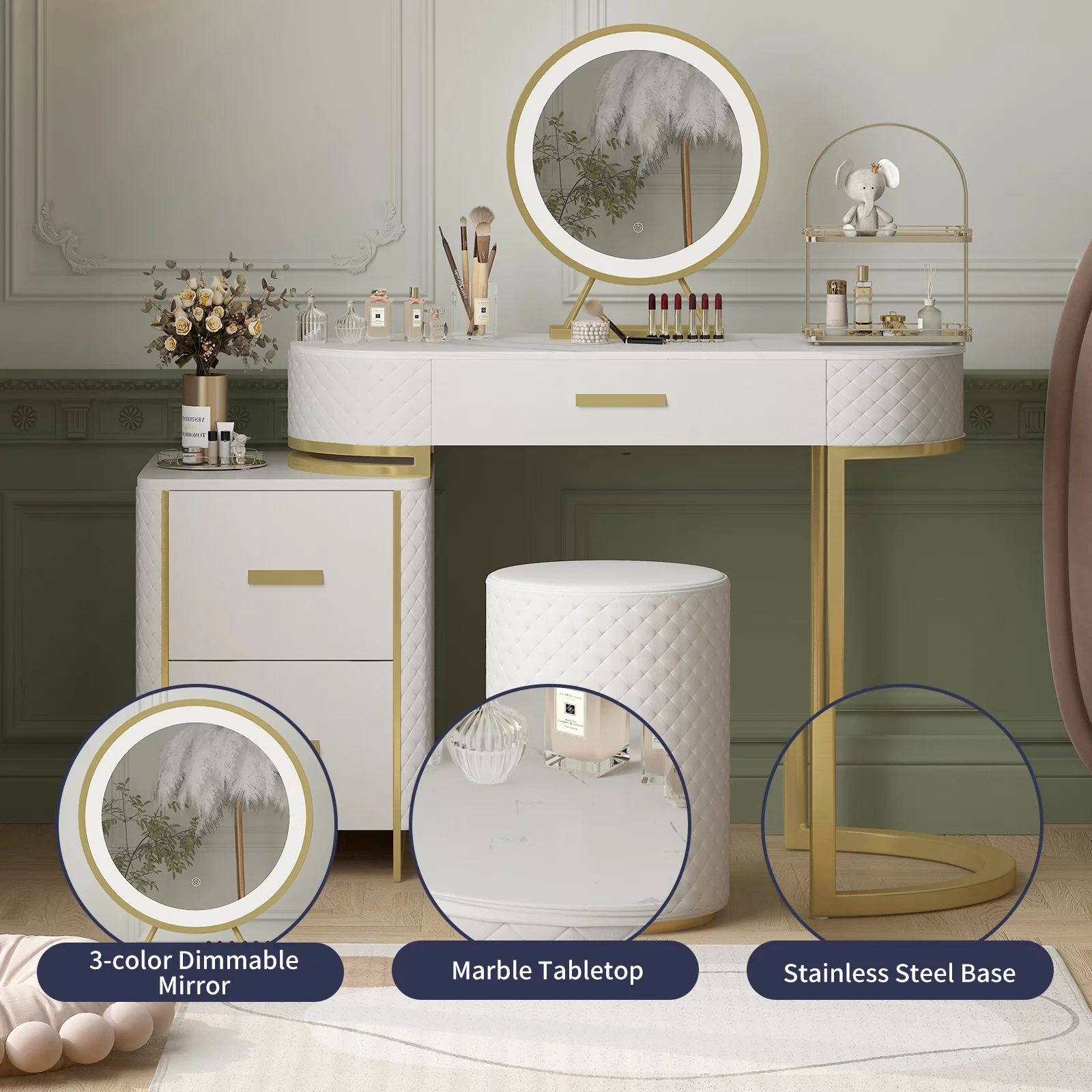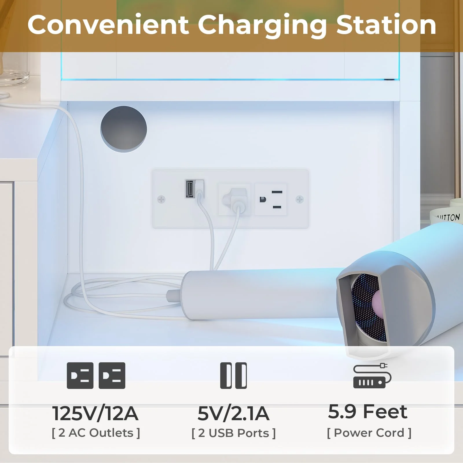Makeup Vanity Desk with Lights and Charging Station, Dresser Table with Dresser and Ambient Light, White