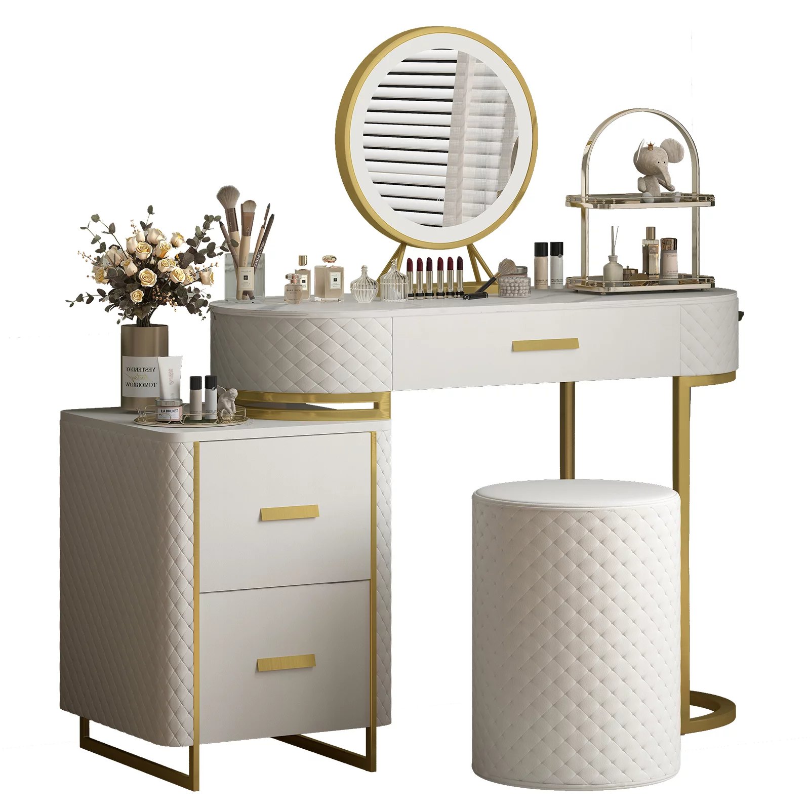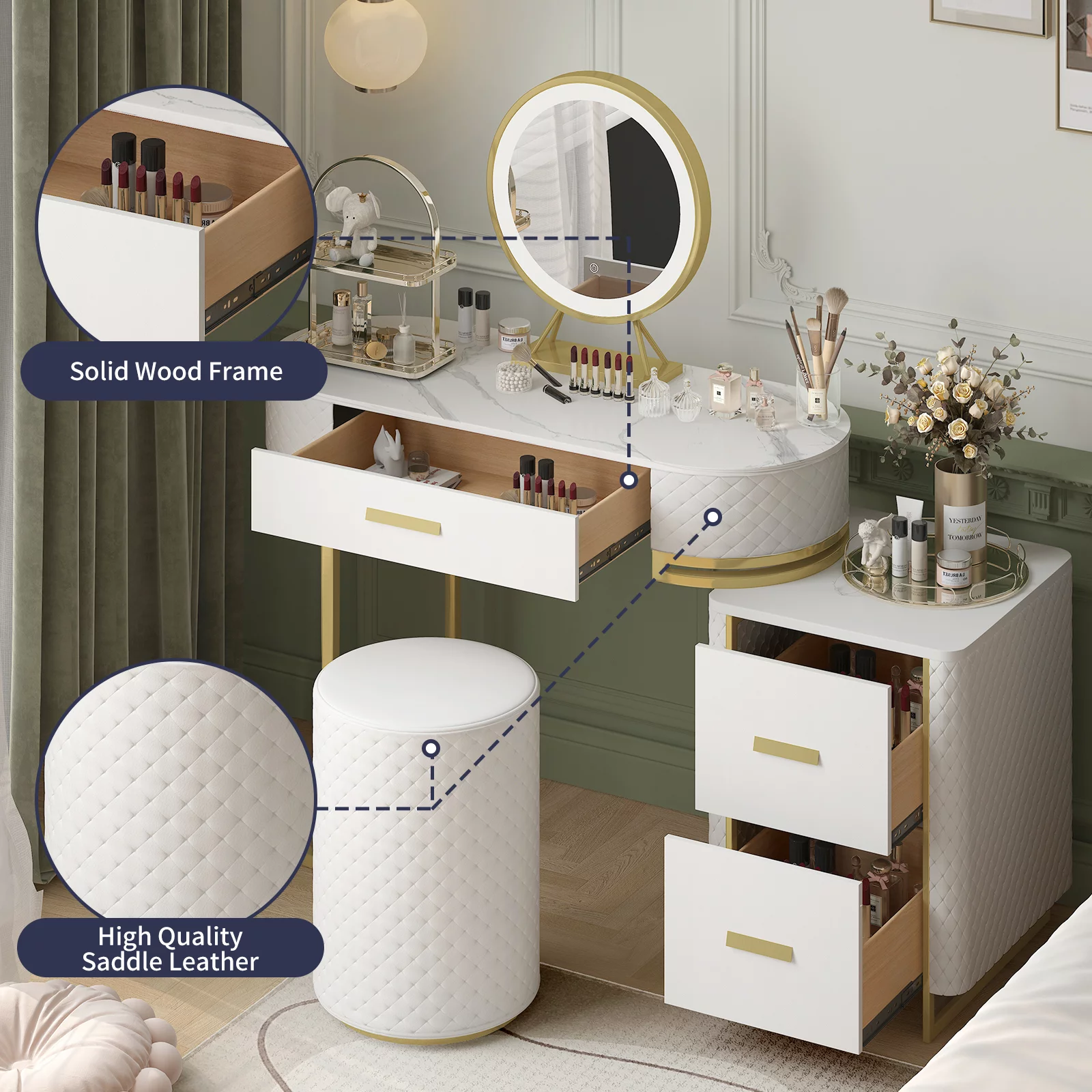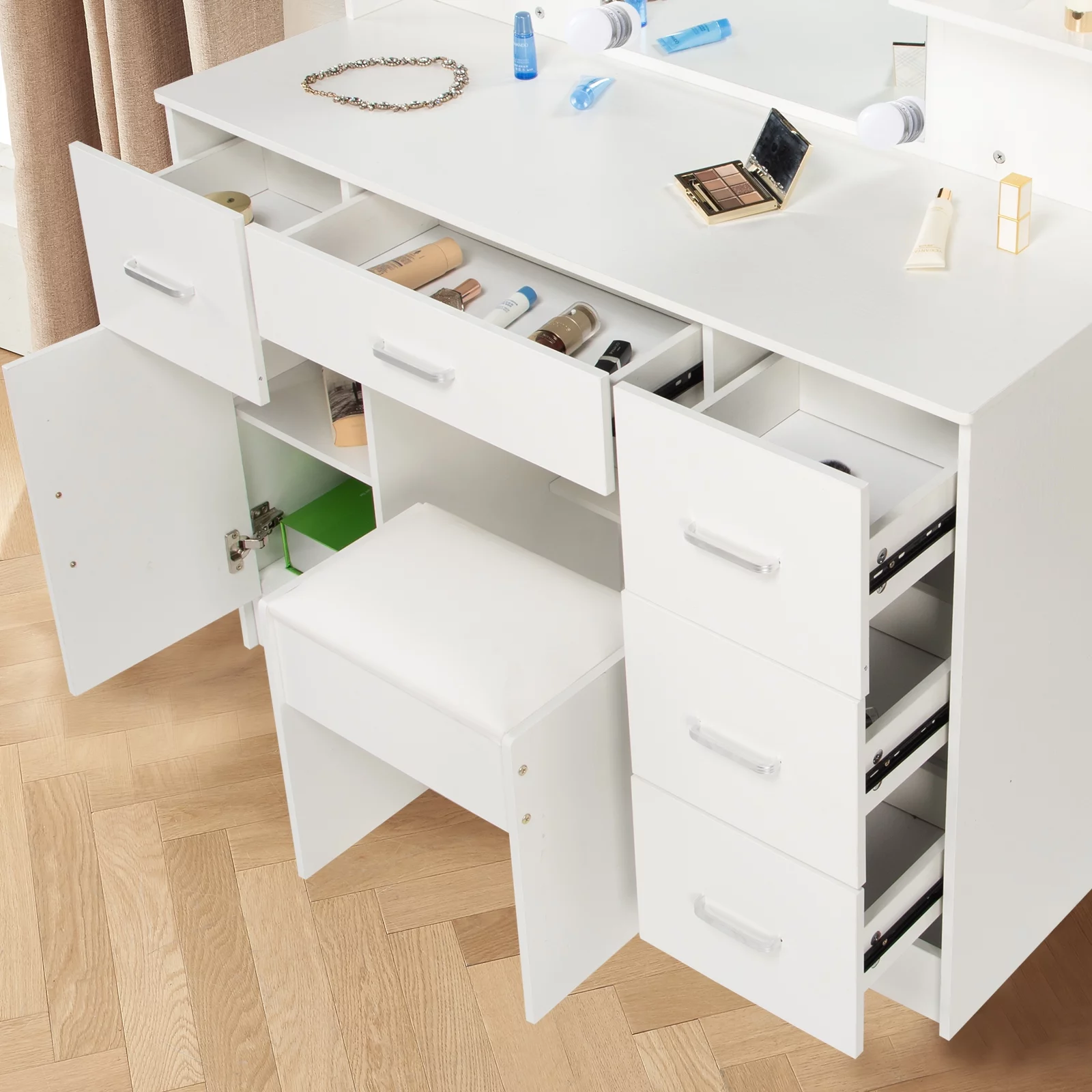 Makeup Vanity Desk with Lights and Charging Station, Dresser Table with Dresser and Ambient Light, White