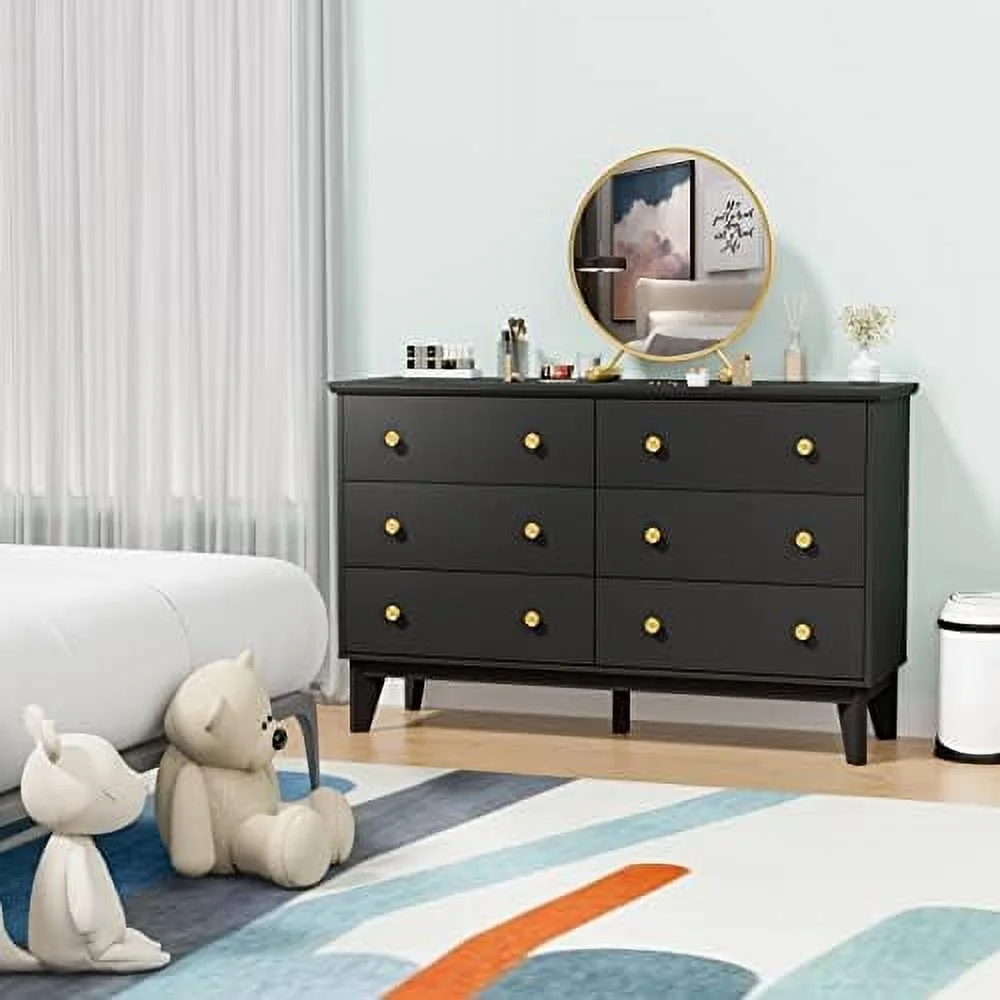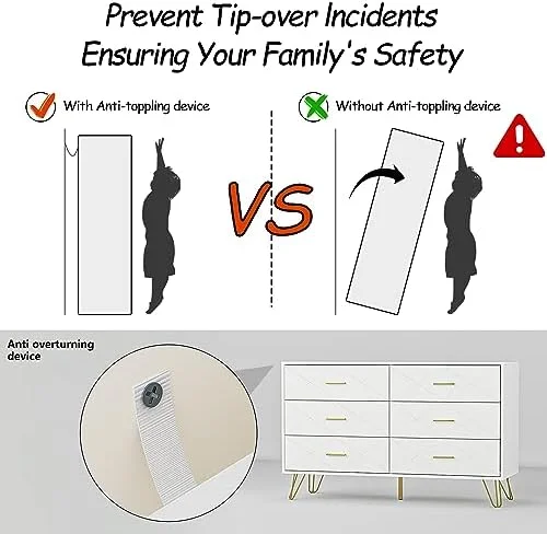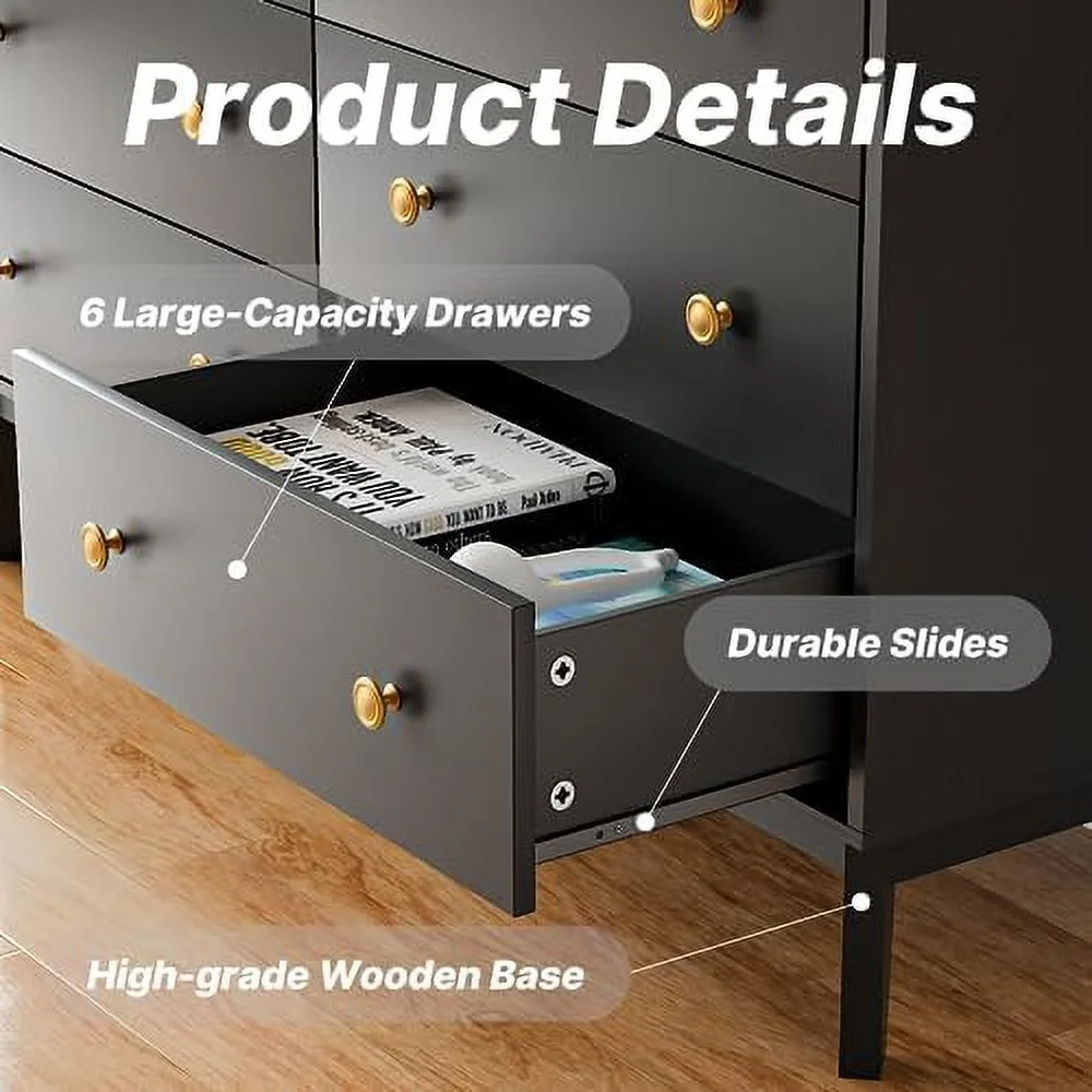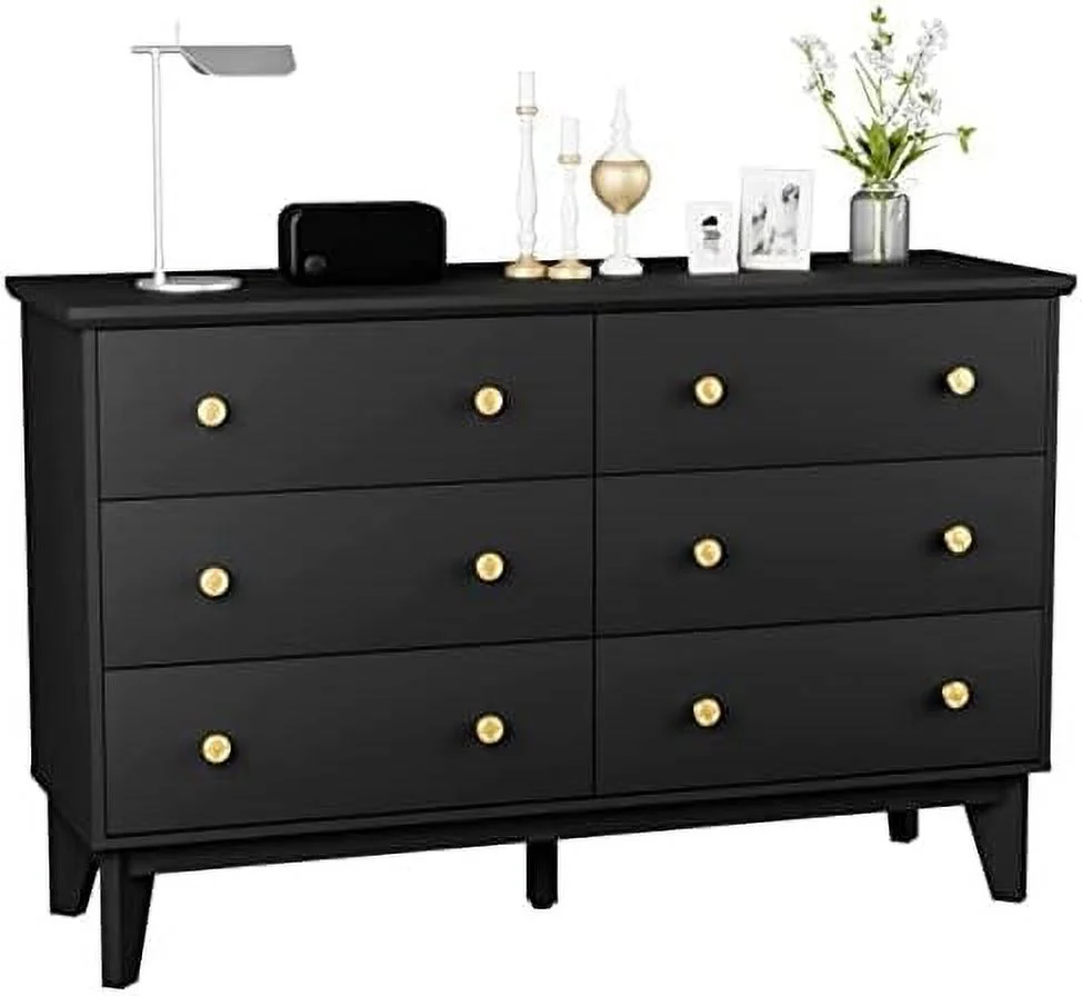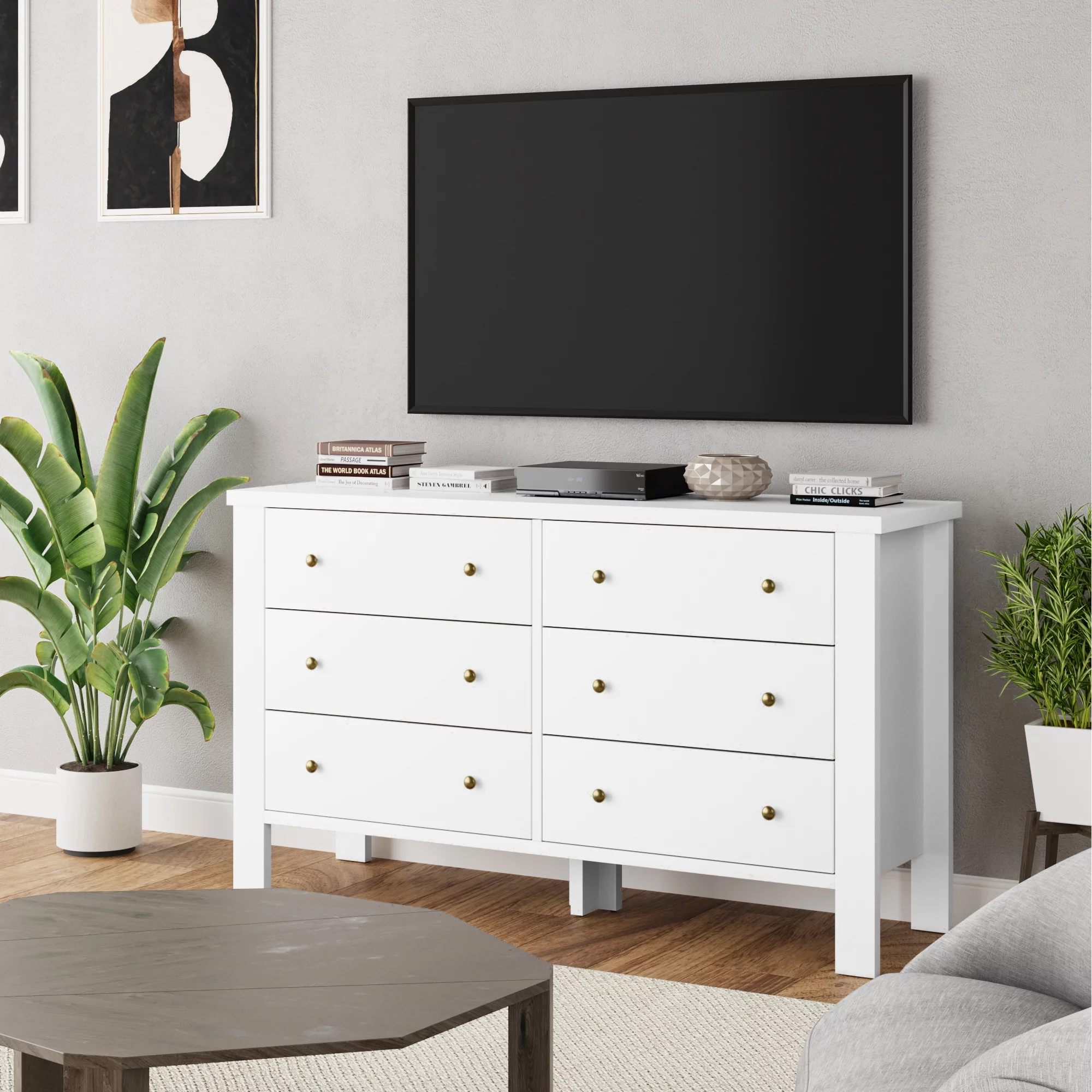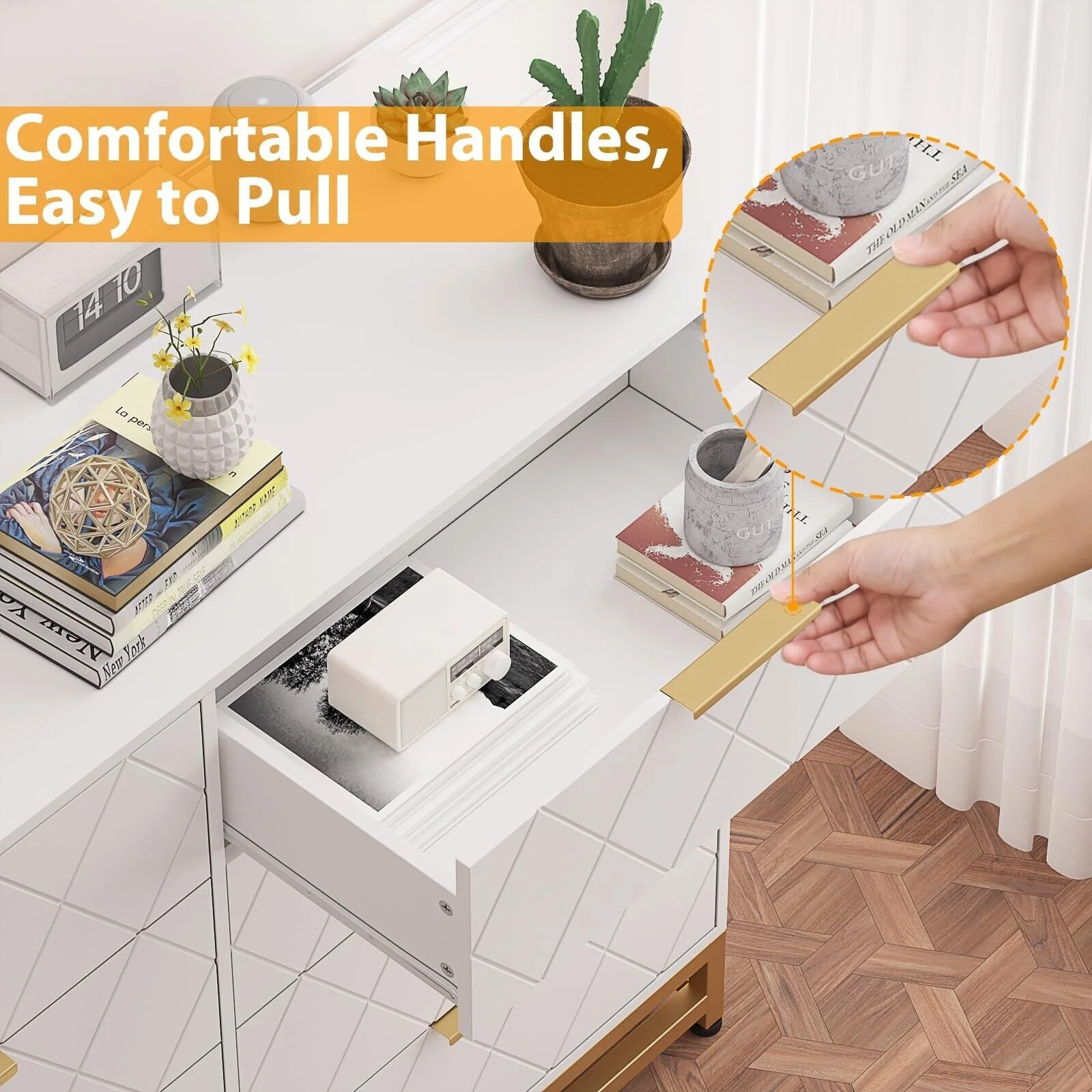 KHBIULIFE White Dresser for Bedroom Dresser with 6 Deep Drawers Wide Chest of Drawers with Gold Handles for Living Room