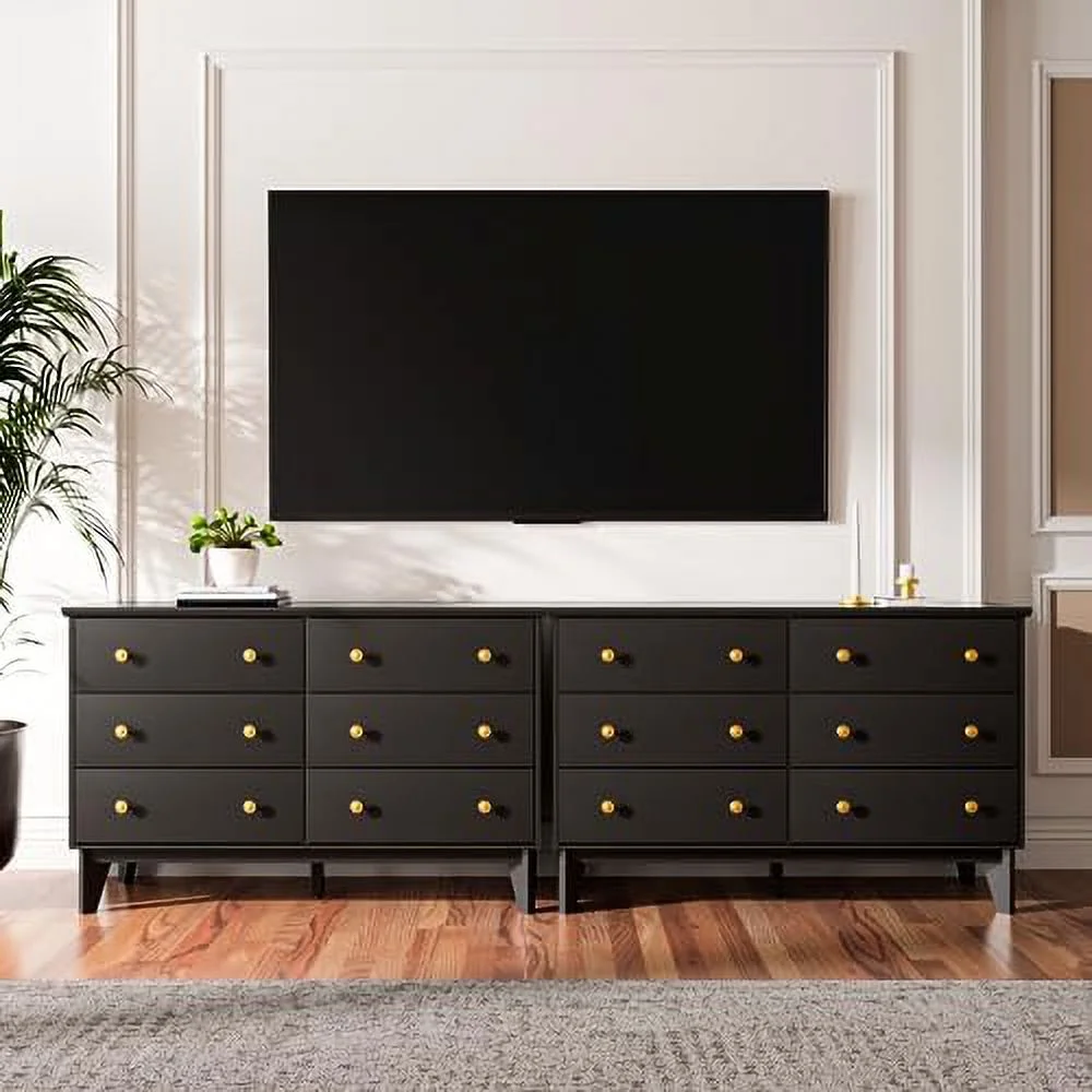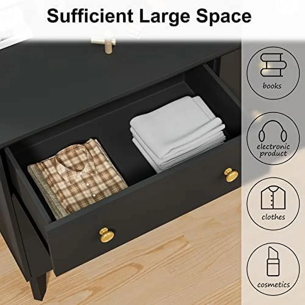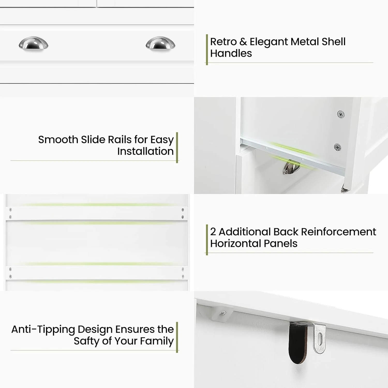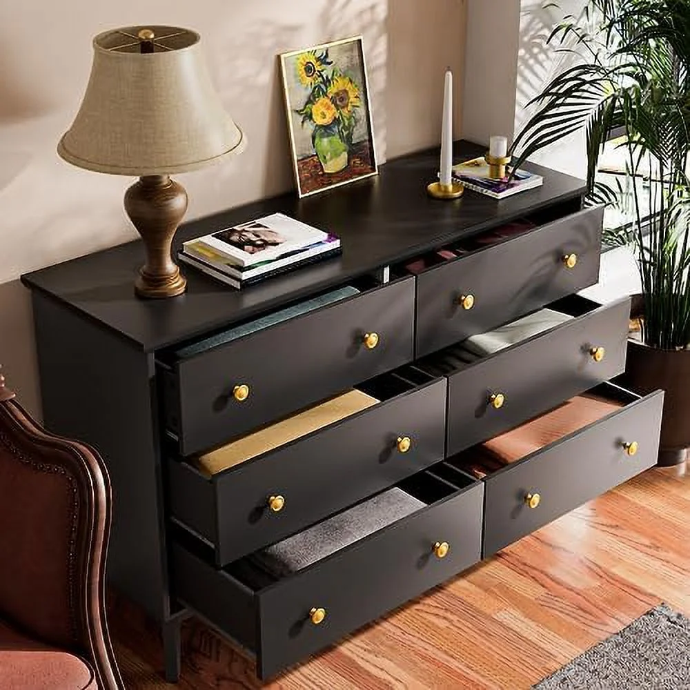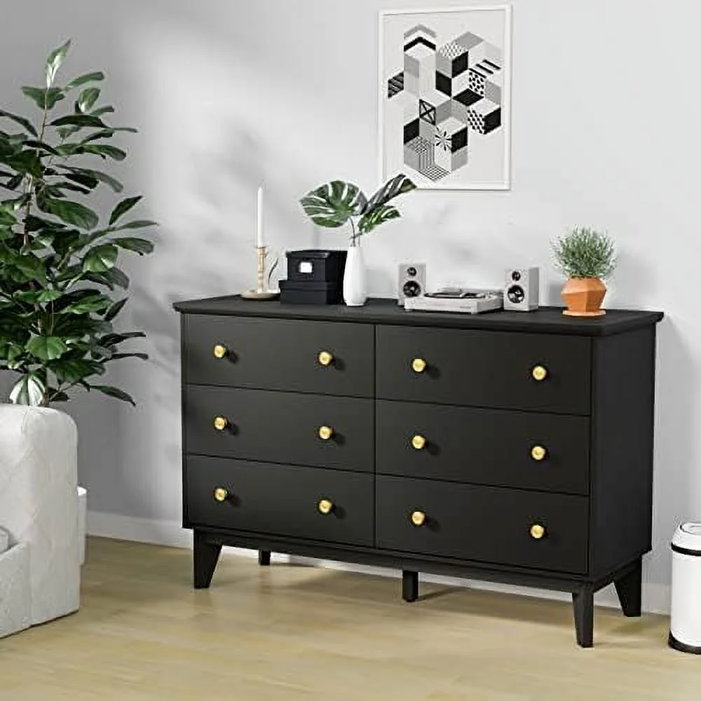 KHBIULIFE White Dresser for Bedroom Dresser with 6 Deep Drawers Wide Chest of Drawers with Gold Handles for Living Room