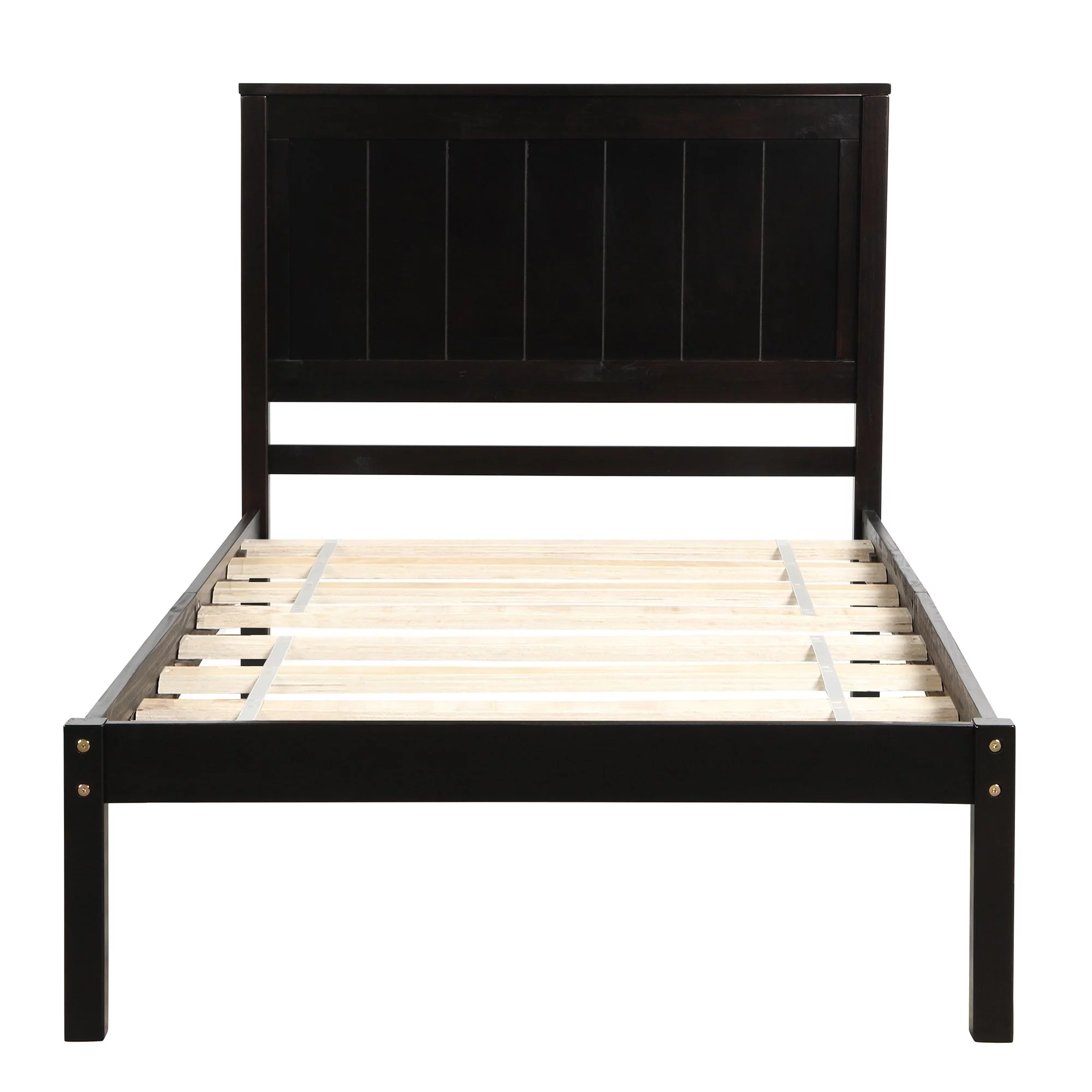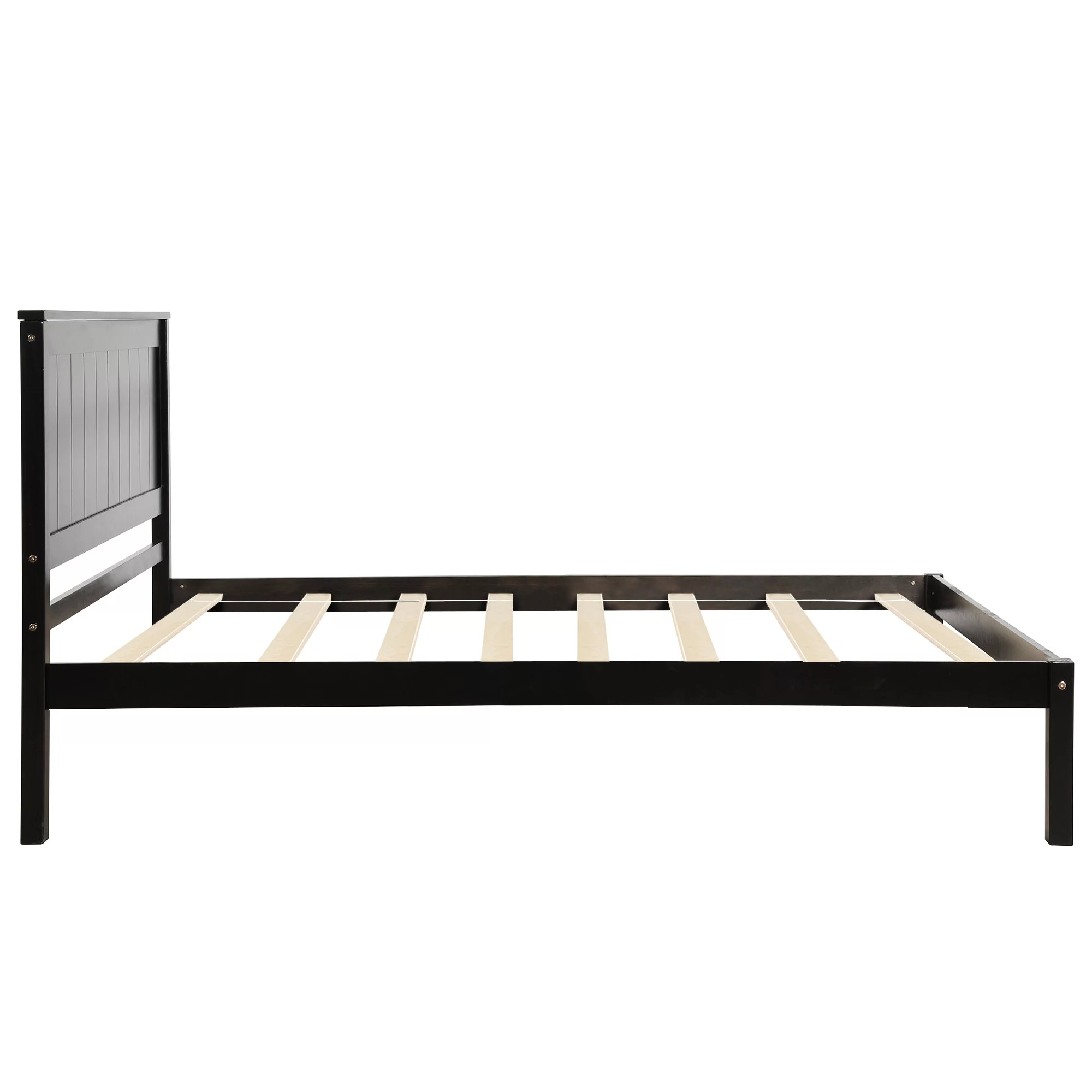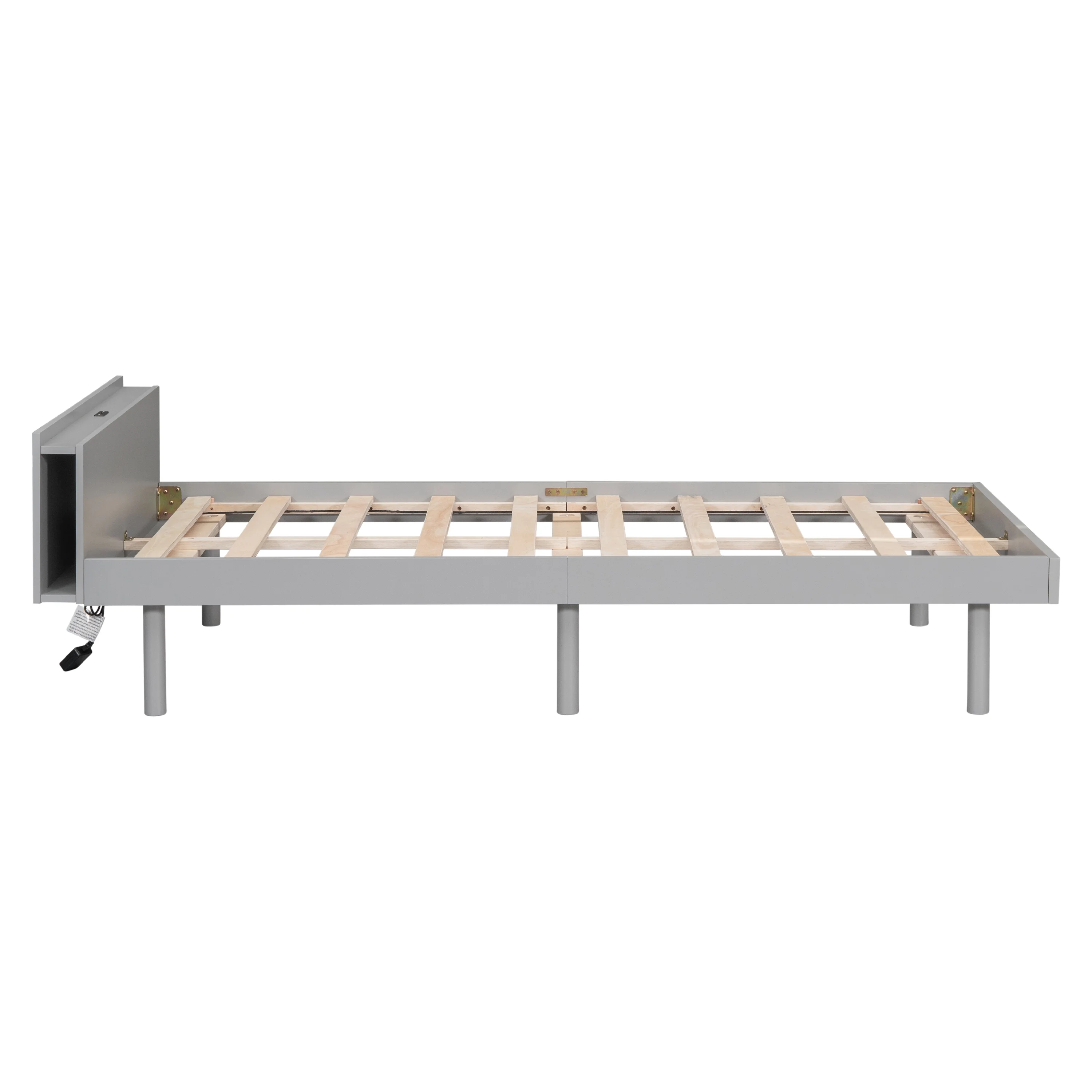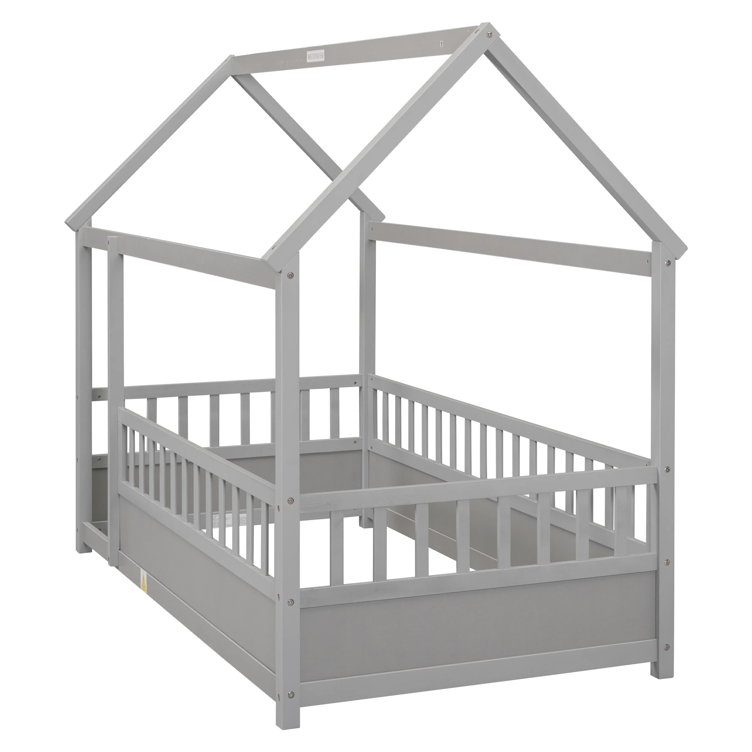 Twin Size Toddler Floor Bed with House Roof Frame and Fence Guardrails Kids Bed Frame-Gray