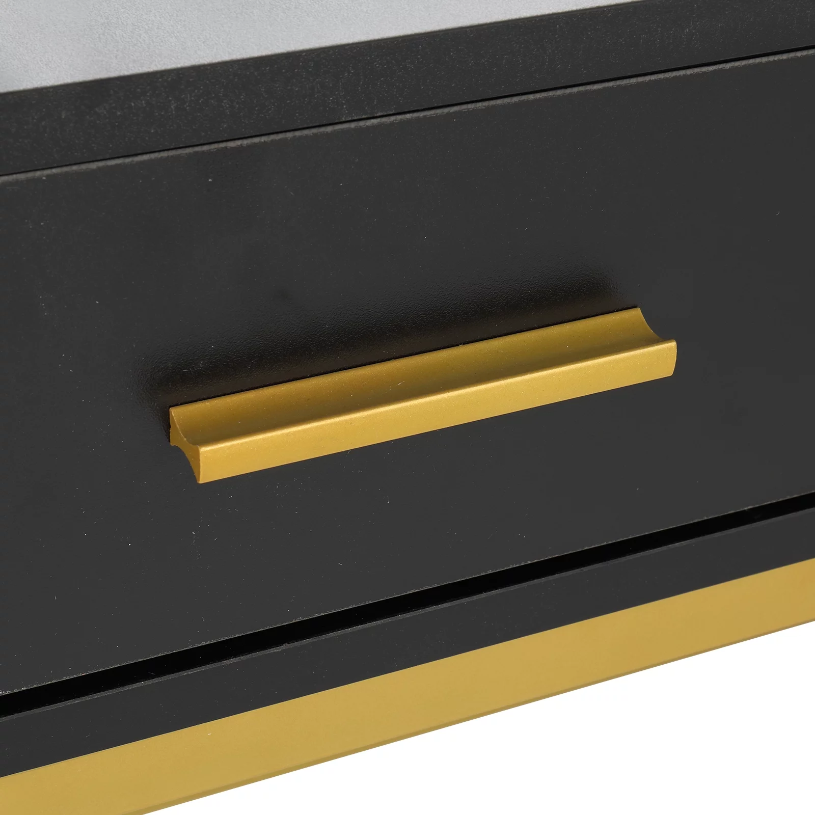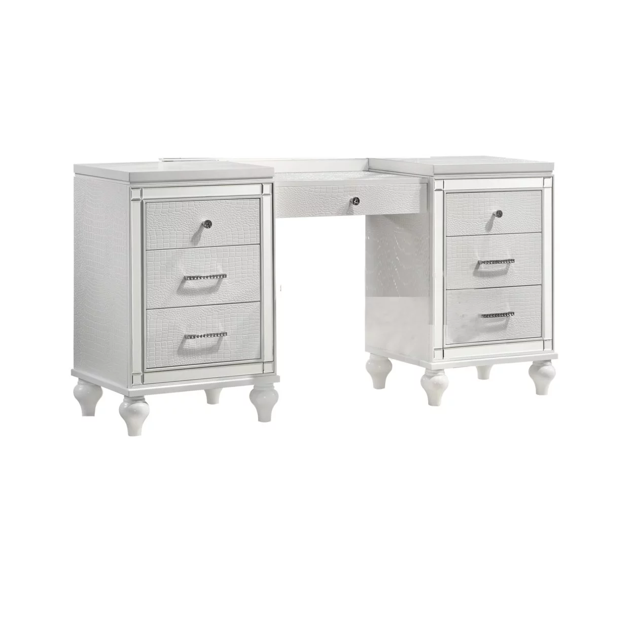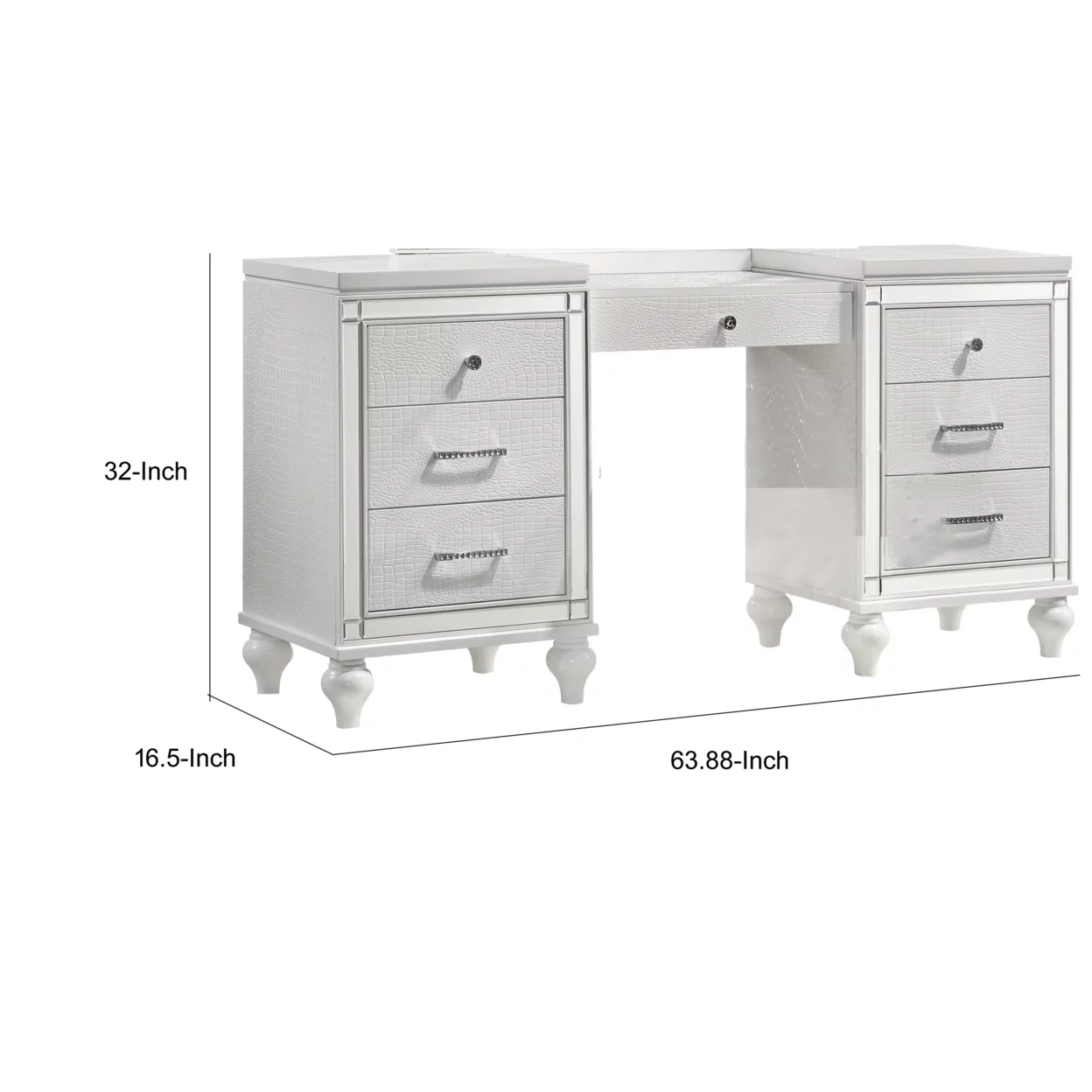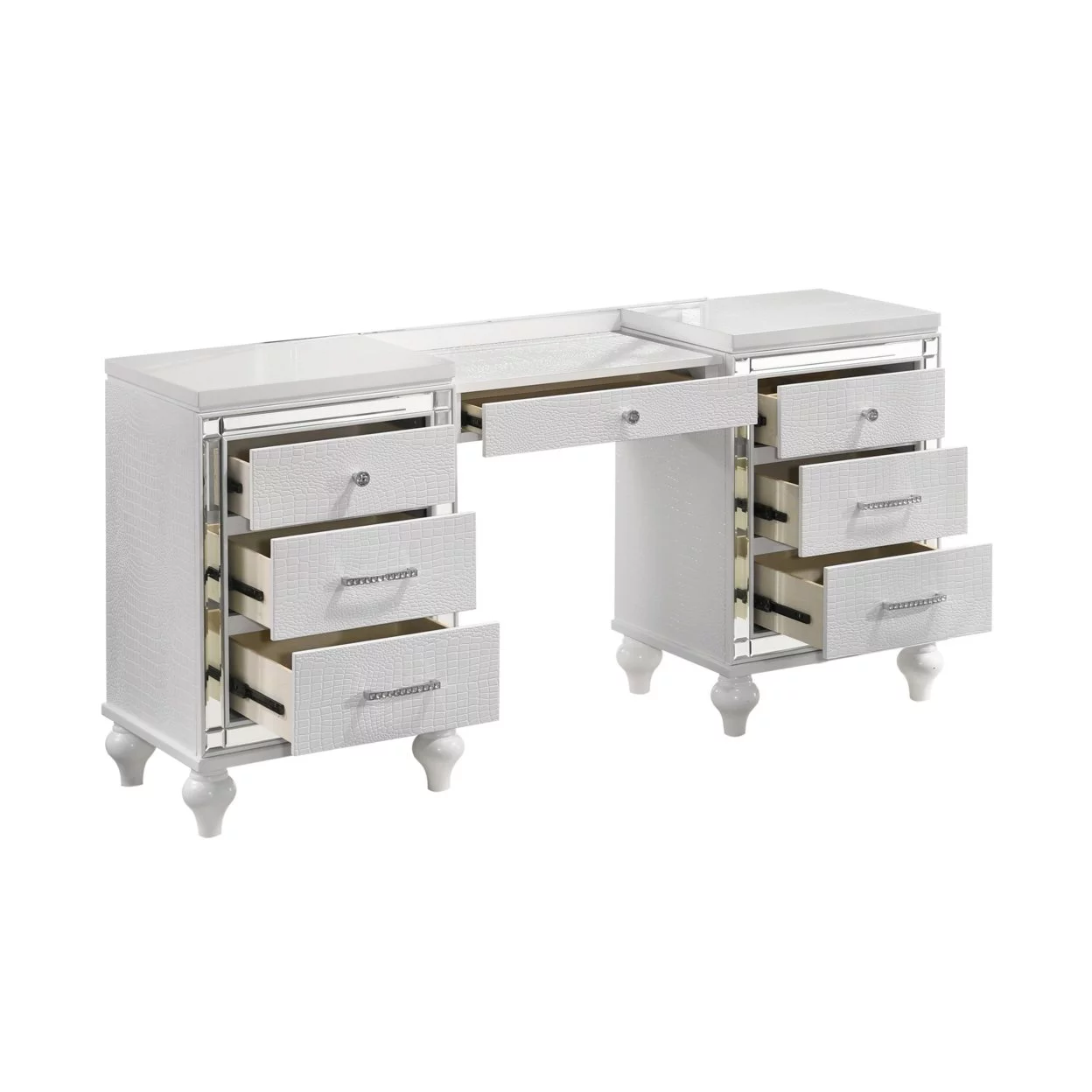 Kya 64 Inch Vanity Dresser Table with 7 Drawers Mirrored Trim Glam White- Saltoro Sherpi