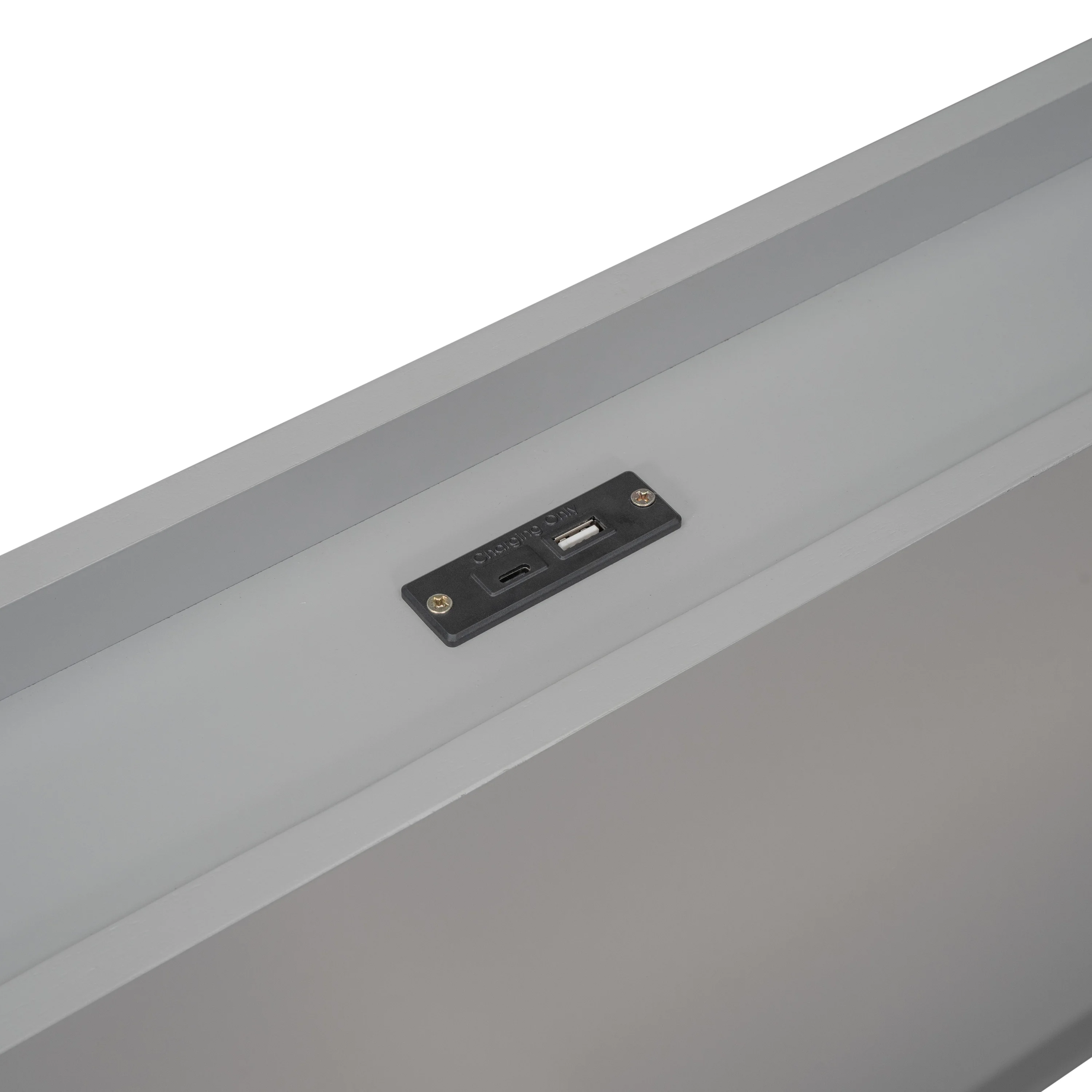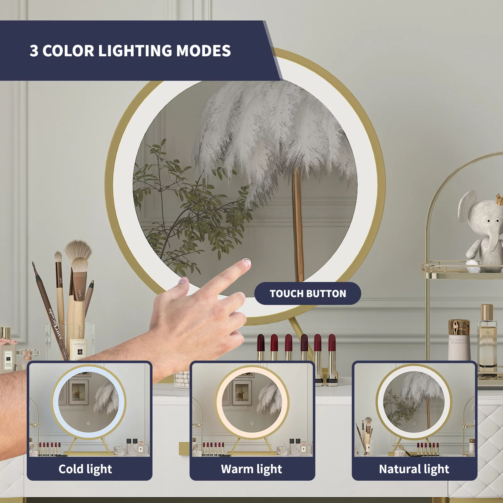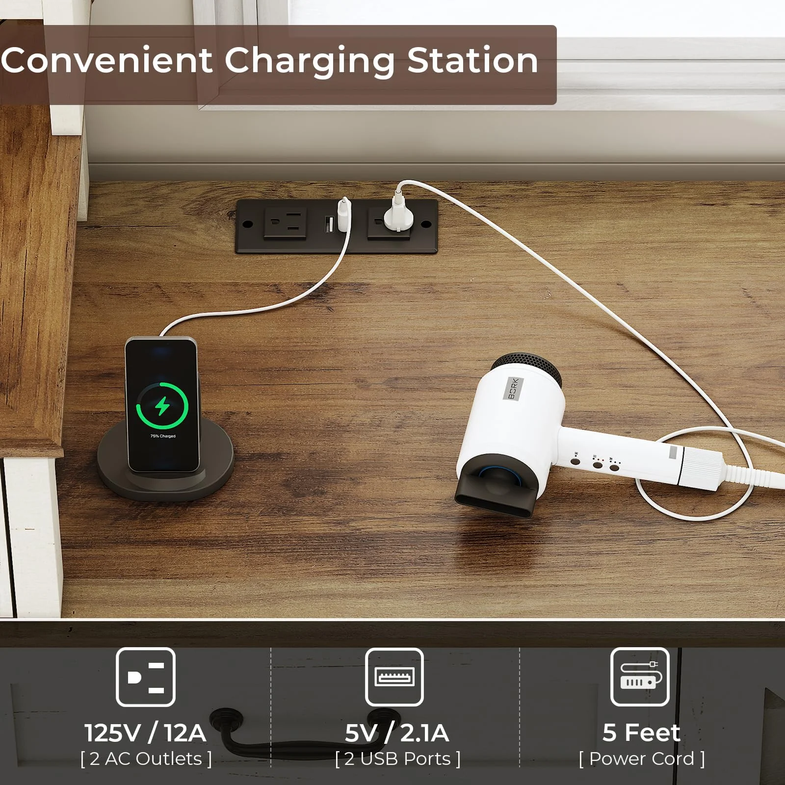 Farmhouse Vanity Desk with Lighted Mirror and Charging Station, Vanity and Dresser 2 in 1, White